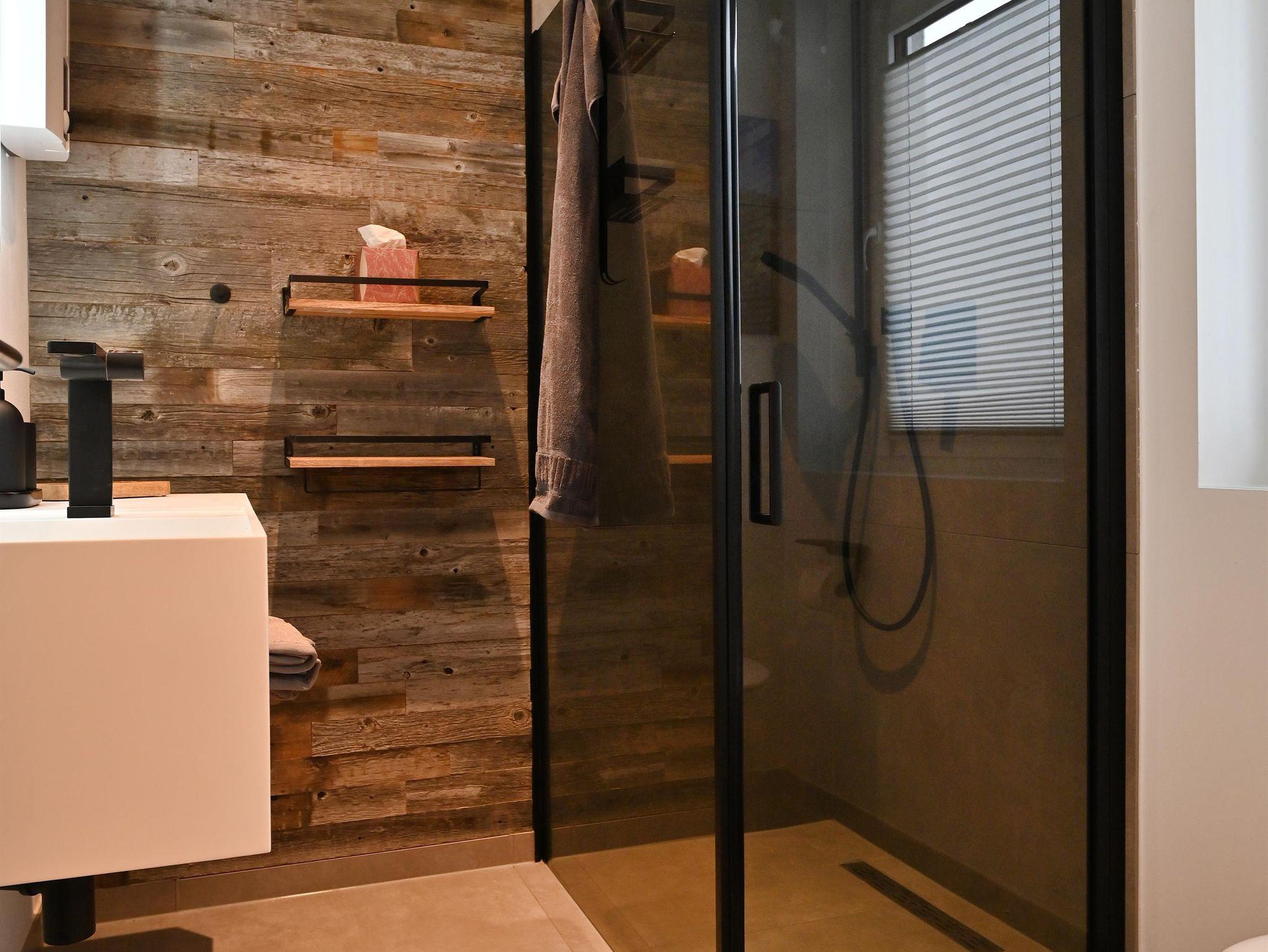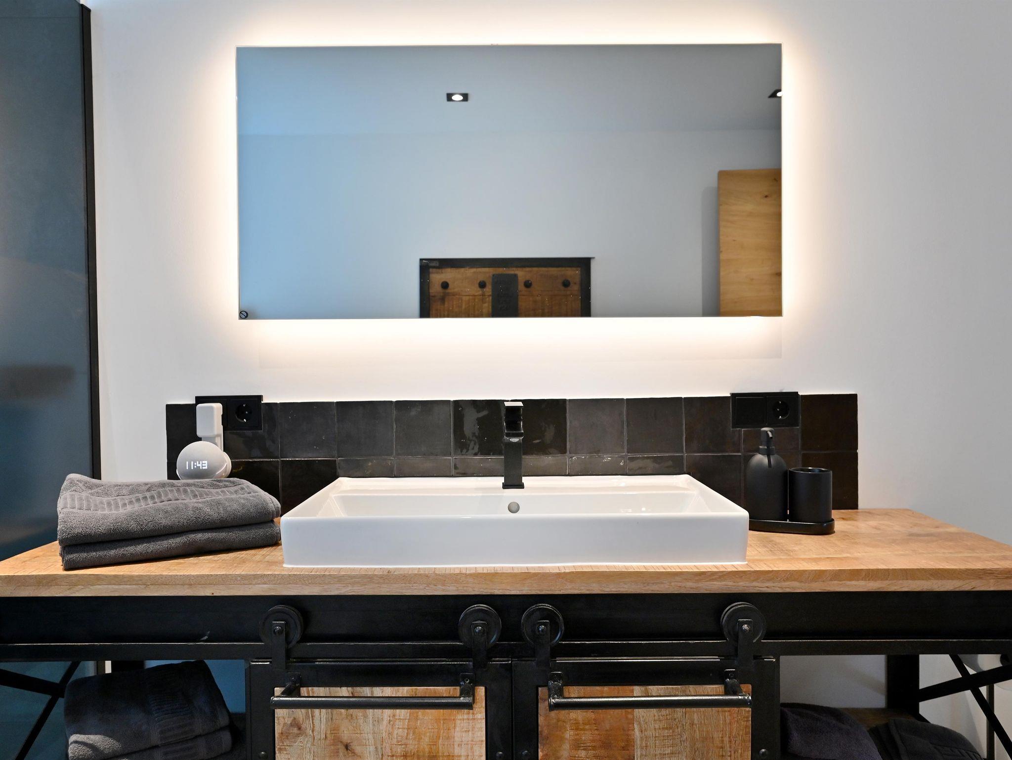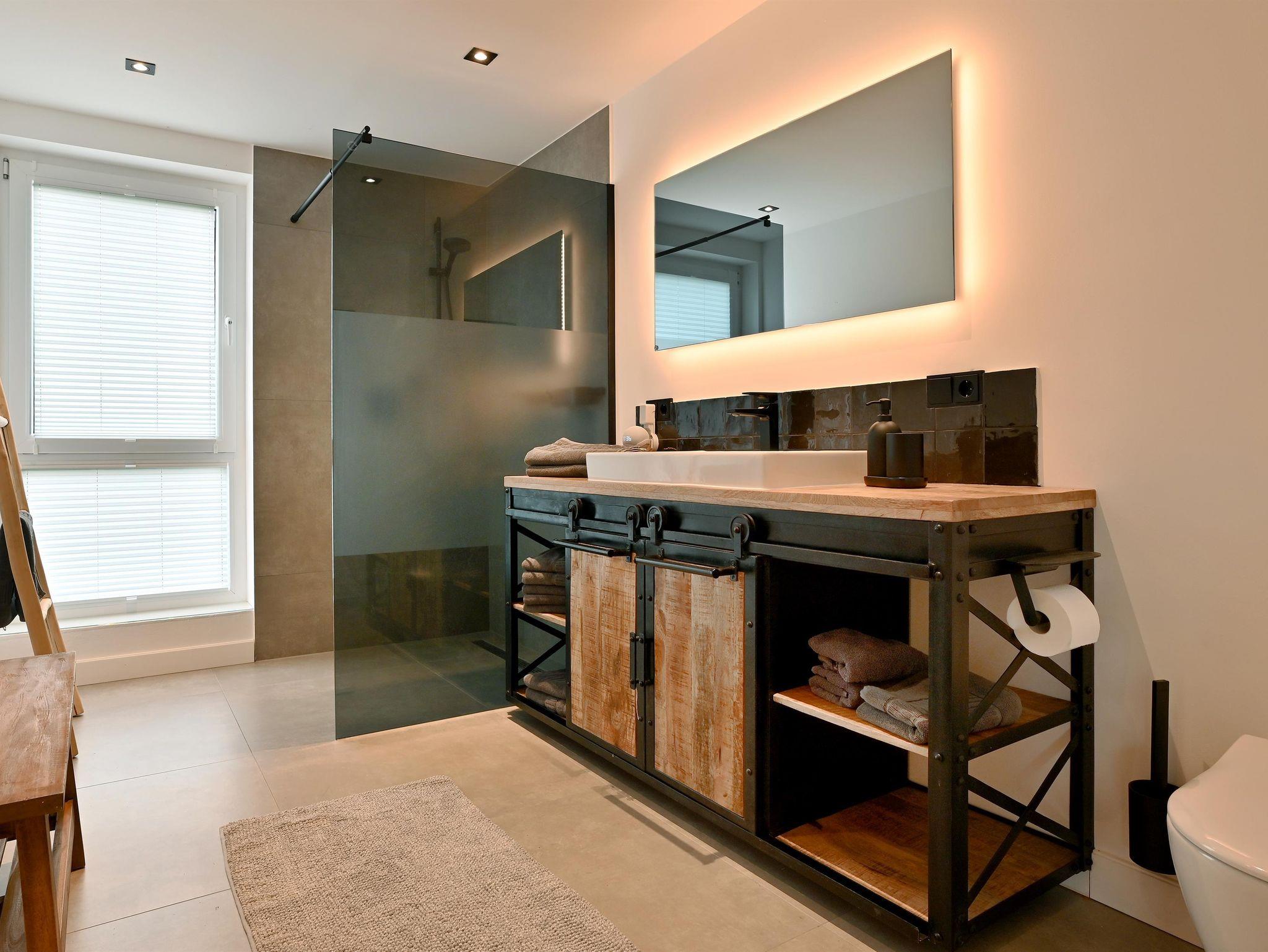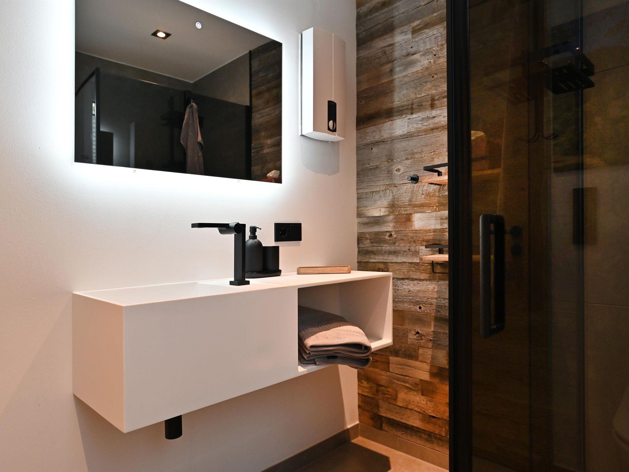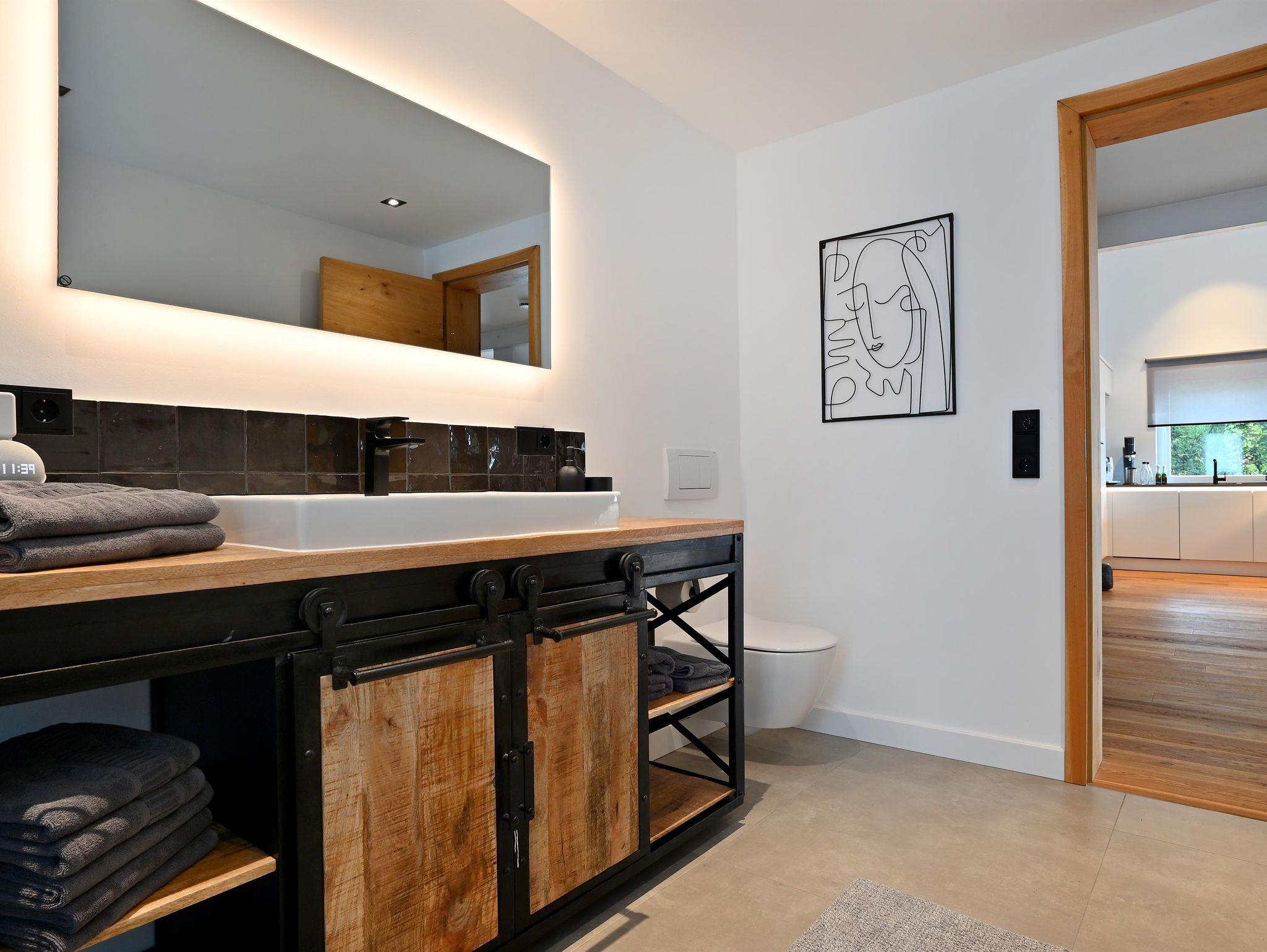 Zwei Bäder mit ebenerdiger Dusche und Infarot Spiegel