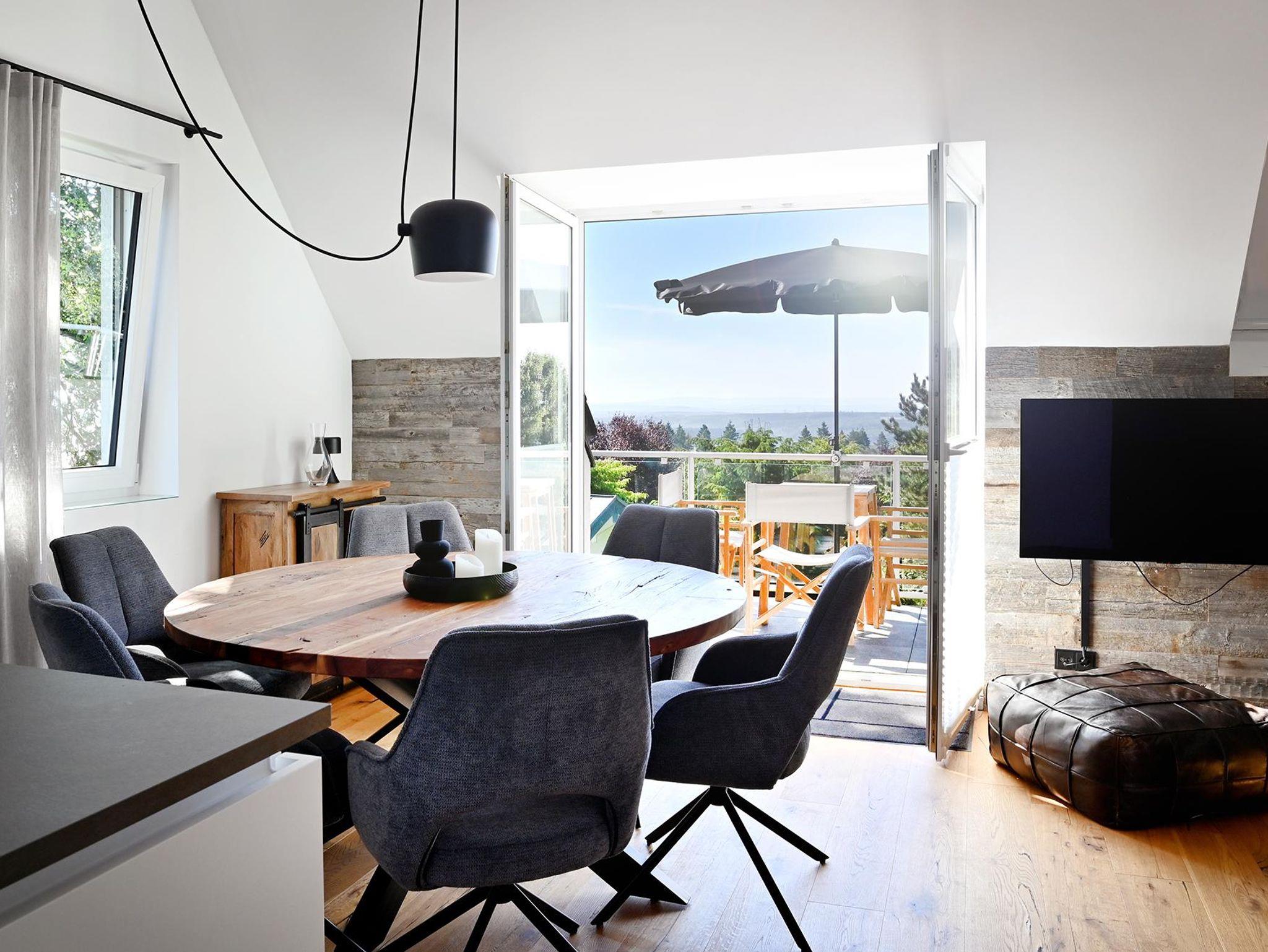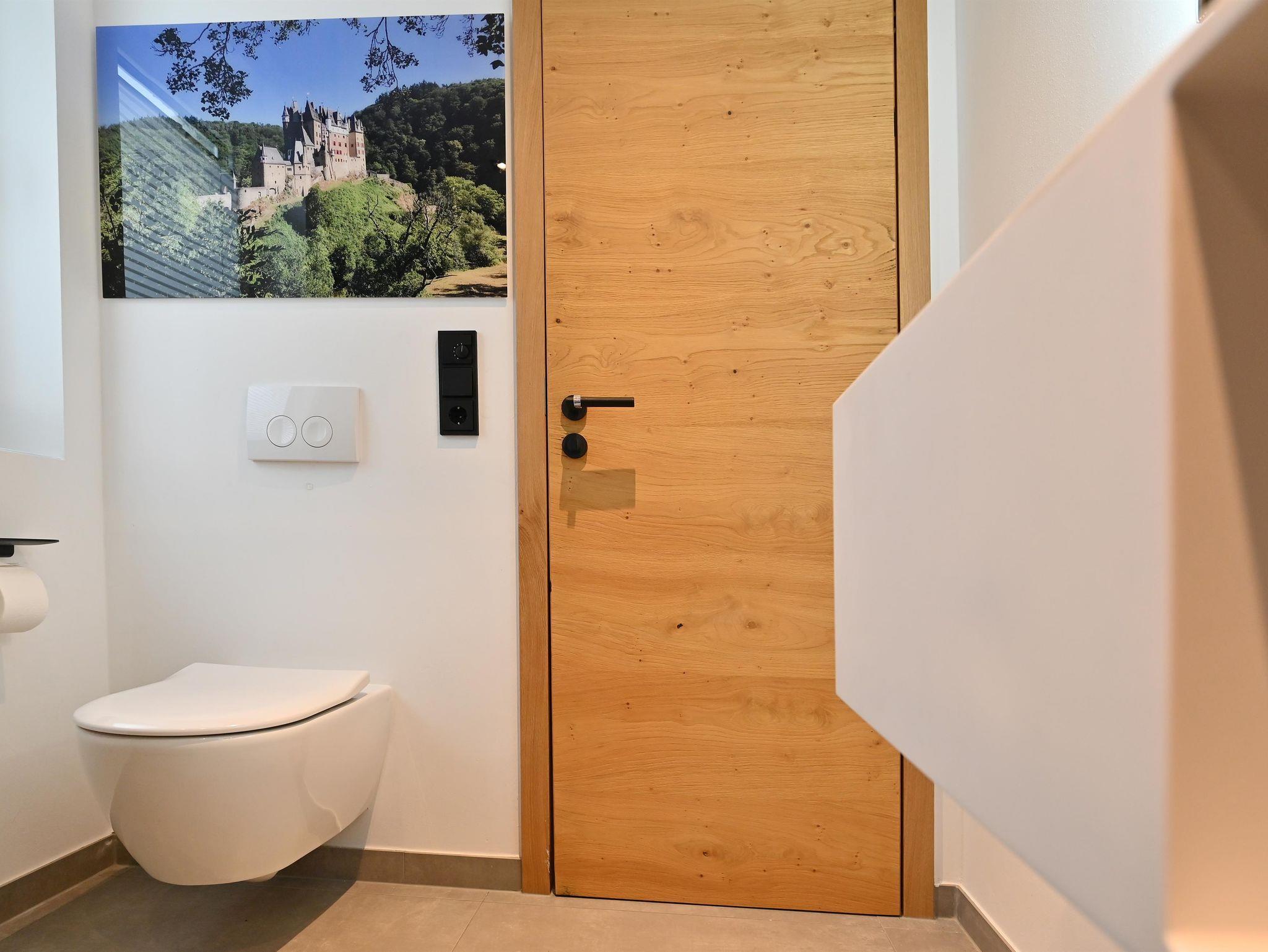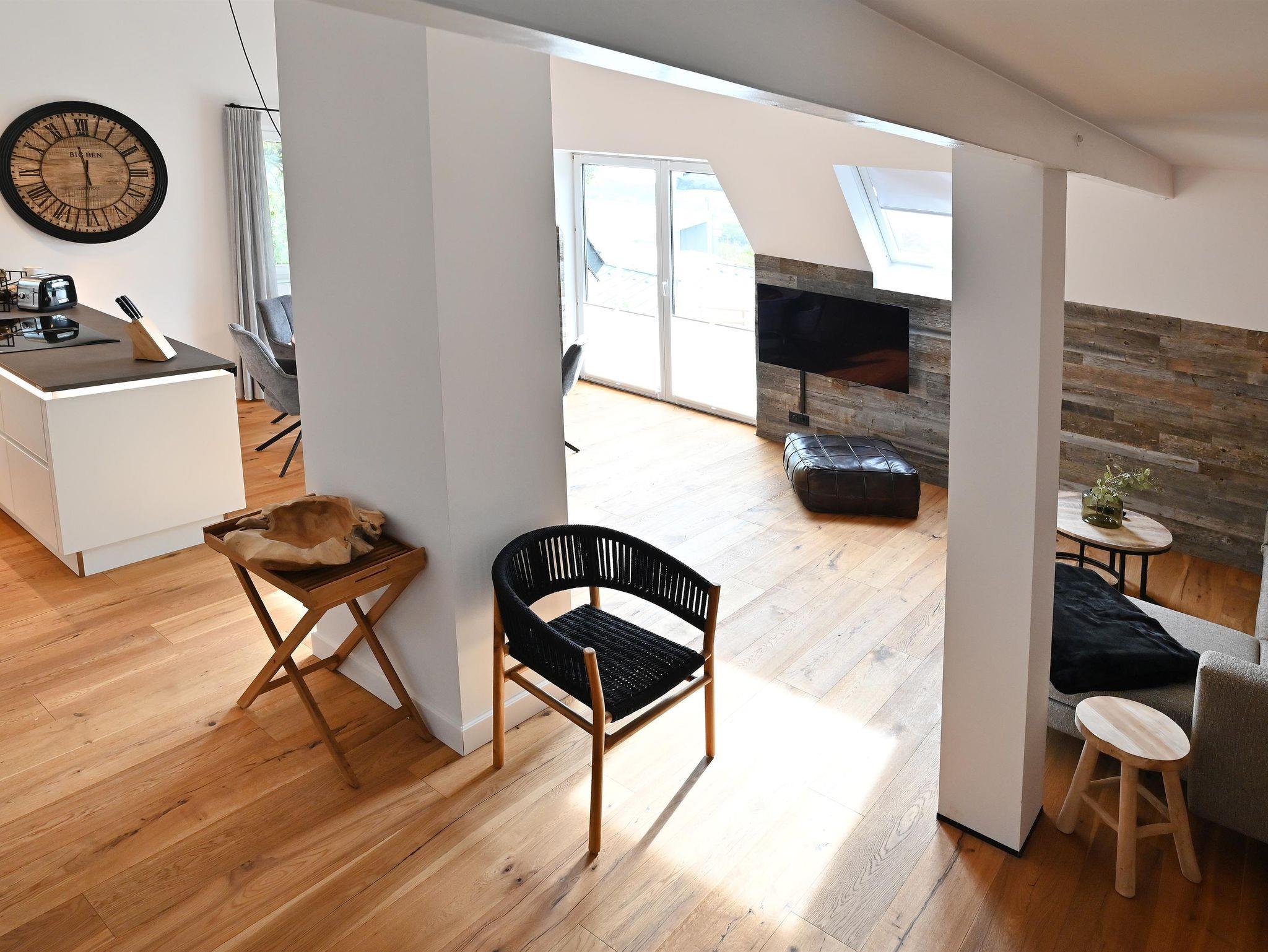 Die hochwertig eingerichtete Ferienwohnung mit Panoramablick auf Eifel, Mosel und Hunsrück bietet höchsten Komfort. Auch vom Balkon aus hat man einen herrlichen Blick. Mit drei Schlafzimmern und zwei modernen Bädern bietet die 110 m² große Ferienwohnung über zwei Etagen alles, was Sie für einen erholsamen Urlaub benötigen. W-LAN, TV und eine Wallbox sind selbstverständlich vorhanden.