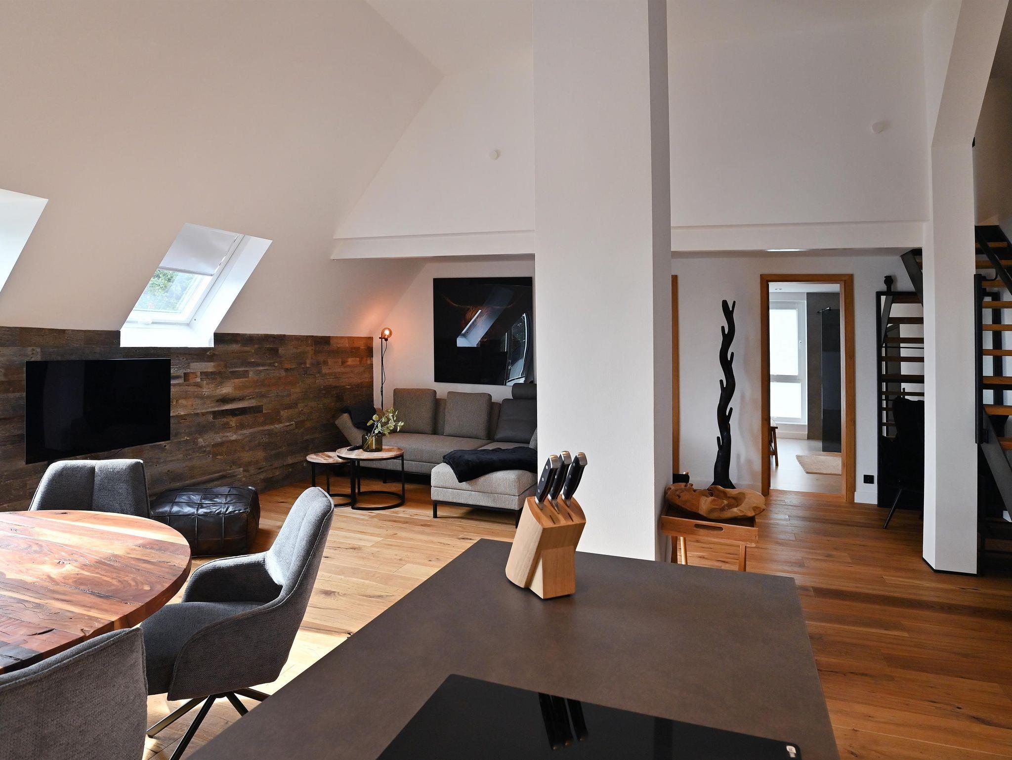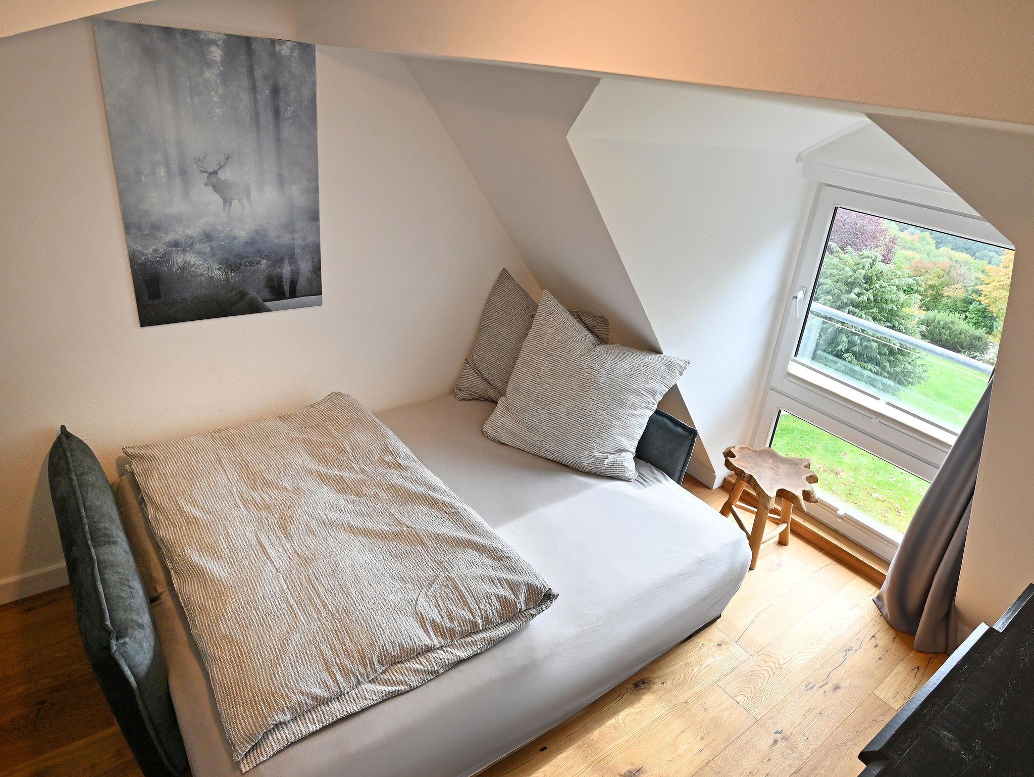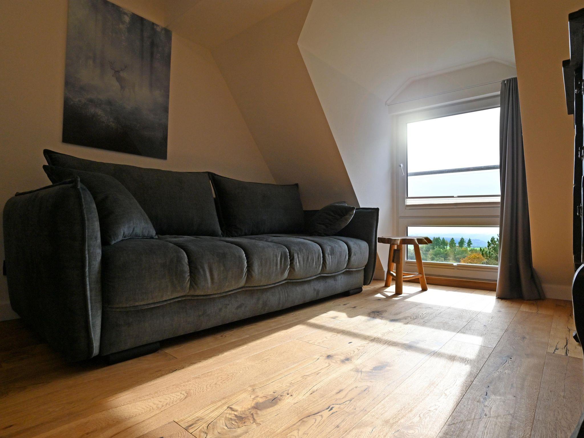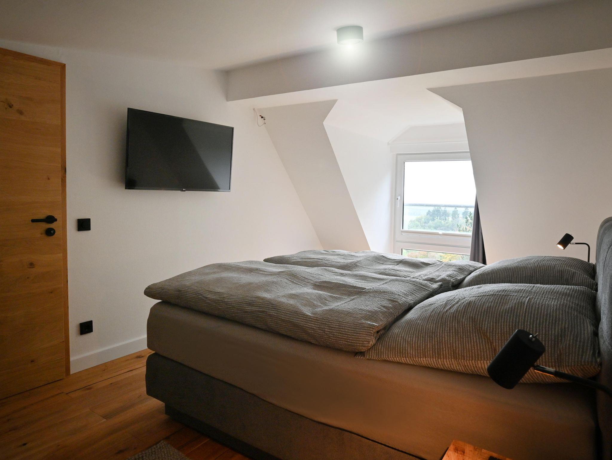 Die hochwertig eingerichtete Ferienwohnung mit Panoramablick auf Eifel, Mosel und Hunsrück bietet höchsten Komfort. Auch vom Balkon aus hat man einen herrlichen Blick. Mit drei Schlafzimmern und zwei modernen Bädern bietet die 110 m² große Ferienwohnung über zwei Etagen alles, was Sie für einen erholsamen Urlaub benötigen. W-LAN, TV und eine Wallbox sind selbstverständlich vorhanden.