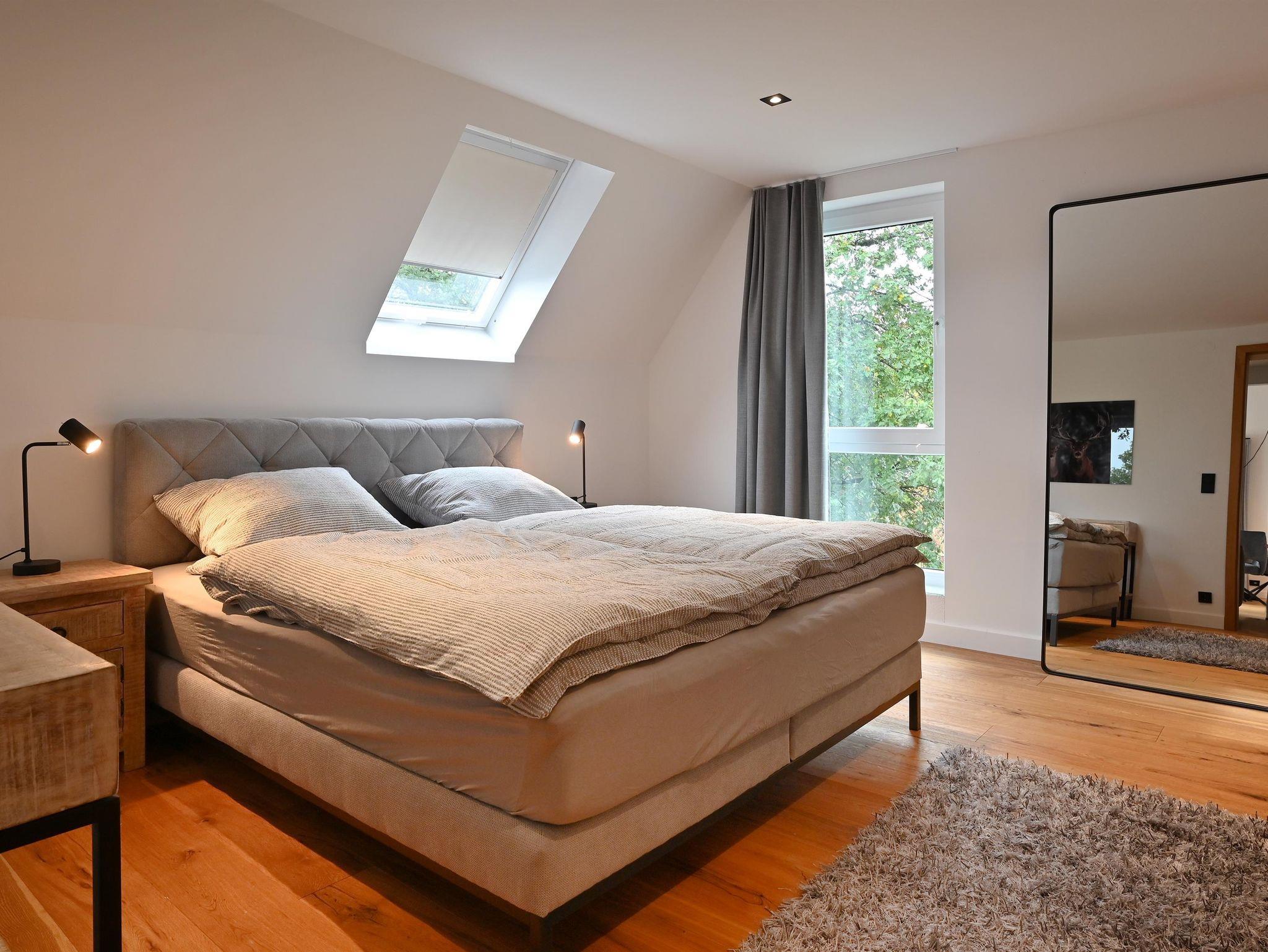 Zwei Schlafzimmer mit jeweils einem Boxspring Doppelbett mit bequemen Topper in 180x200cm