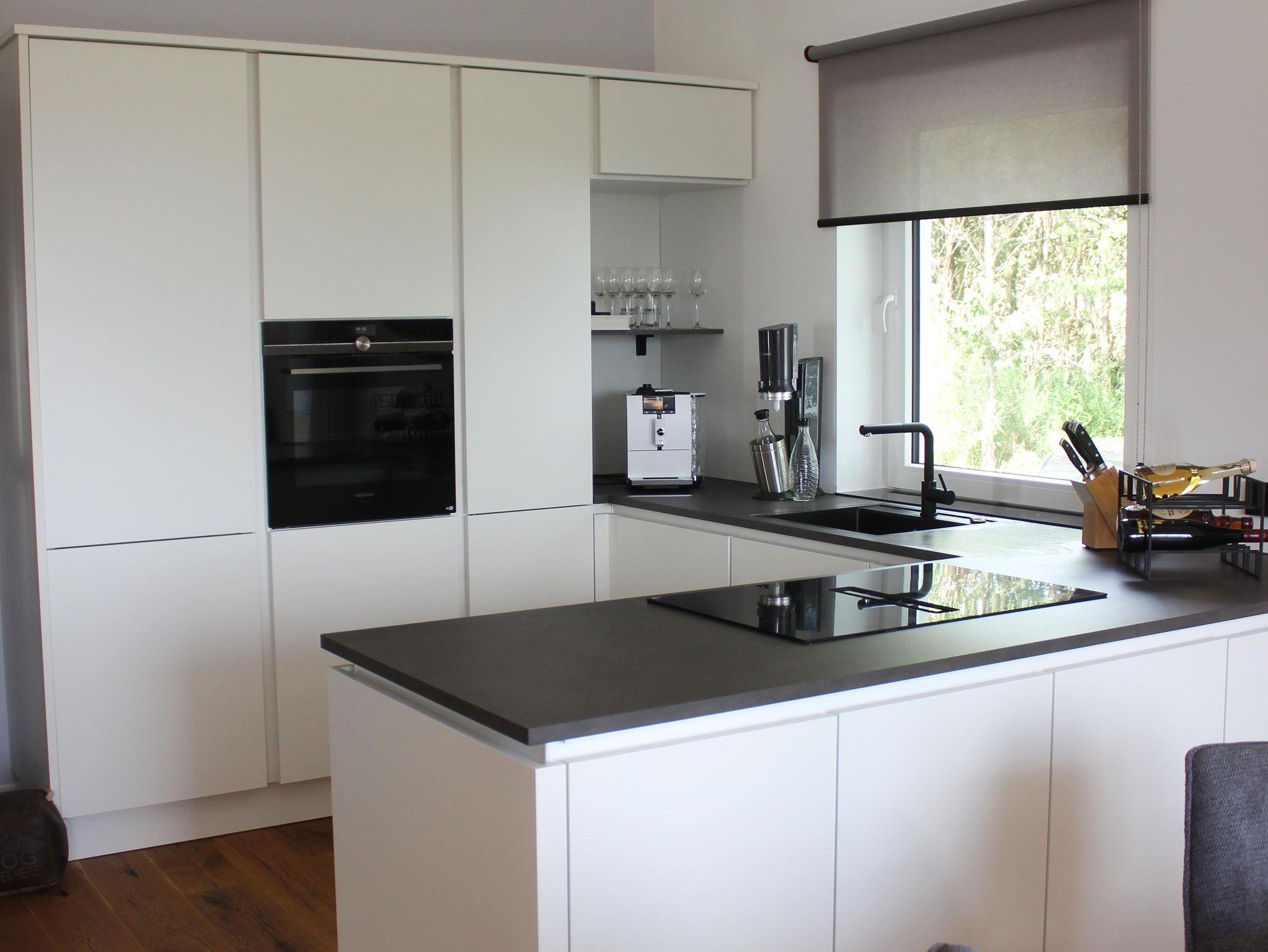 NOLTE Küche im U mit Siemens Geräten: Kühlschrank, Gefrierschubladen, Spülmaschine und Induction-Kochfeld.