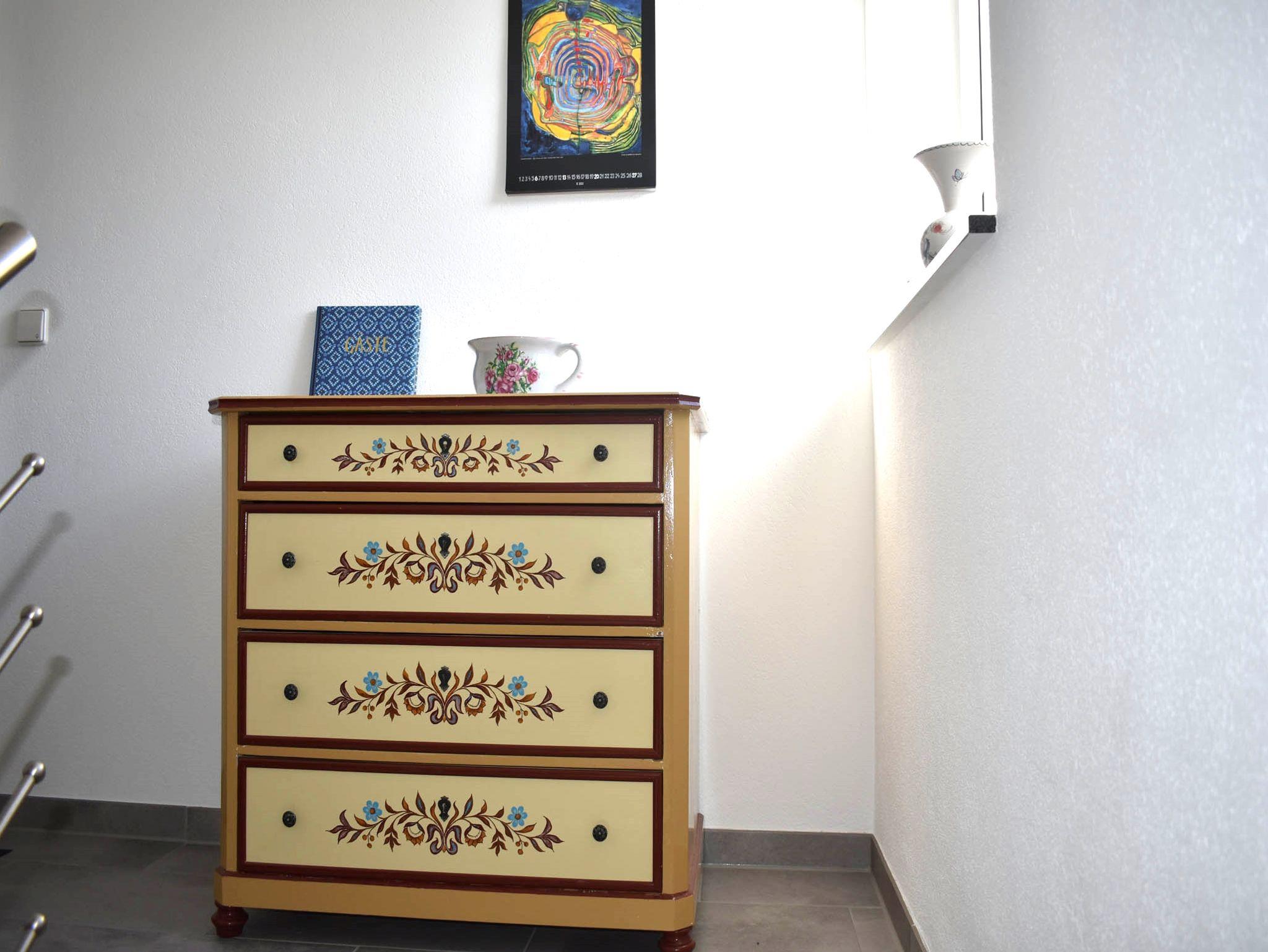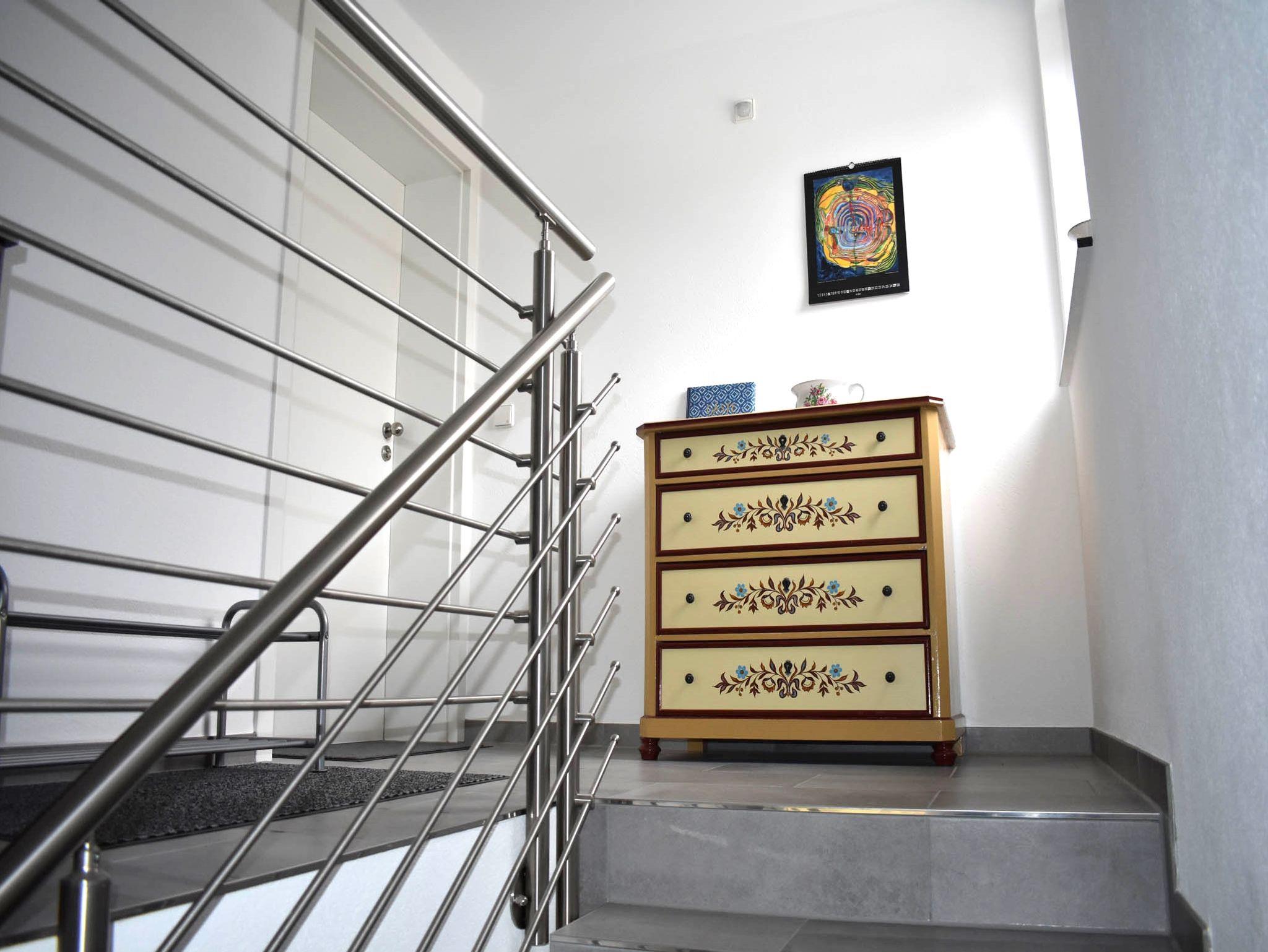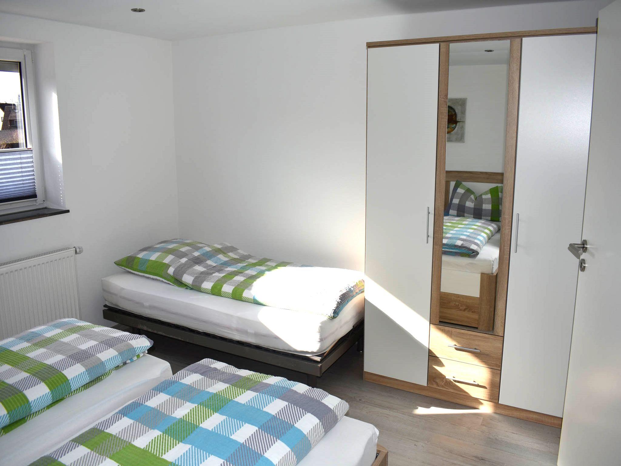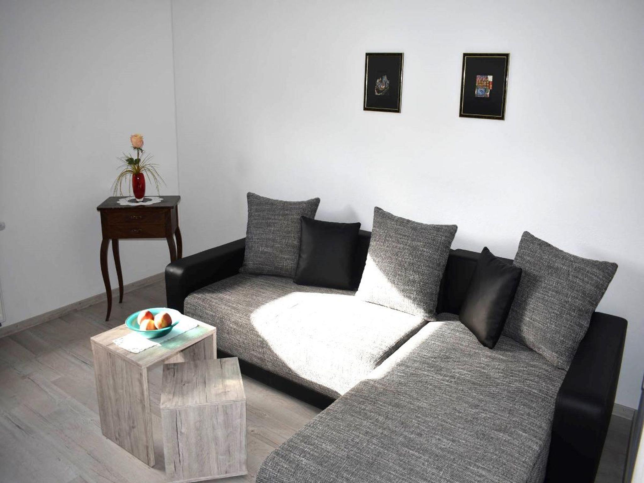 Das Ferienhaus bietet neu renovierte Wohnungen mit 60 m² und 70 m² Wohnfläche und bieten Platz für 1-4 Personen. Das Wohnzimmer mit Schlafsofa und Flachbild-TV lädt zum Verweilen ein. Die komplett ausgestattete Wohnküche mit Geschirr-spüler, Kühlschrank inkl. Gefrierfach, Herd, Backofen, Mikrowelle, Wasserkocher, Eierkocher, Toaster und Kaffeefilter plus Sitzgelegenheit (Tisch mit 5 Stühlen) lässt keine Wünsche offen. Die Wohnung verfügt über 1 großes Schlafzimmer mit Bettengröße 1 auf 2 m, 1 kleines Schlafzimmer mit einem Bett 1,60 m. Das geräumige Badezimmer hat 1 Dusche, 1 Badewanne, 1 WC, 1 Waschbecken mit großem Spiegel und einem Schrank in dem sich Haarföhn, Handtücher sowie Toilettenpapier befindet. In den Sommermonaten können Sie entspannt den Tag auf unserer großen überdachten Terrasse mit Garten ausklingen lassen. Bitte beachten Sie, dass keine Haustiere erlaubt sind.