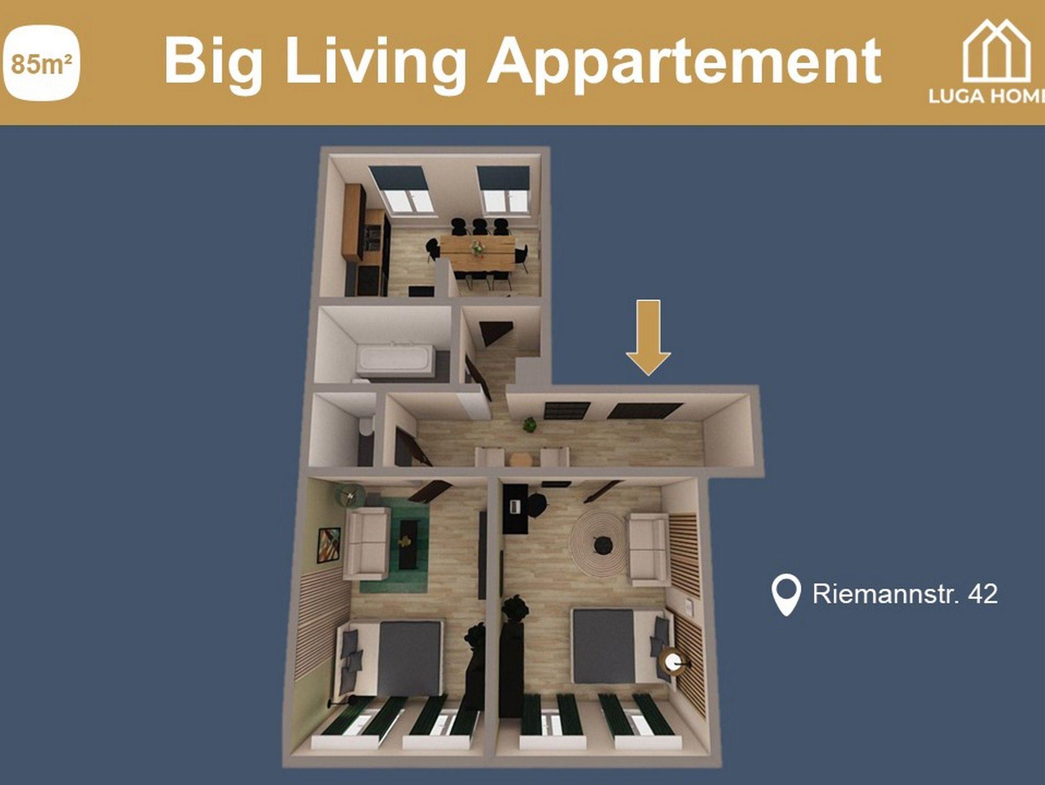 Luga Homes - Karli, *Big Living* 3-Zimmer-Appartement mit Küche