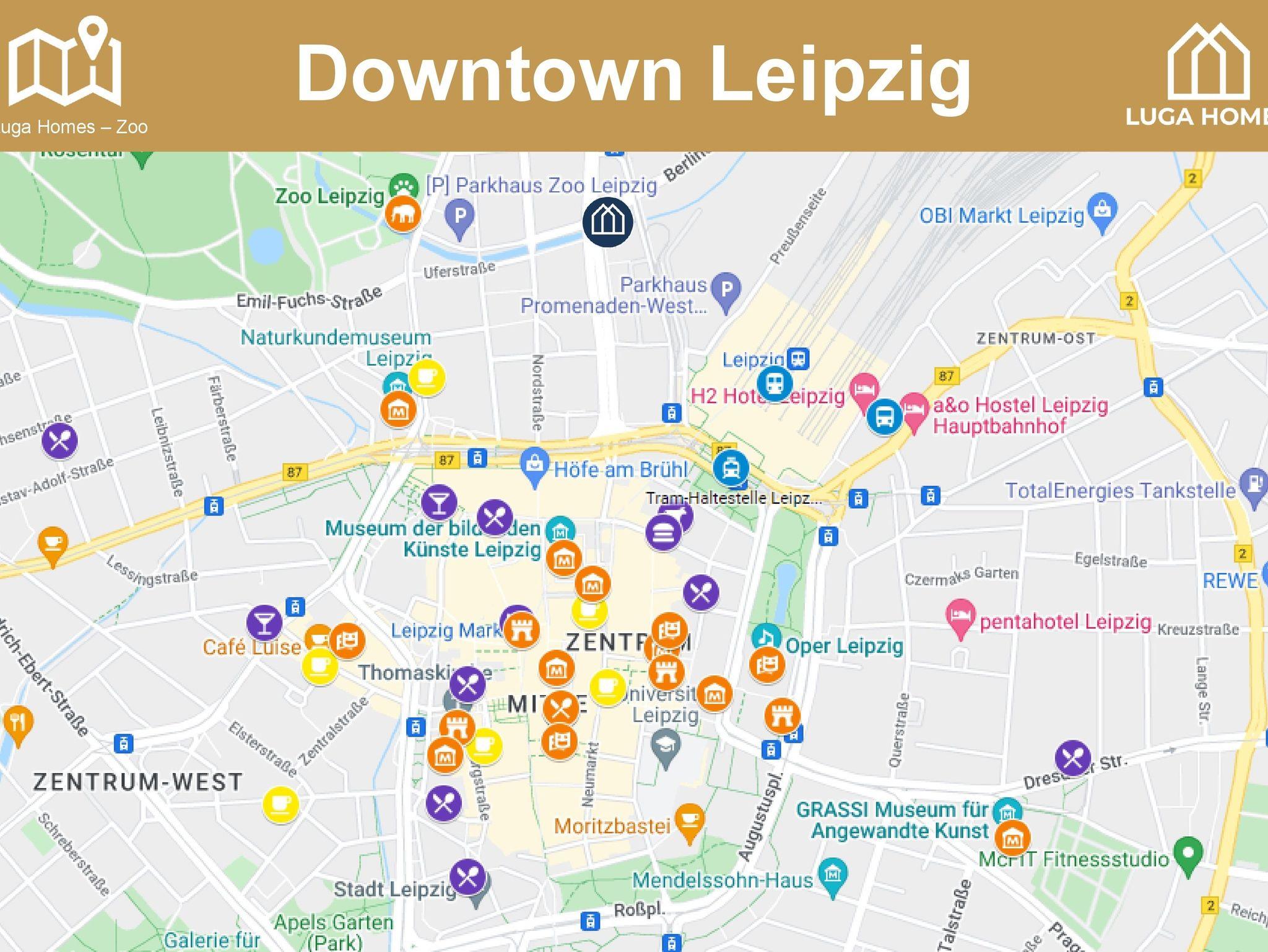 Also auf ins bunte Treiben! In 5min zu Fuß bist Du schon am Leipziger Zoo und in ein paar Minuten mehr in der historischen Altstadt mit vielen Sehenswürdigkeiten, gastronomischen Leckerbissen und Shoppingattraktionen.