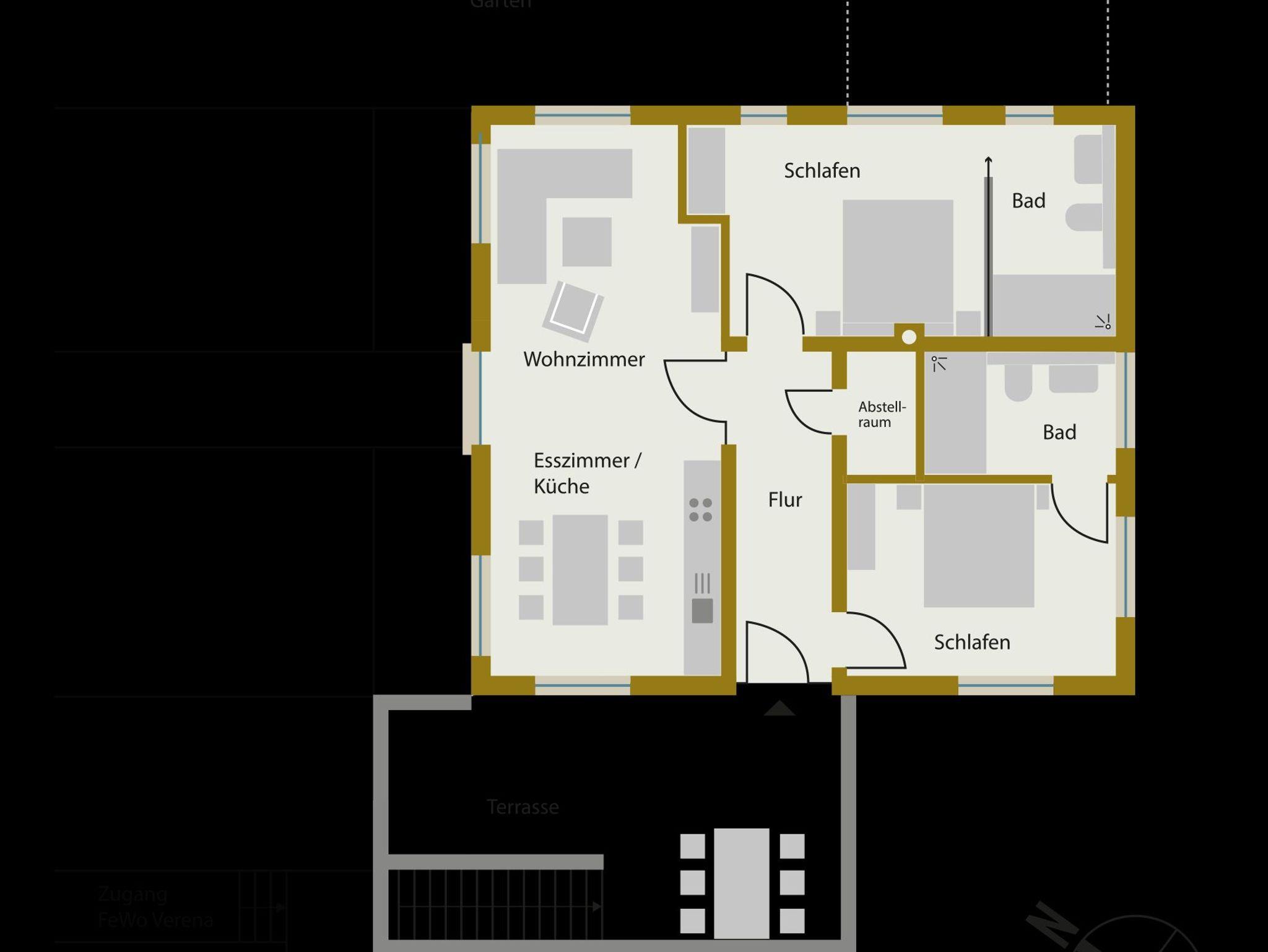 Bei Buchung der Wohnung für 2 Personen kann nur ein Schlafzimmer genutzt werden- (Nutzung des 2. Schafzimmers gegen Aufpreis).