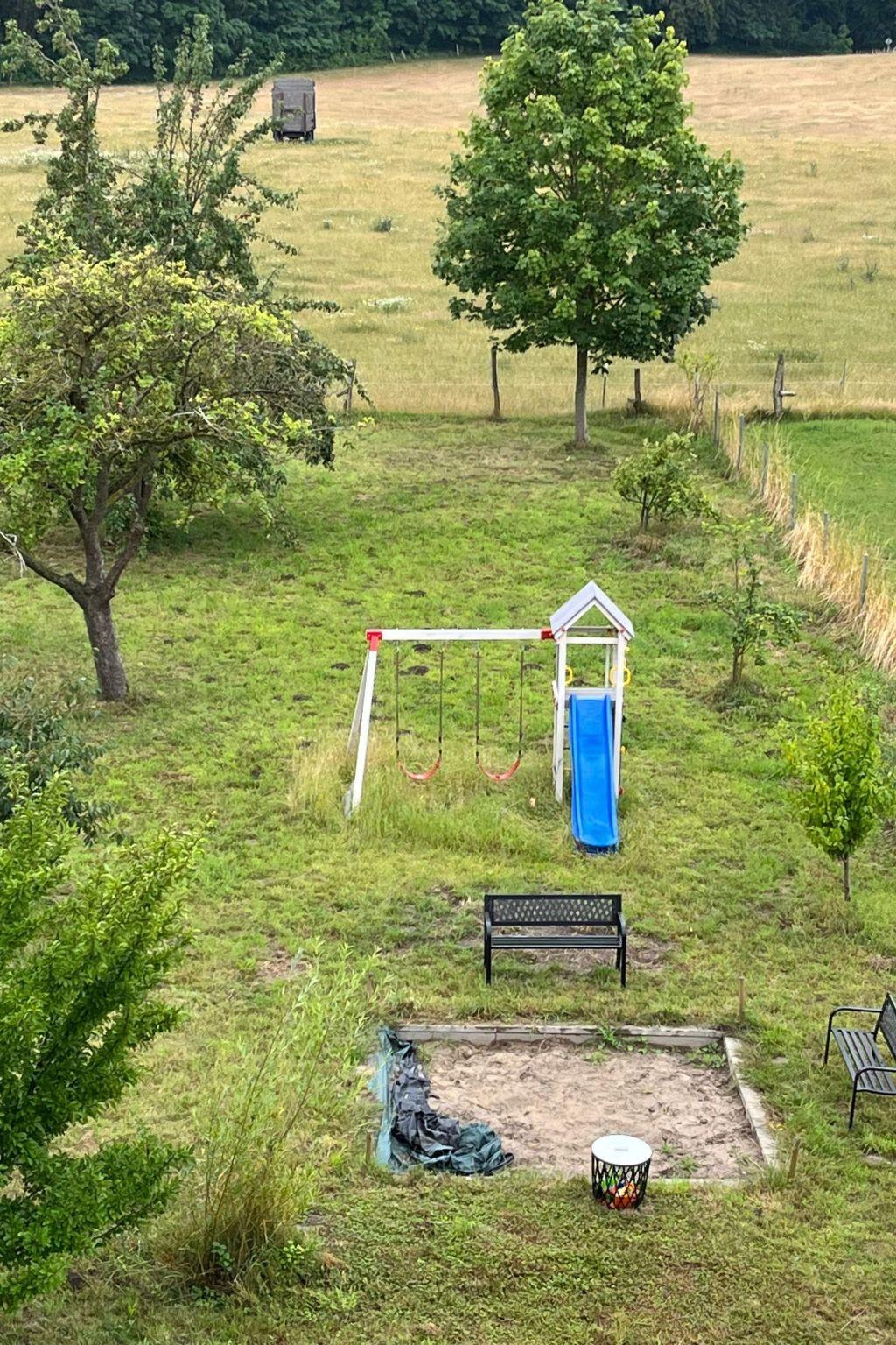 The property is in a quiet location, surrounded by a large garden with a meadow orchard. A brick-built outdoor barbecue invites tenants to enjoy cosy barbecue evenings. Children will find plenty of space to play in the garden. Balcony furniture is available. Sun loungers for the garden can be found in the garage.
