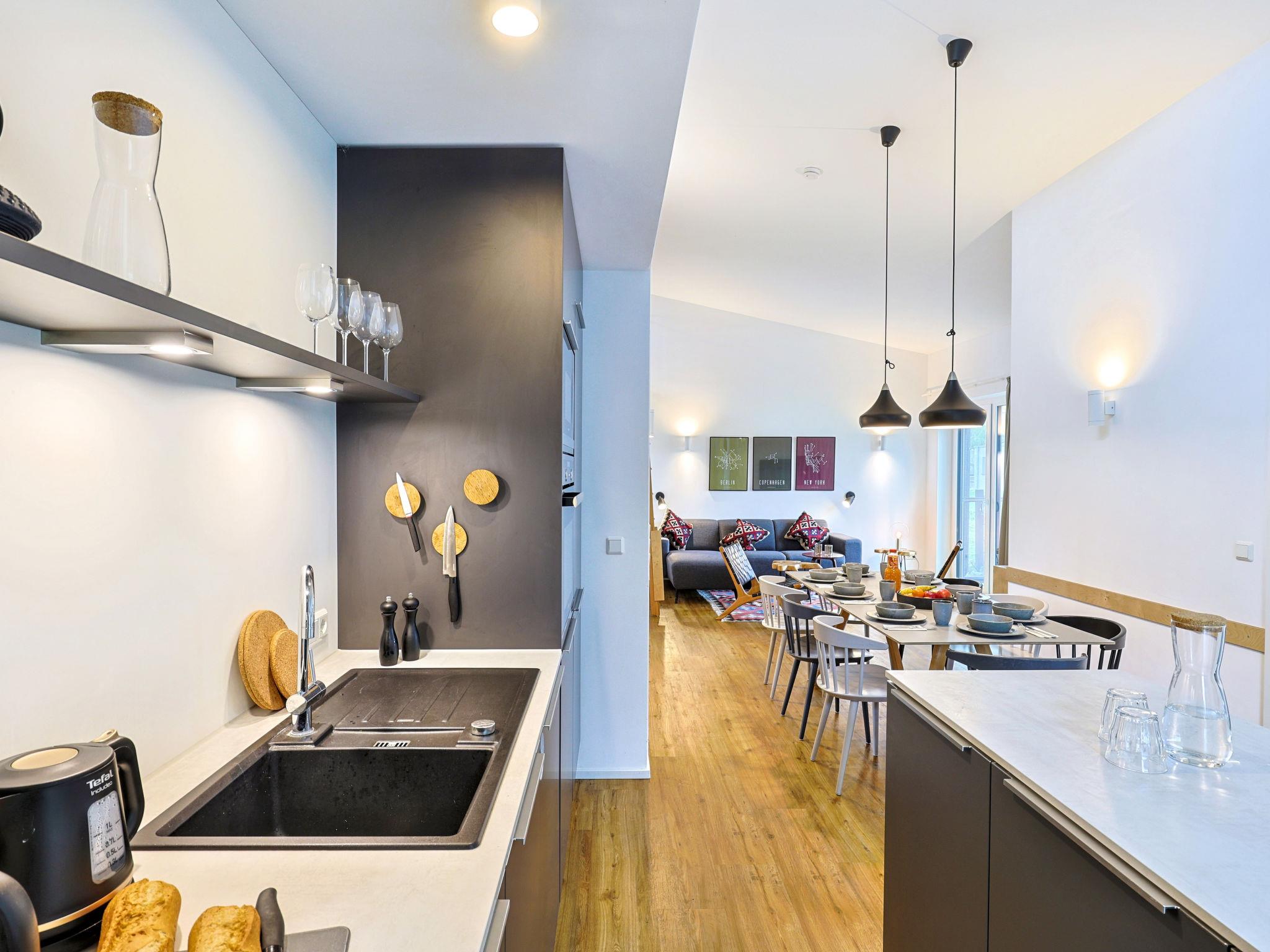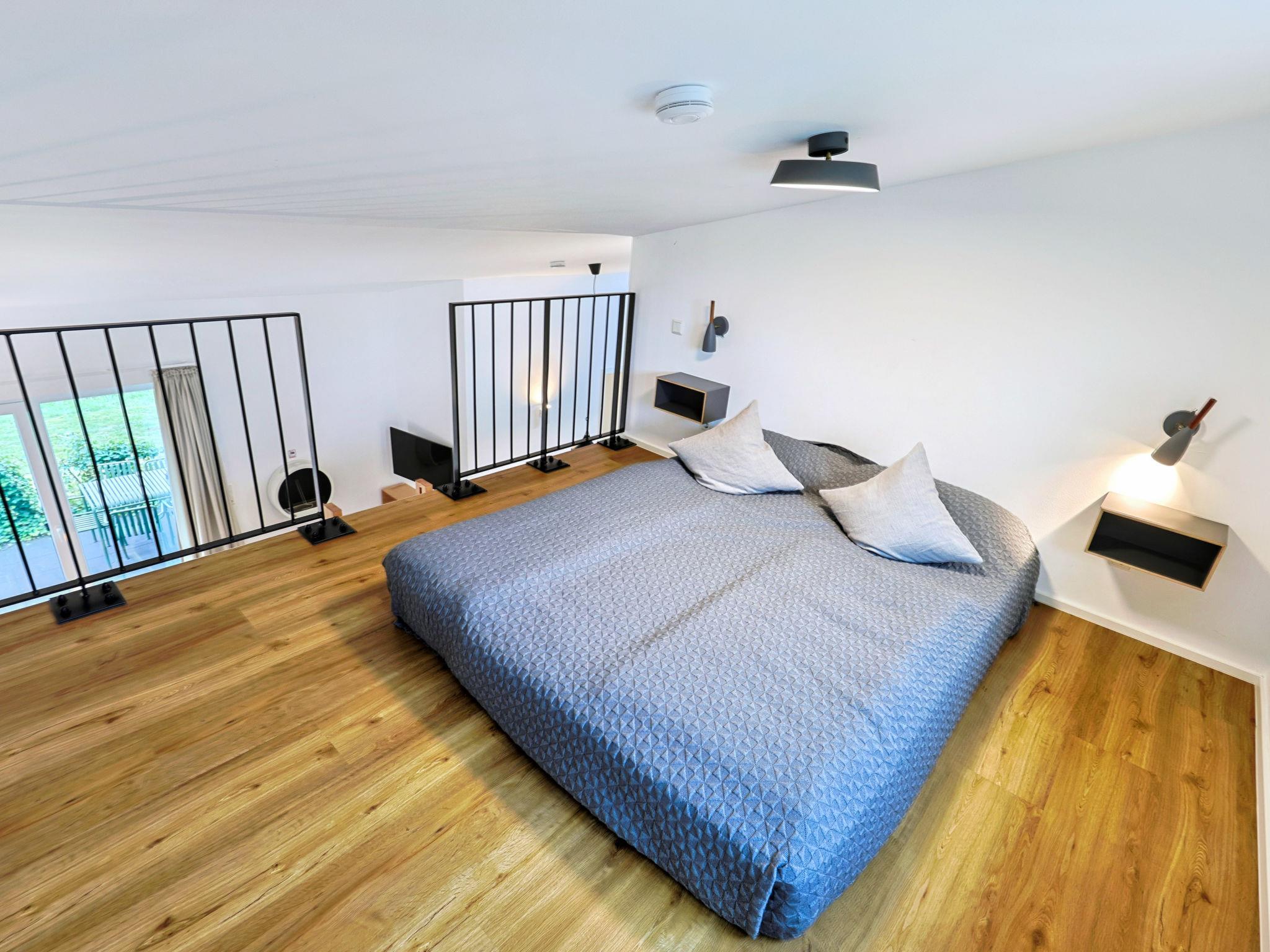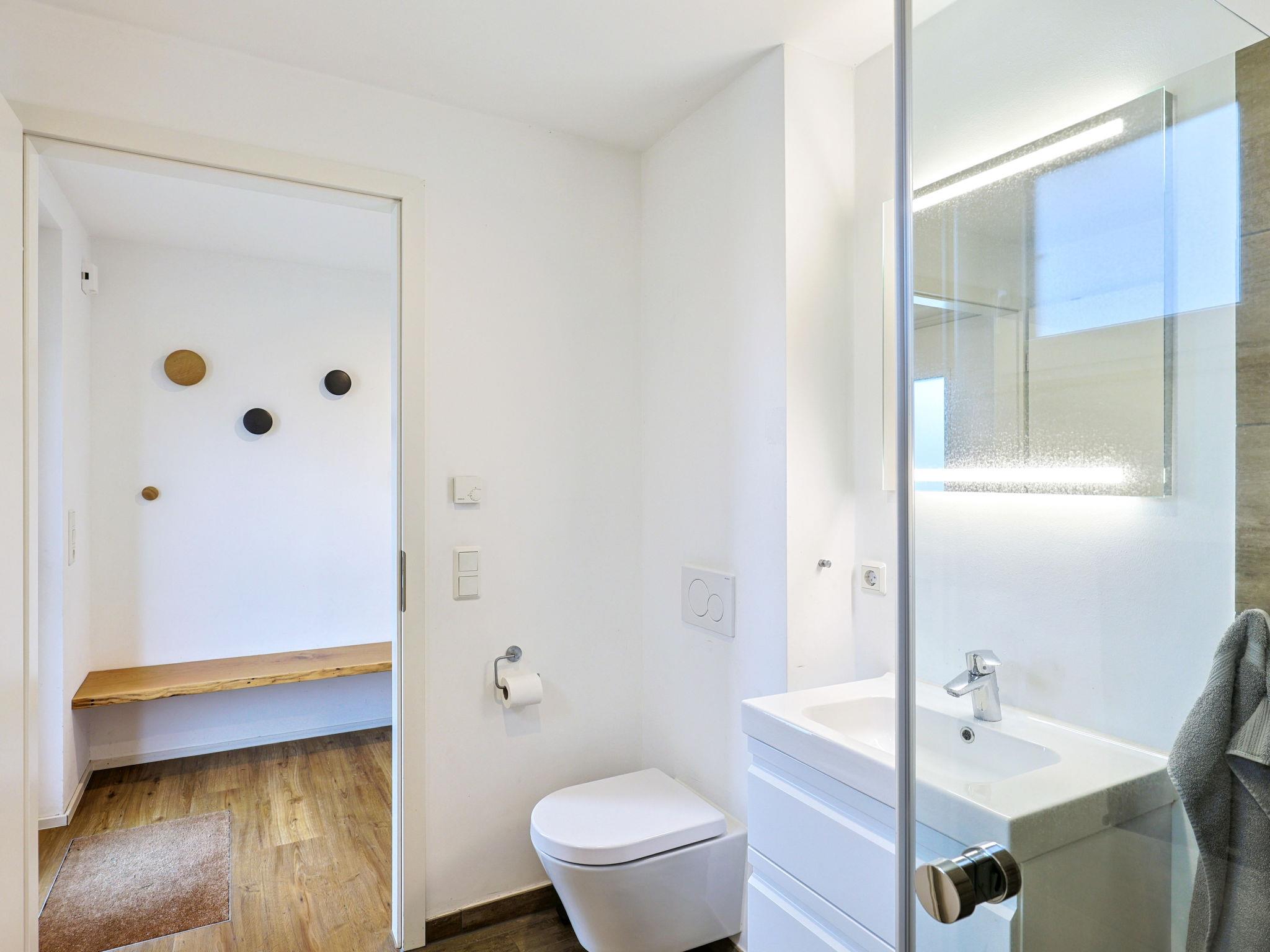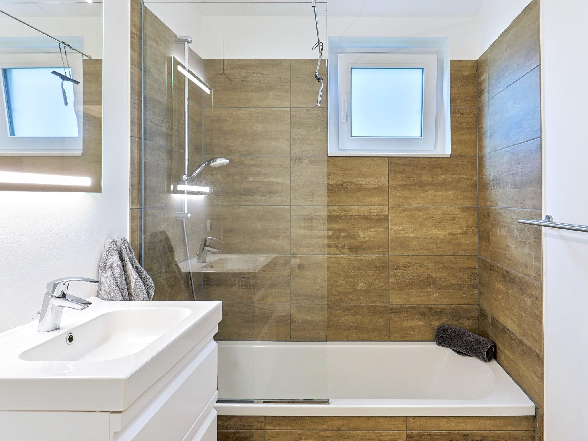 "Familiennest", 4-room house 98 m2 on 2 levels. Tasteful and cosy furnishings: living/dining room with satellite TV (flat screen). Exit to the terrace. 2 rooms, each room with 1 double bed (2 x 90 cm, length 200 cm). 1 room with 1 x 2 bunk beds (90 cm, length 200 cm). Kitchen-/living room (oven, dishwasher, 4 ceramic glass hob hotplates, toaster, kettle, microwave, electric coffee machine). Bath/WC, shower/WC. Upper floor: (ladder) open gallery with sloping ceilings with 2 sleeping facilities. Terrace. Terrace furniture, electric barbecue. Facilities: washing machine, dryer, sauna, children's high chair (extra), hair dryer. Internet (WiFi, free). Please note: non-smoking house. Maximum 1 pet/ dog allowed. Smoke alarm, fire extinguisher. There is a hot tub on the terrace.