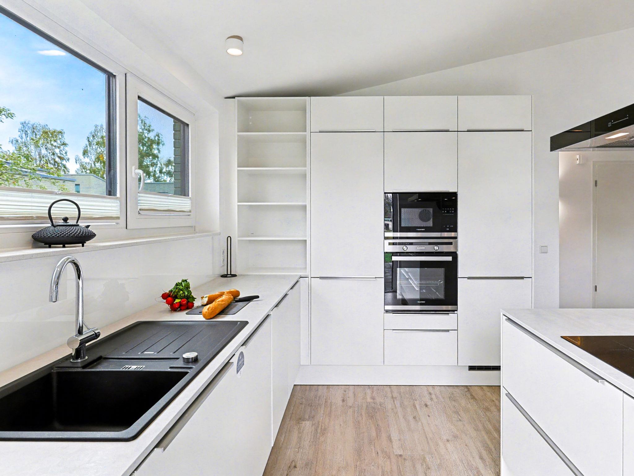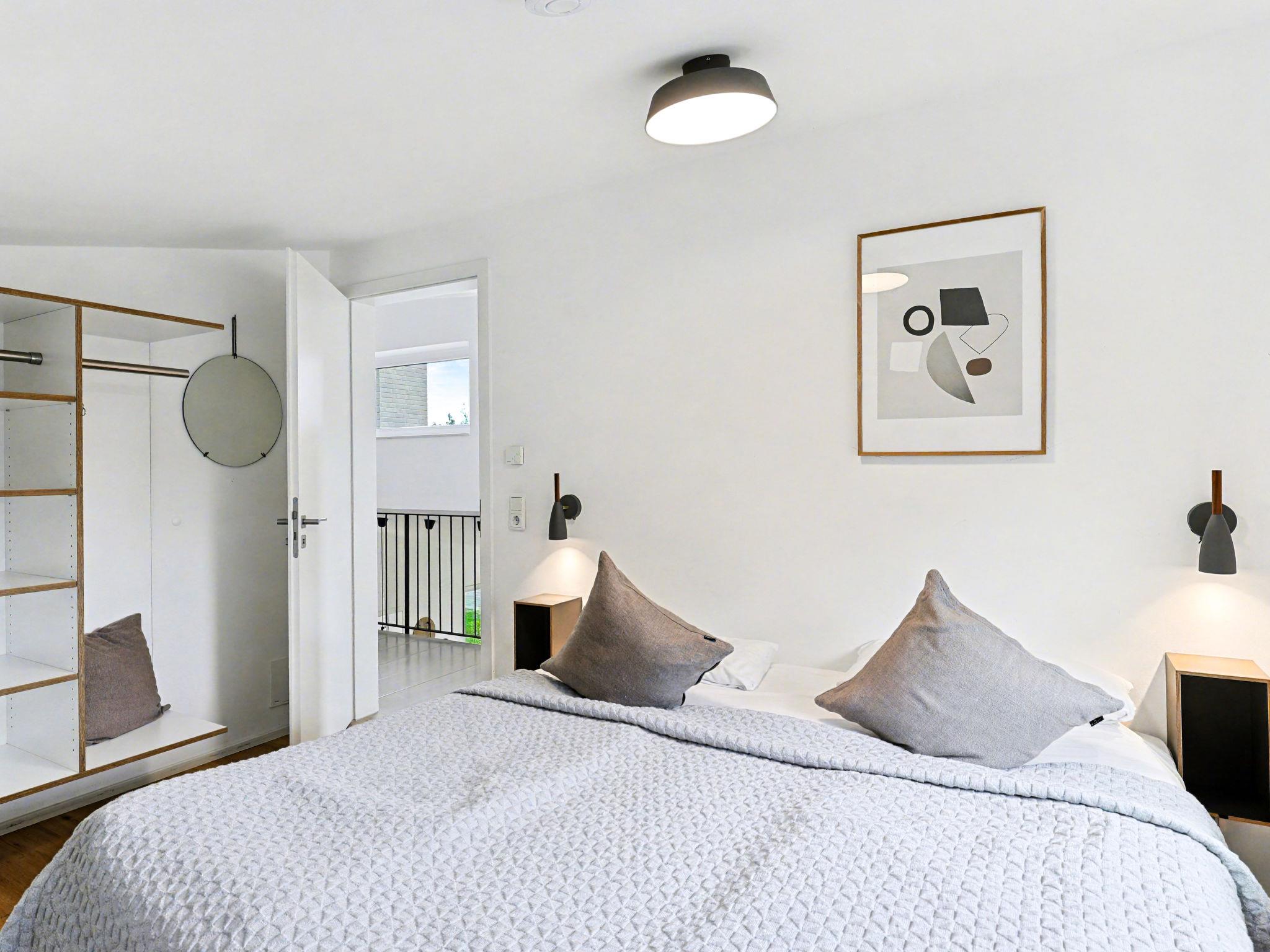 "Paradiso", 6-room house 192 m2 on 2 levels. Tasteful and cosy furnishings: living/dining room with satellite TV (flat screen). Exit to the terrace. 2 rooms, each room with 1 double bed (180 cm, length 200 cm). Open kitchen (oven, dishwasher, 4 ceramic glass hob hotplates, toaster, kettle, microwave, electric coffee machine). Shower/WC, sep. WC, bath/shower/WC. Upper floor: 3 rooms, each room with 1 double bed (180 cm, length 200 cm). Bath/shower/WC. 2 terraces. Terrace furniture, electric barbecue. Facilities: washing machine, dryer, sauna, children's high chair (extra), hair dryer. Internet (WiFi, free). Parking (2 cars) at the house. Please note: non-smoking house. 1 small pet/ dog allowed. Smoke alarm. Private indoor pool on the ground floor. Bio-fireplace in the living room. View of the pond.