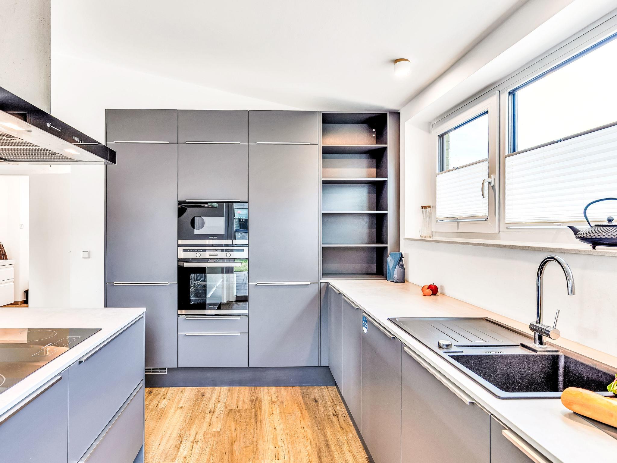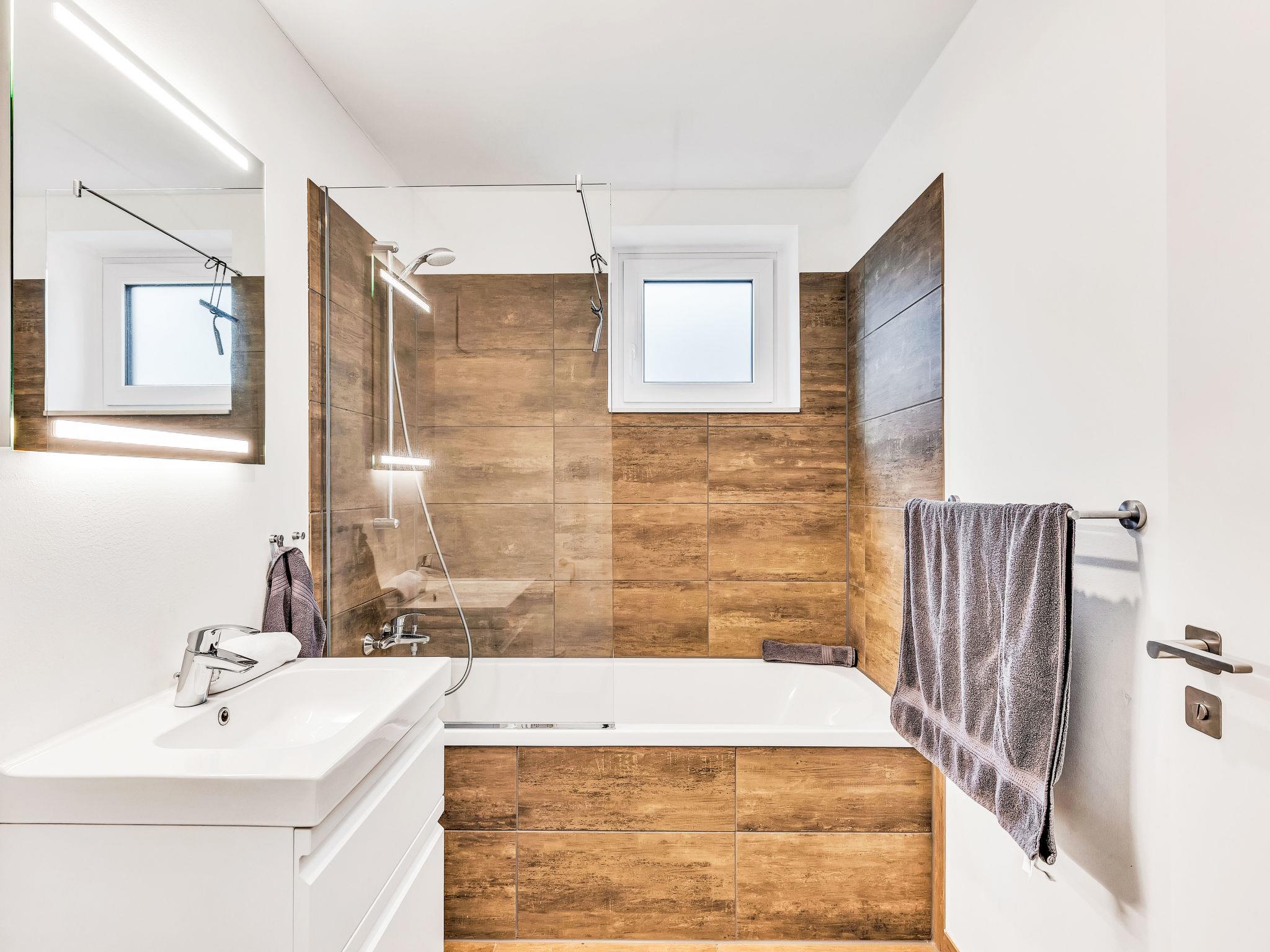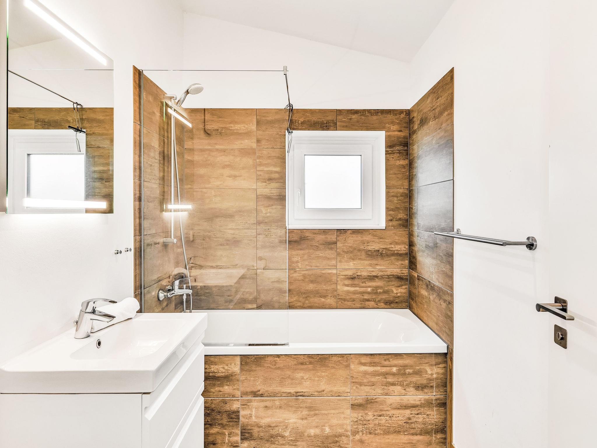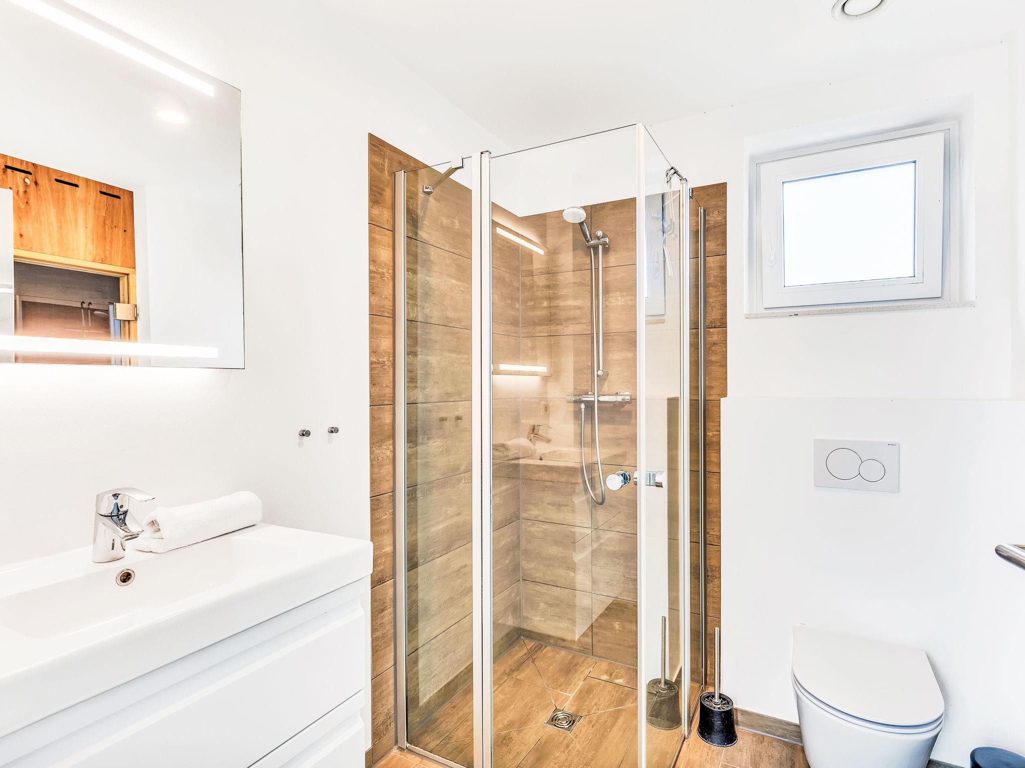 "Horizont Lodge", 6-room house 192 m2 on 2 levels. Tasteful and cosy furnishings: living/dining room with satellite TV (flat screen). Exit to the terrace. 1 room with 1 double bed (2 x 90 cm, length 200 cm). Open kitchen (oven, dishwasher, 4 ceramic glass hob hotplates, toaster, kettle, microwave, electric coffee machine). Bath/shower/WC. Upper floor: 4 rooms, each room with 1 double bed (2 x 90 cm, length 200 cm). 2 Baths/showers/WC. Terrace. Terrace furniture, electric barbecue. Facilities: washing machine, dryer, sauna, children's high chair (extra), hair dryer. Internet (WiFi, free). Please note: non-smoking house. 1 small pet/ dog allowed. Smoke alarm. Private indoor pool on the ground floor.