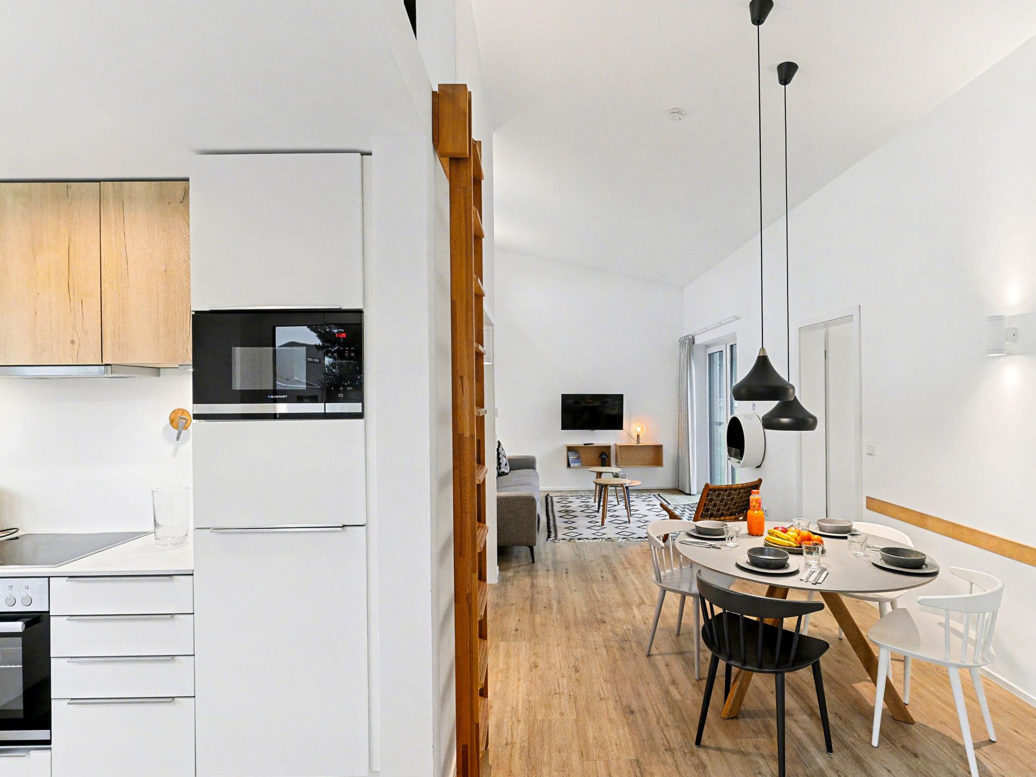 "Küstenzauber (282)", 3-room house 85 m2 on 2 levels. Tasteful and cosy furnishings: living/dining room with satellite TV (flat screen). Exit to the terrace. 2 rooms, each room with 1 double bed (2 x 90 cm, length 200 cm). Open kitchen (oven, dishwasher, 4 ceramic glass hob hotplates, toaster, kettle, microwave, electric coffee machine). Bath/WC, shower/WC. Upper floor: (ladder) open gallery with sloping ceilings with 2 sleeping facilities. Terrace. Terrace furniture, electric barbecue. Facilities: washing machine, dryer, sauna, children's high chair (extra), hair dryer. Internet (WiFi, free). Please note: non-smoking house. Smoke alarm.