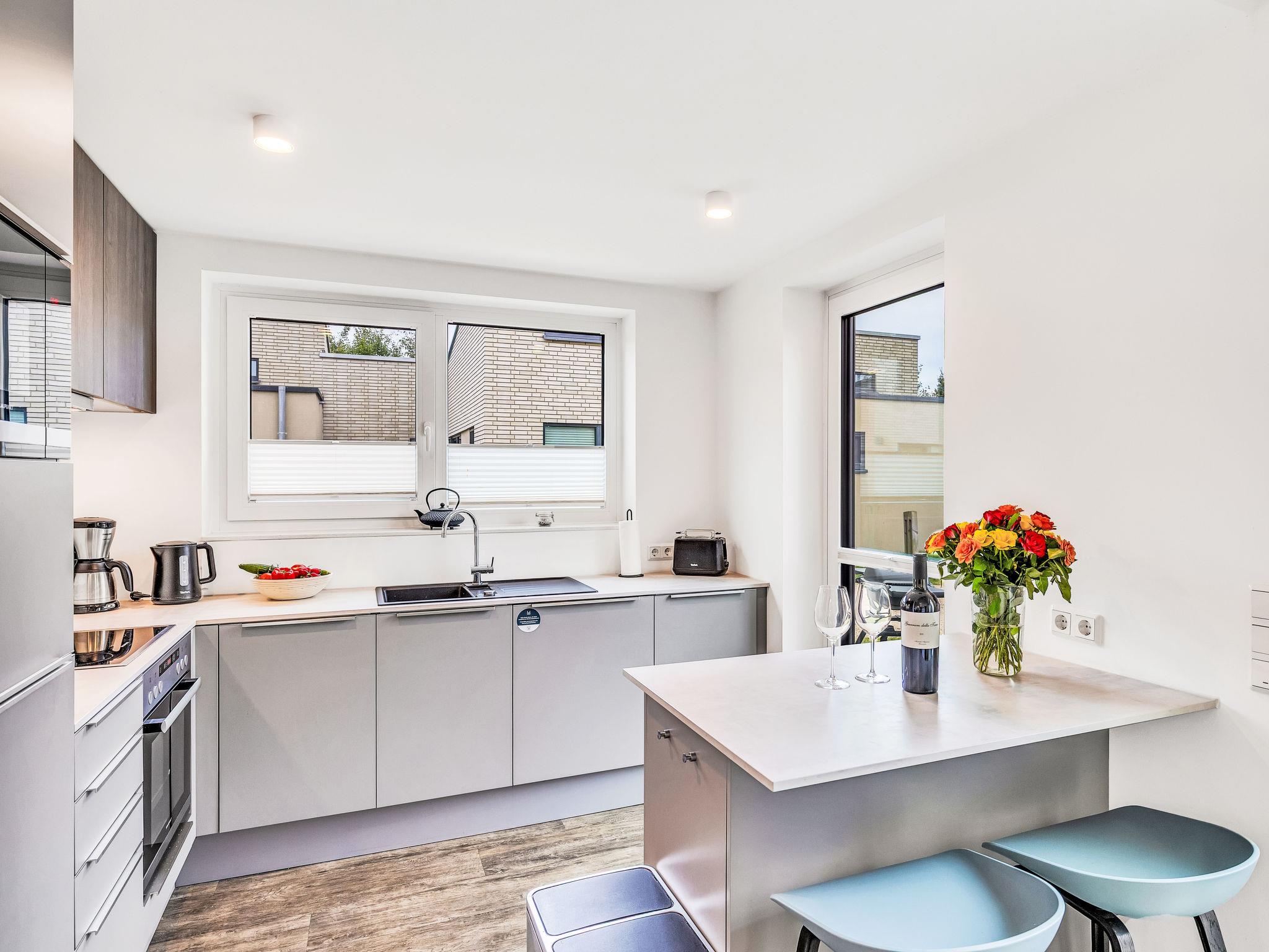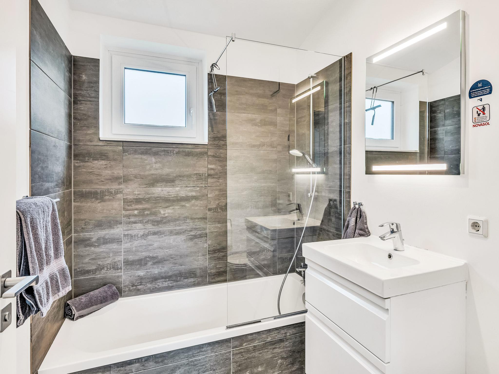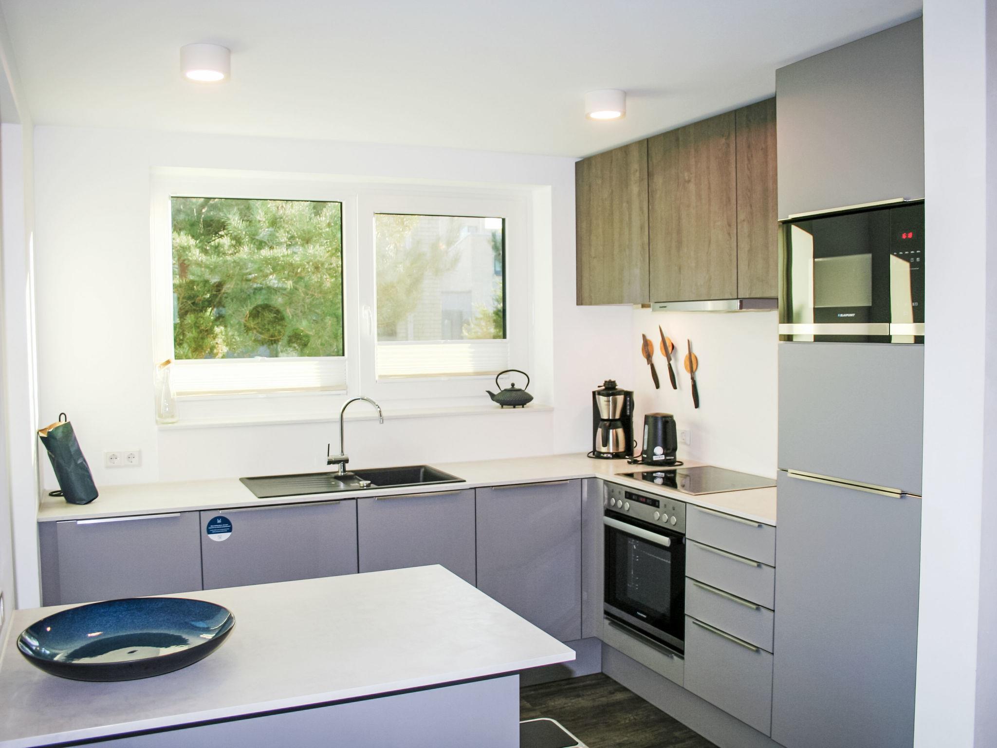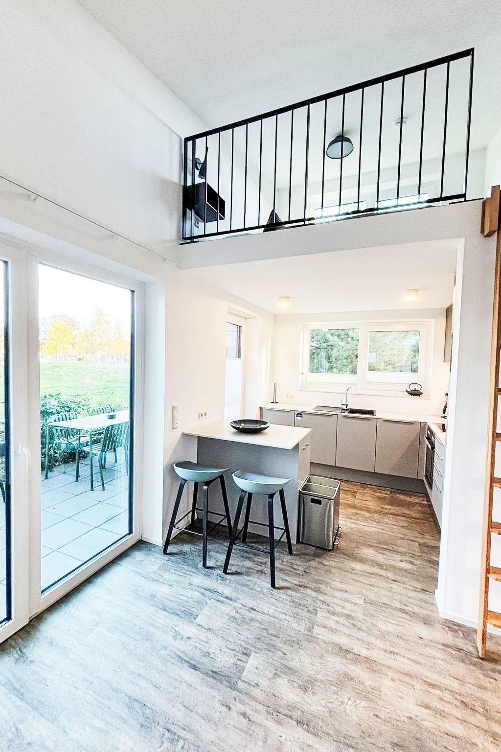"Zwischen den Hügeln (153)", 3-room house 85 m2 on 2 levels. Tasteful and cosy furnishings: living/dining room with satellite TV (flat screen). Exit to the terrace. 2 rooms, each room with 1 double bed (2 x 90 cm, length 200 cm). Open kitchen (oven, dishwasher, 4 ceramic glass hob hotplates, toaster, kettle, microwave, electric coffee machine). Bath/WC, shower/WC. Upper floor: (ladder) open gallery with sloping ceilings with 2 sleeping facilities. Terrace. Terrace furniture, electric barbecue. Facilities: washing machine, dryer, sauna, children's high chair (extra), hair dryer. Internet (WiFi, free). Please note: non-smoking house. Smoke alarm.