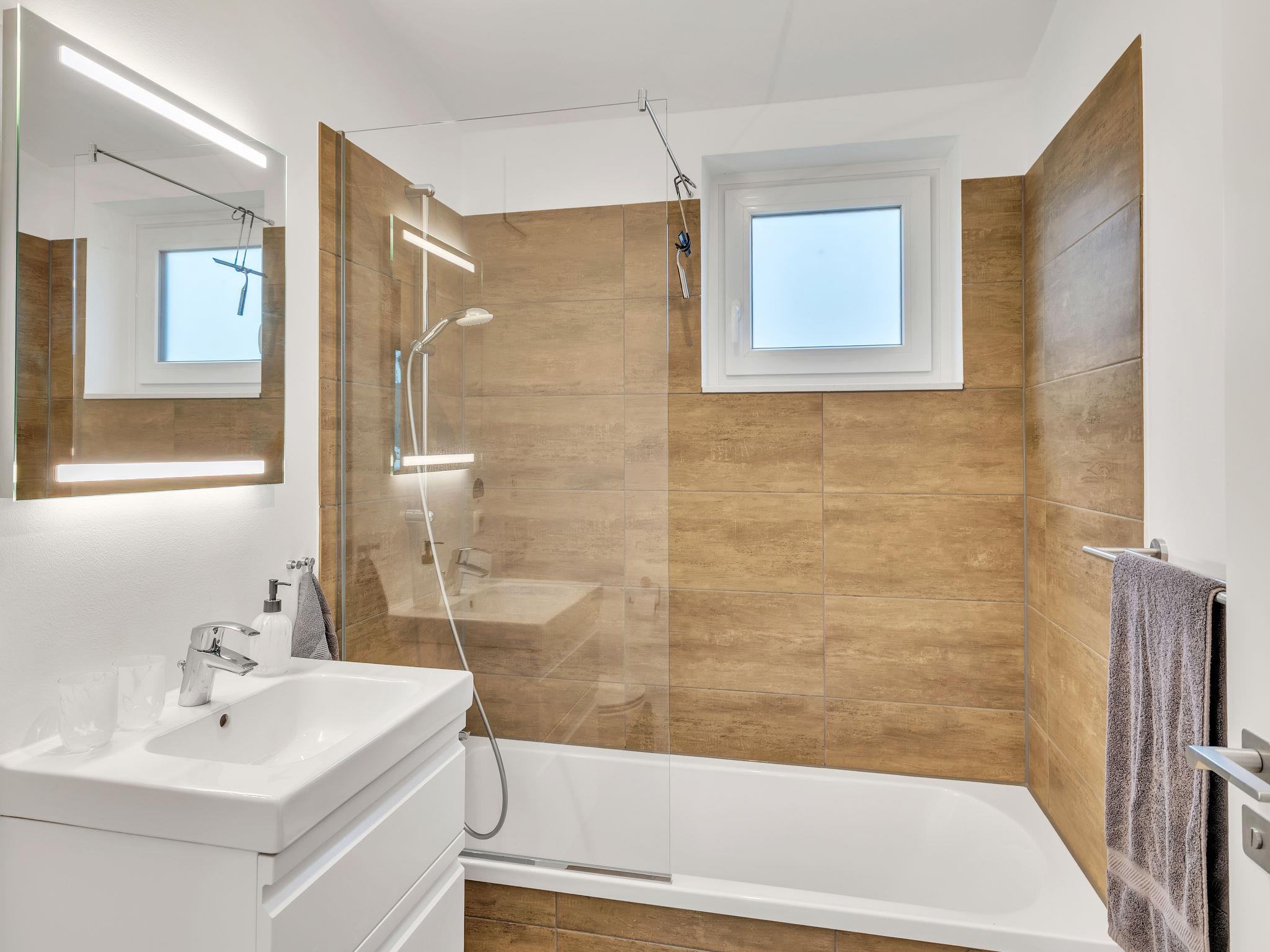 "Sonnenschein", 3-room house 85 m2 on 2 levels. Tasteful and cosy furnishings: living/dining room with satellite TV (flat screen). Exit to the terrace. 2 rooms, each room with 1 double bed (2 x 90 cm, length 200 cm). Open kitchen (oven, dishwasher, 4 ceramic glass hob hotplates, toaster, kettle, microwave, electric coffee machine). Bath/WC, shower/WC. Upper floor: (ladder) open gallery with sloping ceilings with 2 sleeping facilities. Terrace. Terrace furniture, electric barbecue. Facilities: washing machine, dryer, sauna, children's high chair (extra), hair dryer. Internet (WiFi, free). Please note: non-smoking house. Smoke alarm.
