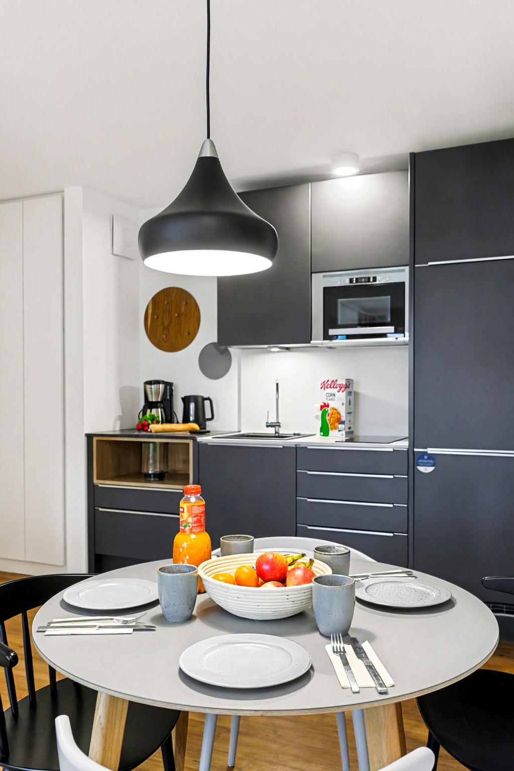 "Seeperle", 2-room terraced house 43 m2, on the ground floor. Tasteful and cosy furnishings: living/dining room with 1 double sofabed, dining table and satellite TV (flat screen). Exit to the terrace. 1 room with 1 double bed (180 cm, length 200 cm). Kitchenette (dishwasher, 2 ceramic glass hob hotplates, toaster, kettle, microwave, electric coffee machine). Shower/WC. Terrace. Terrace furniture, barbecue. Beautiful view of the lake. Facilities: hair dryer. Internet (WiFi, free). Parking (1 car) at the house.