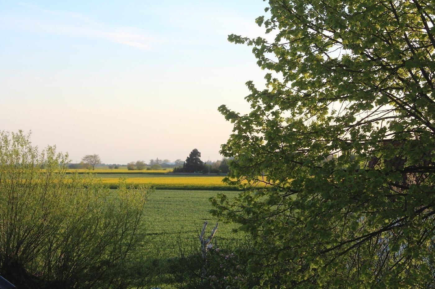 Ruhige Dorfrandlage mit Blick auf die blühenden Rapsfelder der Insel Fehmarn.