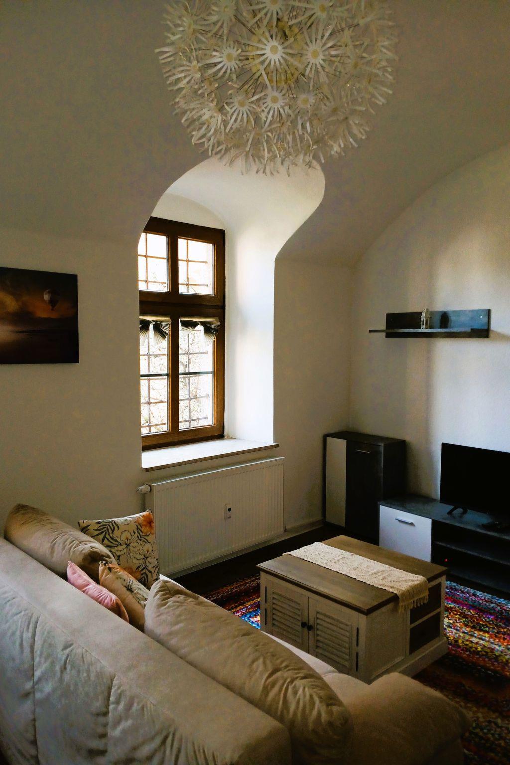 This cosy, newly renovated holiday flat in Plohn in the beautiful Vogtland region at the foot of the Ore Mountains is the perfect choice for up to three people and their faithful four-legged companions. Situated on the ground floor of a historic, listed building in an outbuilding of the Plohn manor, this studio flat offers a unique blend of tradition and comfort. It is ideal for guests travelling with dogs. The Vogtland region offers numerous leisure activities. Just to mention a few: the Plohn leisure park (within walking distance), the Göltschtal bridge, the dragon cave in Syrnau, Lake Vogtland, the dams in Pirk and Falkenstein, the space museum, the Vogtlandarena ski jump, visitor mines and much more