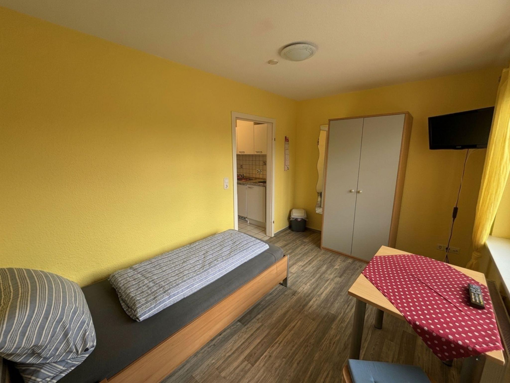 Das Apartment für eine Person verfügt über ein Einzelbett, sowie weitere Sitzmöglichkeiten (z.B. Couch, Sessel), auf denen Sie es sich während Ihres Aufenthalts gemütlich machen können. Außerdem stehen Ihnen eine voll ausgestattete Küche und ein Voll- oder Duschbad zur Verfügung.