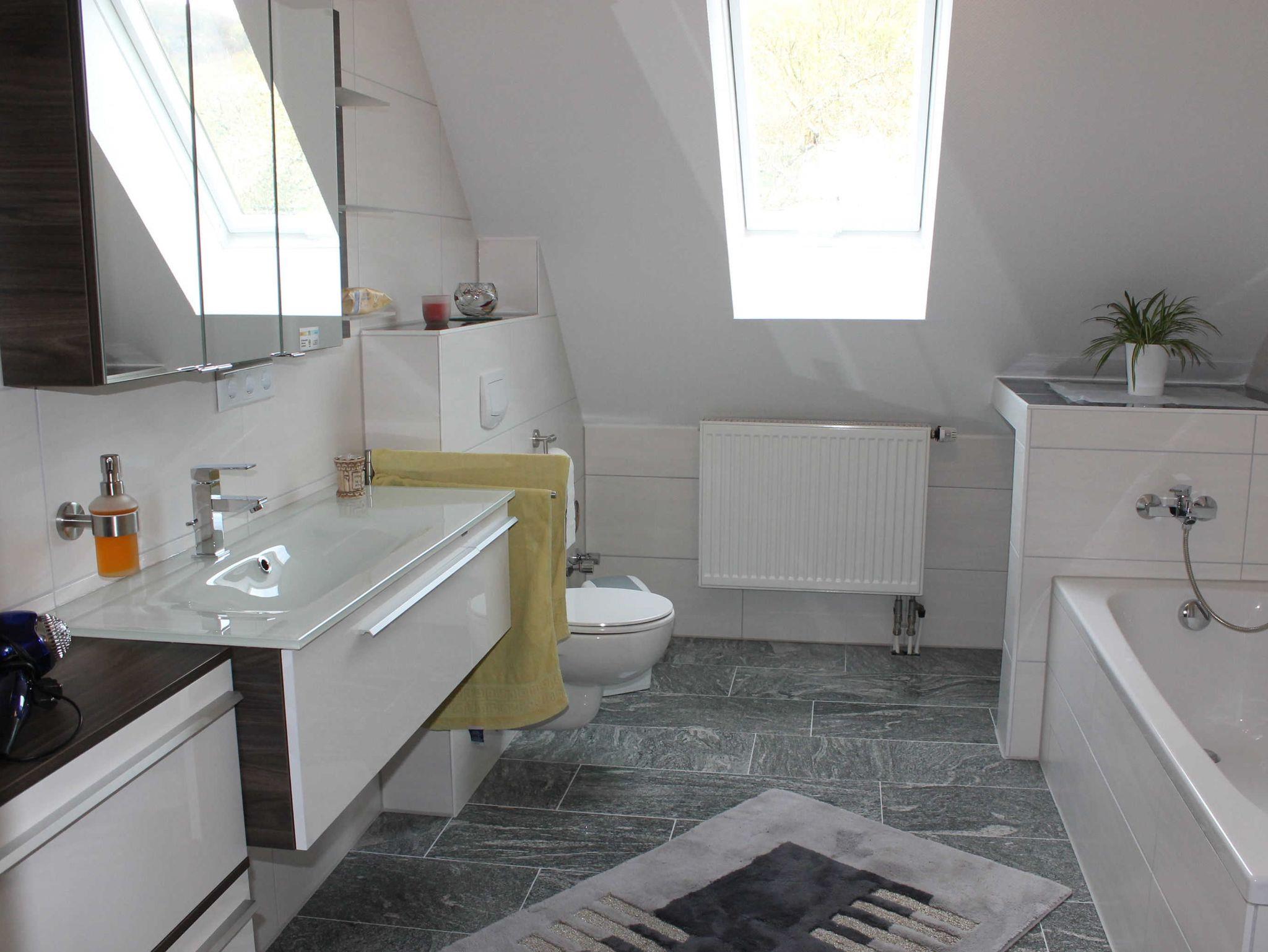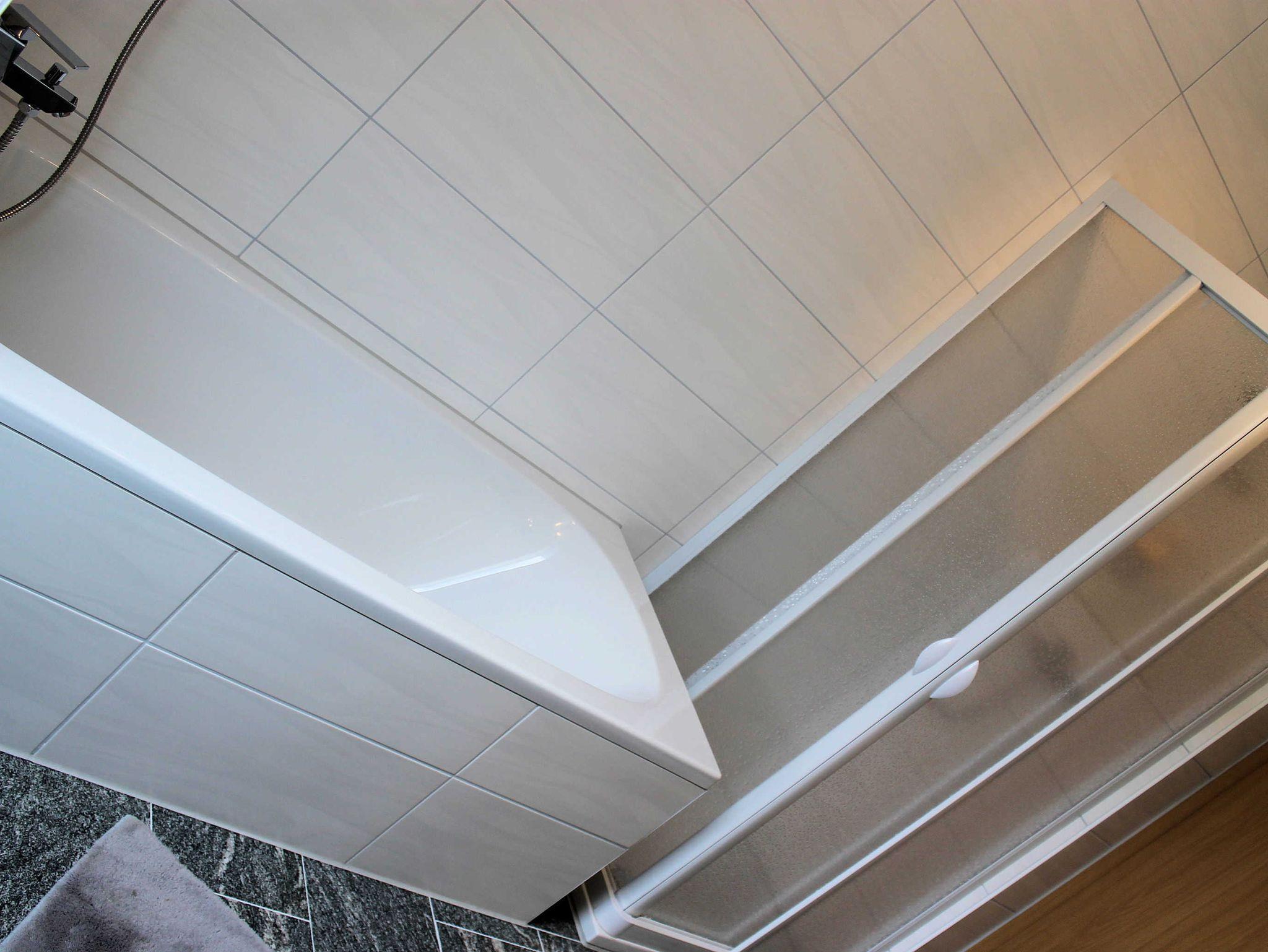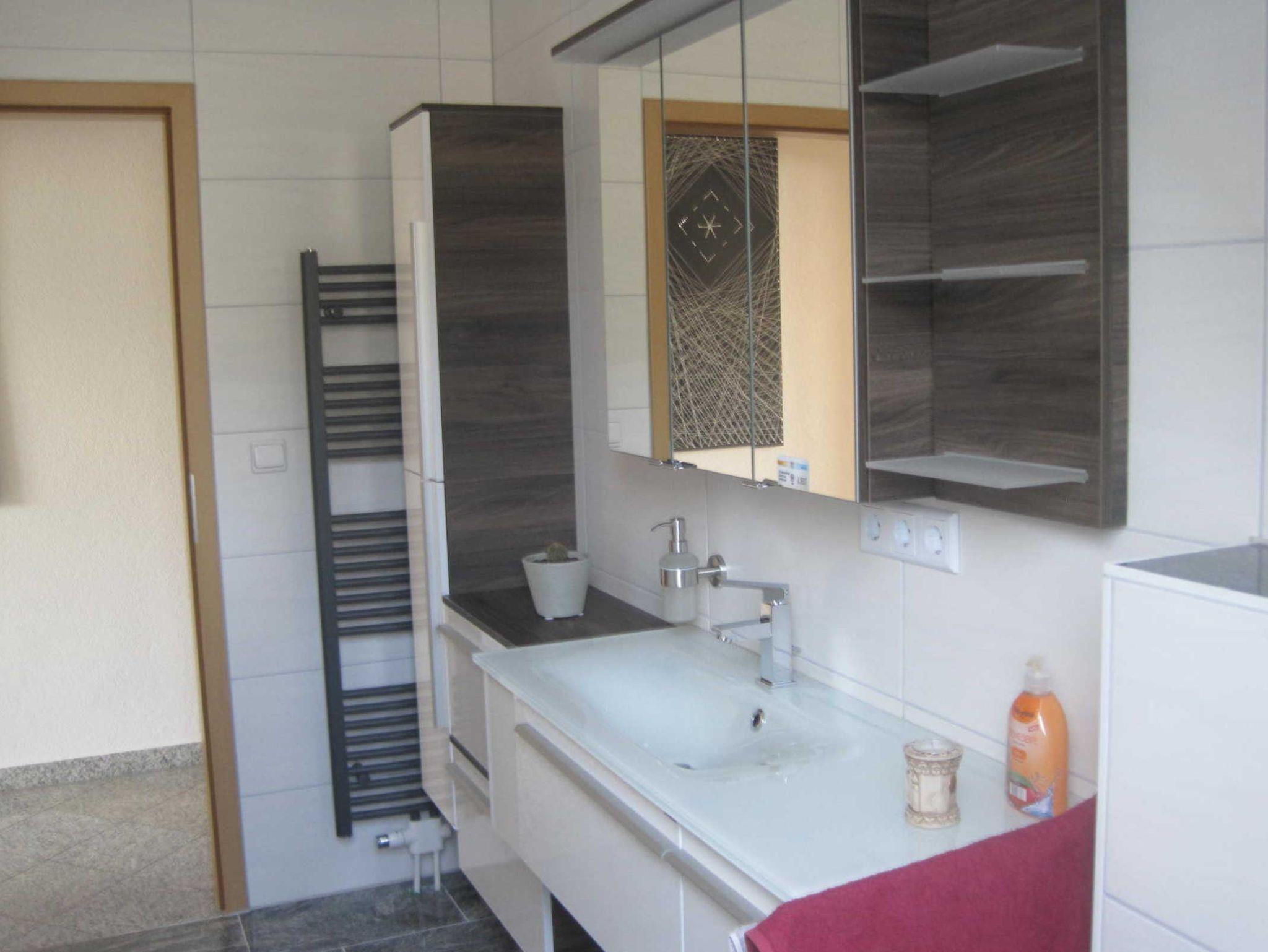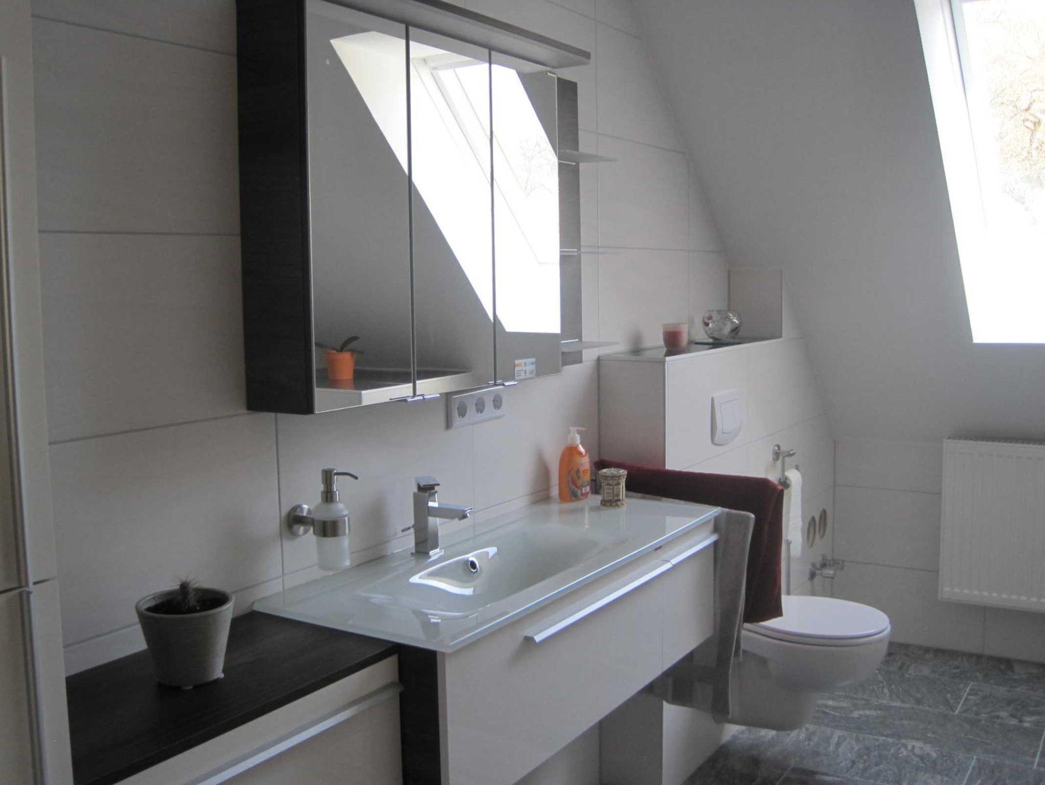 Im zweiten Schlafzimmer befindet sich ein Doppelbett, ein 140er Bett und ein Kinderbett. Die Fewo verfügt über ein Badezimmer mit Badewanne, Dusche und WC und ein separates WC mit Waschbecken und Waschmaschine.