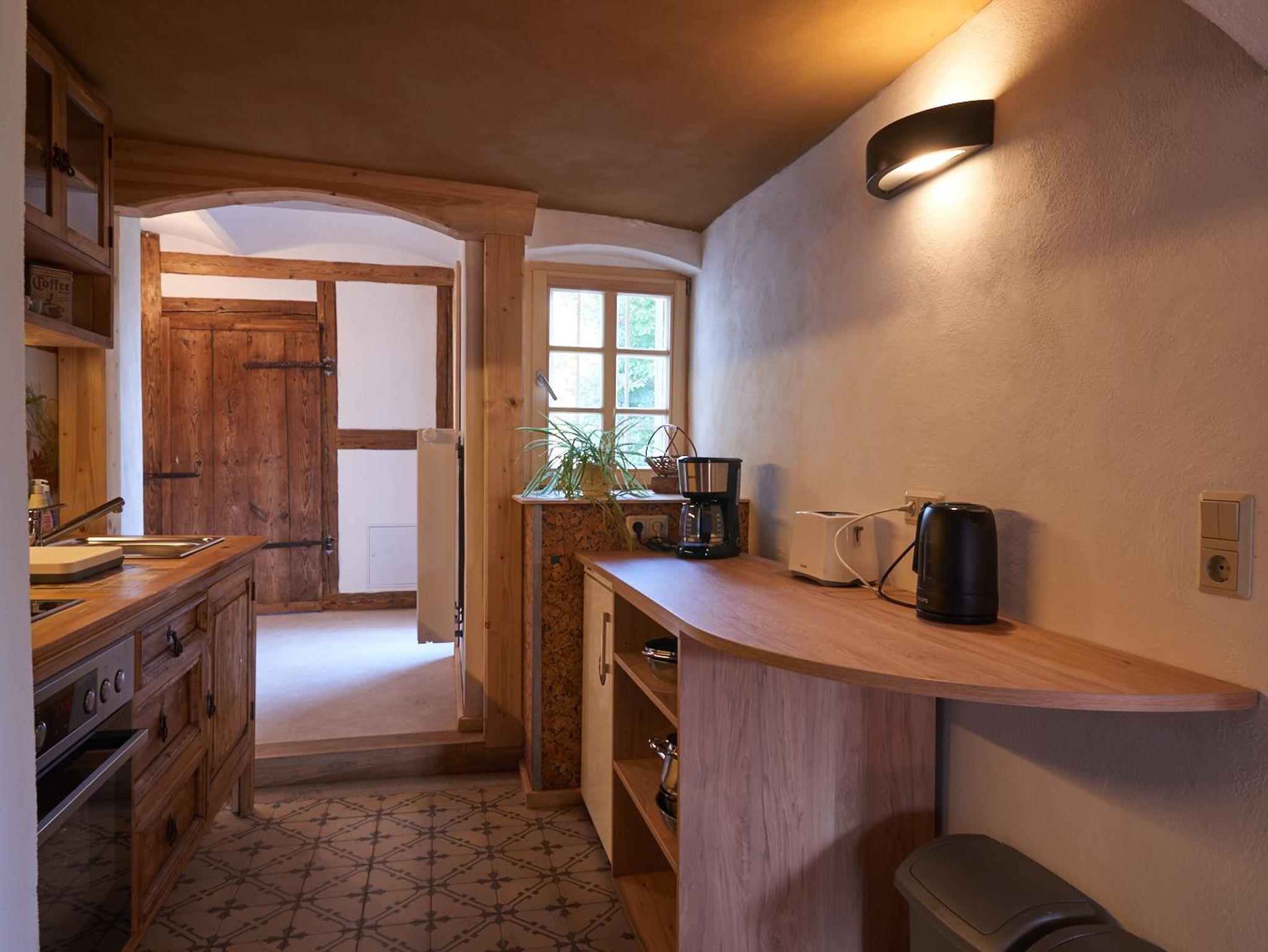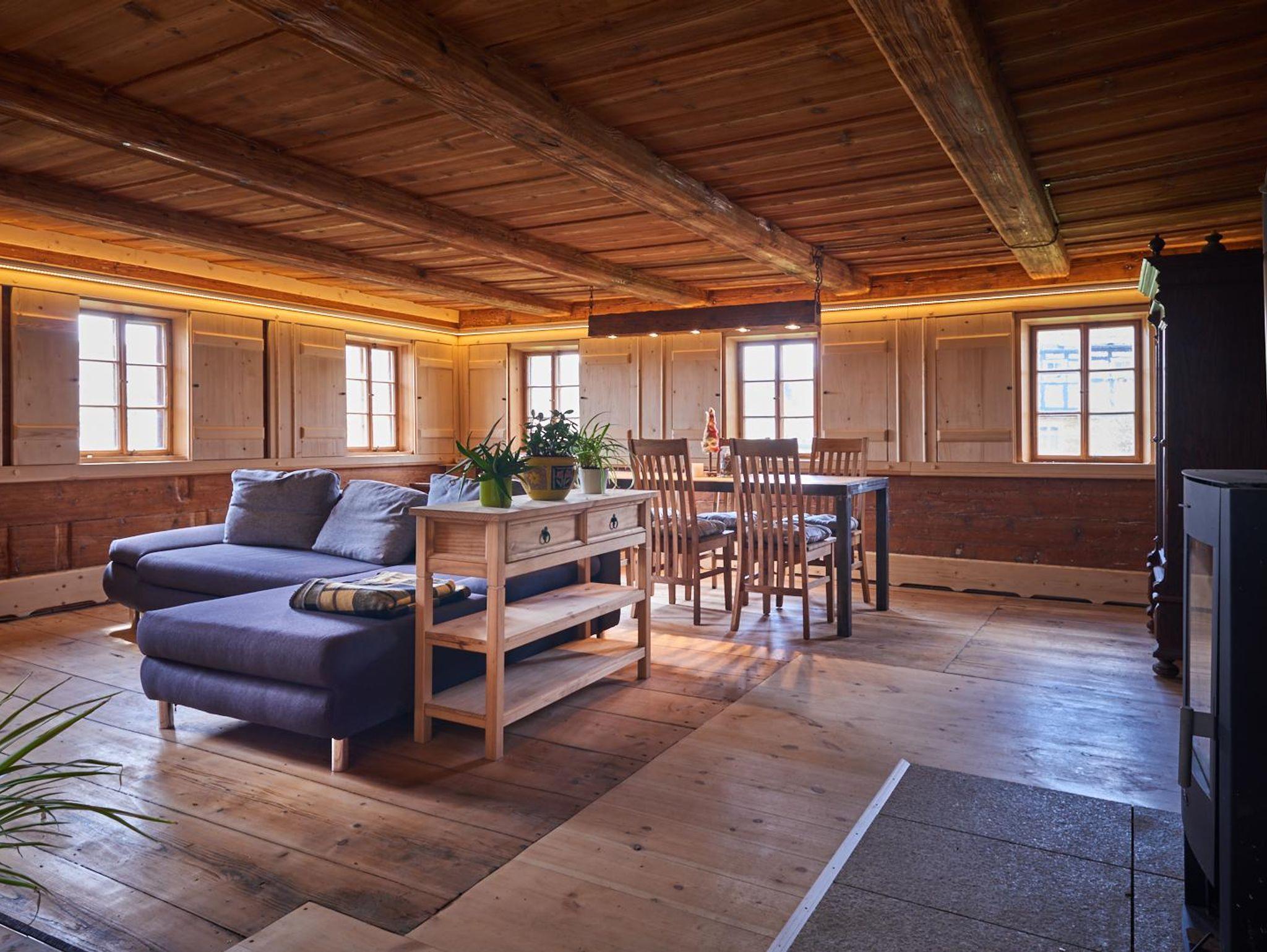 Die Ferienwohnung Hermann befindet sich im Erdgeschoss. Sie verfügt über eine Wohnstube (ehemalige Blockstube), Küche, Bad und Schlafzimmer. Sie ist geeignet für 4 Personen (2 Erwachsene +2 Kinder). Durch die Couch in der Stube ist es auch möglich, dass eine Aufbettung für zwei weitere Personen erfolgen kann.