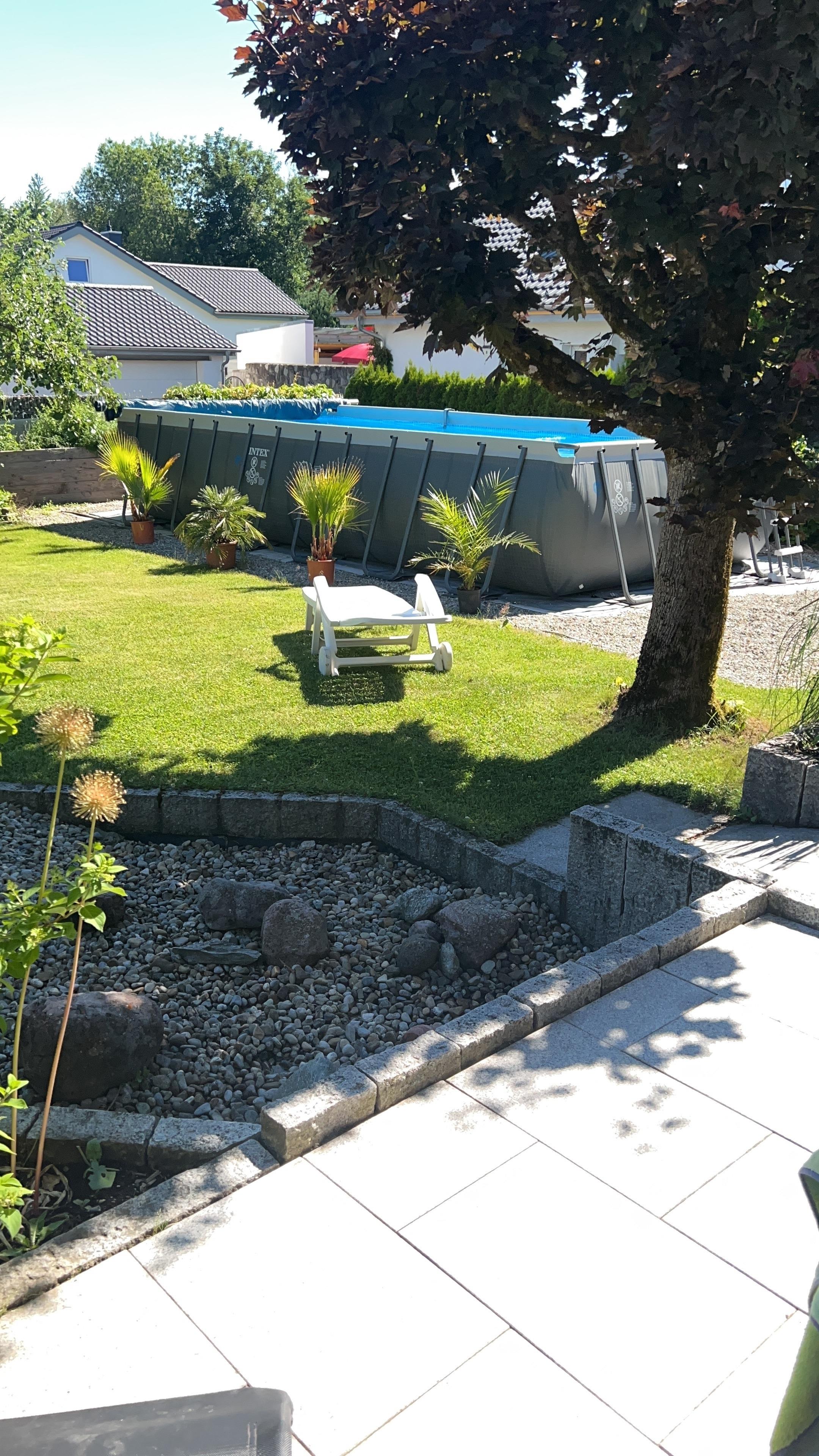 Der großzügige Garten mit Grillstelle und Pool lädt ein seine Seele baumeln zu lassen. Die Ferienwohnung ist puristisch ausgestattet mit allem was so braucht.