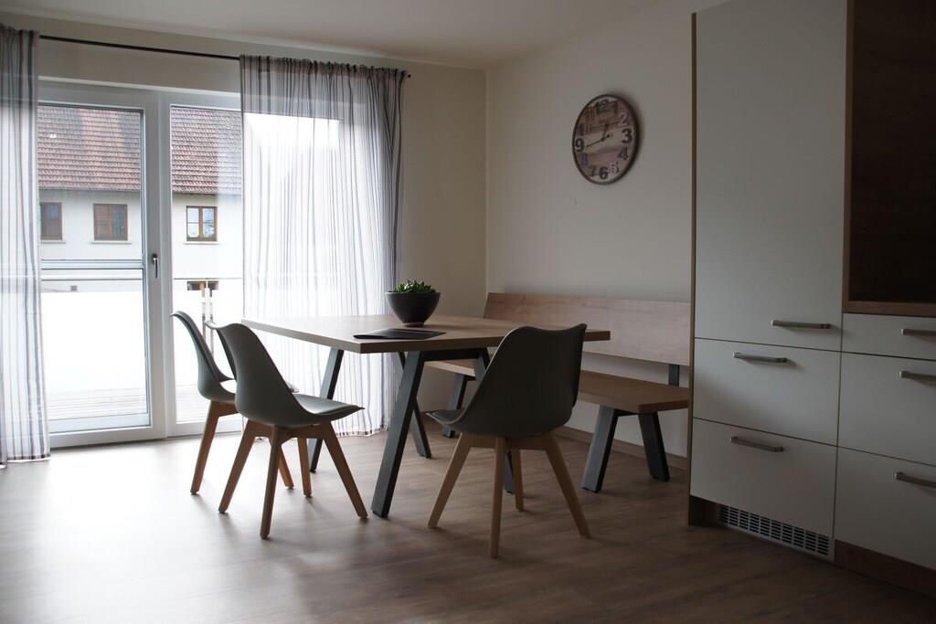 Die Ferienwohnung Weide im 1.OG hat 2 Schlafzimmer, Bad mit Badewanne und Dusche, extra WC mit Pissoir und einen großen Wohn- Essbereich mit Küche. 4 Betten und eine Couch (121x195m) finden Sie in den Schlafzimmern. Ein Babybett findet selbstverständlich auch im Schlafzimmer Platz. Der möblierte Balkon mit Tisch, 4 Stühlen und einem Sonnenschirm lädt zu gemütlichen Stunden im Freien ein. Trampolin, Tischtennisplatte, Schaukeln und diverse Fahrzeuge für Kinder finden Sie im Außenbereich. Bei schlechtem Wetter steht ein Tischkicker im Keller.