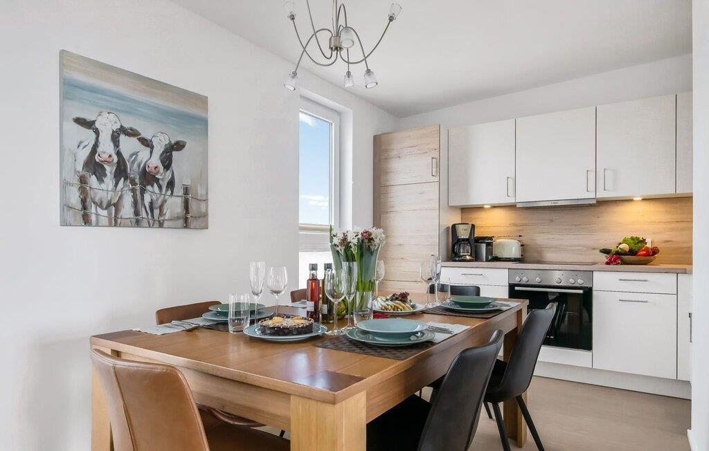 LICHTBLICK er en højkvalitets og stilfuldt indrettet maisonette ferielejlighed på 1. og 2. sal med direkte udsigt til de naturbeskyttede strandenge og marker. Et sandt paradis for hele familien. Sandstranden Weidefelder med kiosk, restaurant og strandstole ligger i gåafstand og er et attraktivt rejsemål på alle tider af året. Minigolfbanen med maritimt tema ligger også i umiddelbar nærhed og nydes af både unge og gamle. Når I træder ind i ferielejligheden på første sal, begynder jeres ferie fra allerførste øjeblik! I befinder jer direkte i lejlighedens afslapningsområde med i alt tre soveværelser. Her er noget for unge og gamle. Der er en rummelig dobbeltseng i det første og andet soveværelse. Det tredje soveværelse inviterer jer til at sove godt med to enkeltsenge. I dette rum vil selv de små gæster finde alt, hvad deres hjerter begærer. Fra børnebøger og legetøj til legemåtter. Så I kommer ikke til at kede jer selv i dårligt vejr! Der er også et fjernsyn i hvert soveværelse. Også på denne etage er det første af to badeværelser med bruser på gulvniveau og infrarød sauna. En oase af velvære, der sikrer afslapning i hver sæson. På anden sal finder I endnu et badeværelse med badekar, hvor I komfortabelt kan genoplade jeres batterier til den kommende dag. På denne etage lever LICHTBLICK op til sit navn. Her bliver I budt velkommen af vinduerne fra gulv til loft med den tilstødende terrasse og udsigt til de naturbeskyttede strandenge. Det lyse og indbydende opholdsområde gør en eller to hyggelige familieaftener mulige med hyggelig opholdsstue, fjernsyn og en fantastisk udsigt. Skulle vejret tage en drejning for den nordiske side, vil pejsen med sin knitrende ild give endnu mere komfort. Det åbne køkken er perfekt udstyret. At lave mad sammen er sjovt her! Så nyd de færdige lækkerier i en strandstol eller ved terrassebordet med et børnesæt eller start en hyggelig grillaften... Det er ren ferie. Den store terrasse vender mod sydvest og med udsigt til de naturfredede strandenge, marker og hav er solskinstimer uundgåelige. Foran ferielejligheden finder I jeres egen parkeringsplads. Vores yndlingssted: At nyde solen på terrassen med hele familien (og firbenede venner), en sand stråle af håb i en stresset hverdag. Bemærk venligst: OstseeResort Olpenitz er meget populært, og der bygges fortsat i parken. Ikke desto mindre kan I se frem til en 5-stjernet standard og et førsteklasses ophold. Byggeaktiviteterne kommer ikke til at forstyrre jer på ferien, og derfor gives der ikke yderligere afslag i prisen.