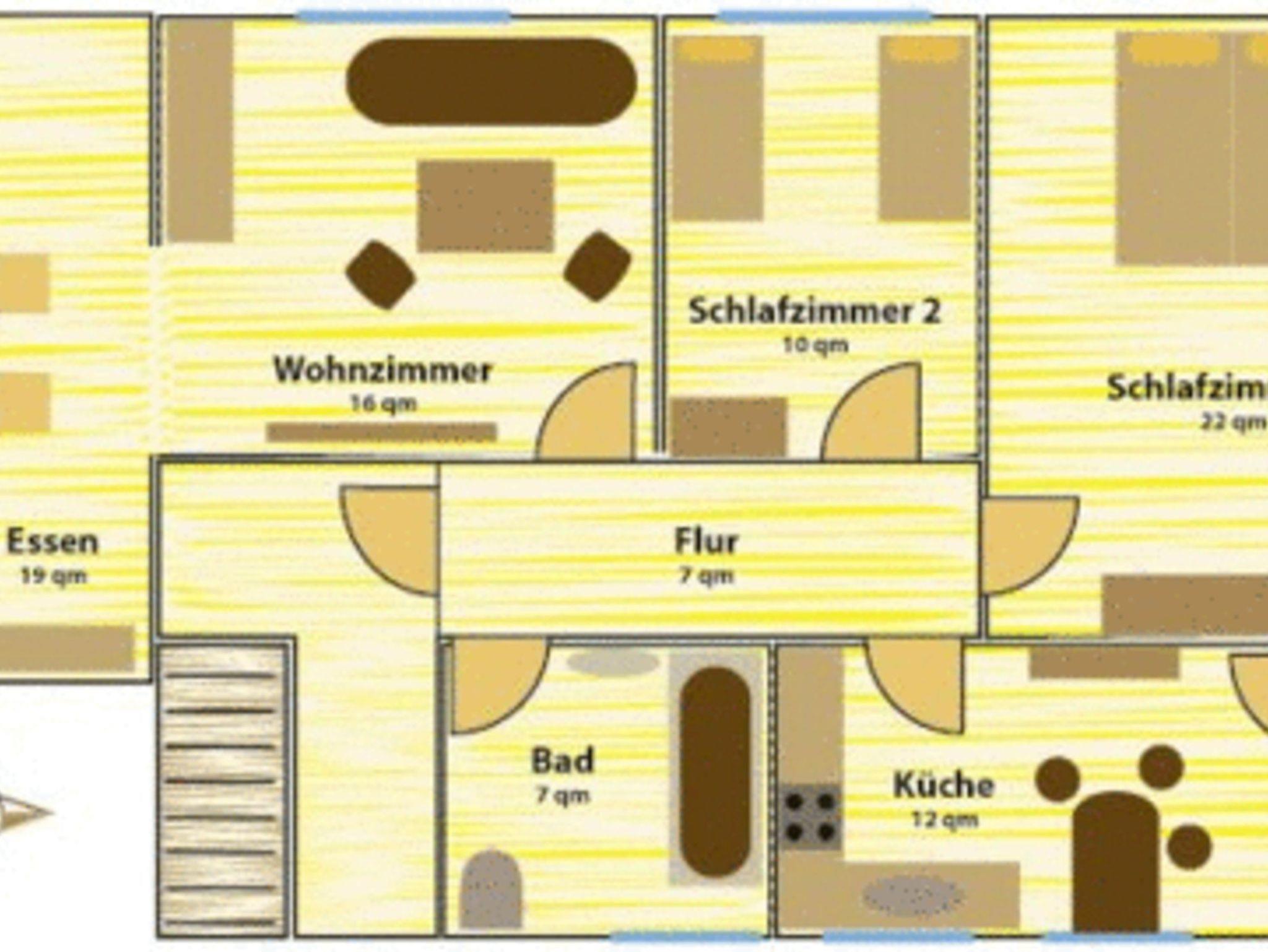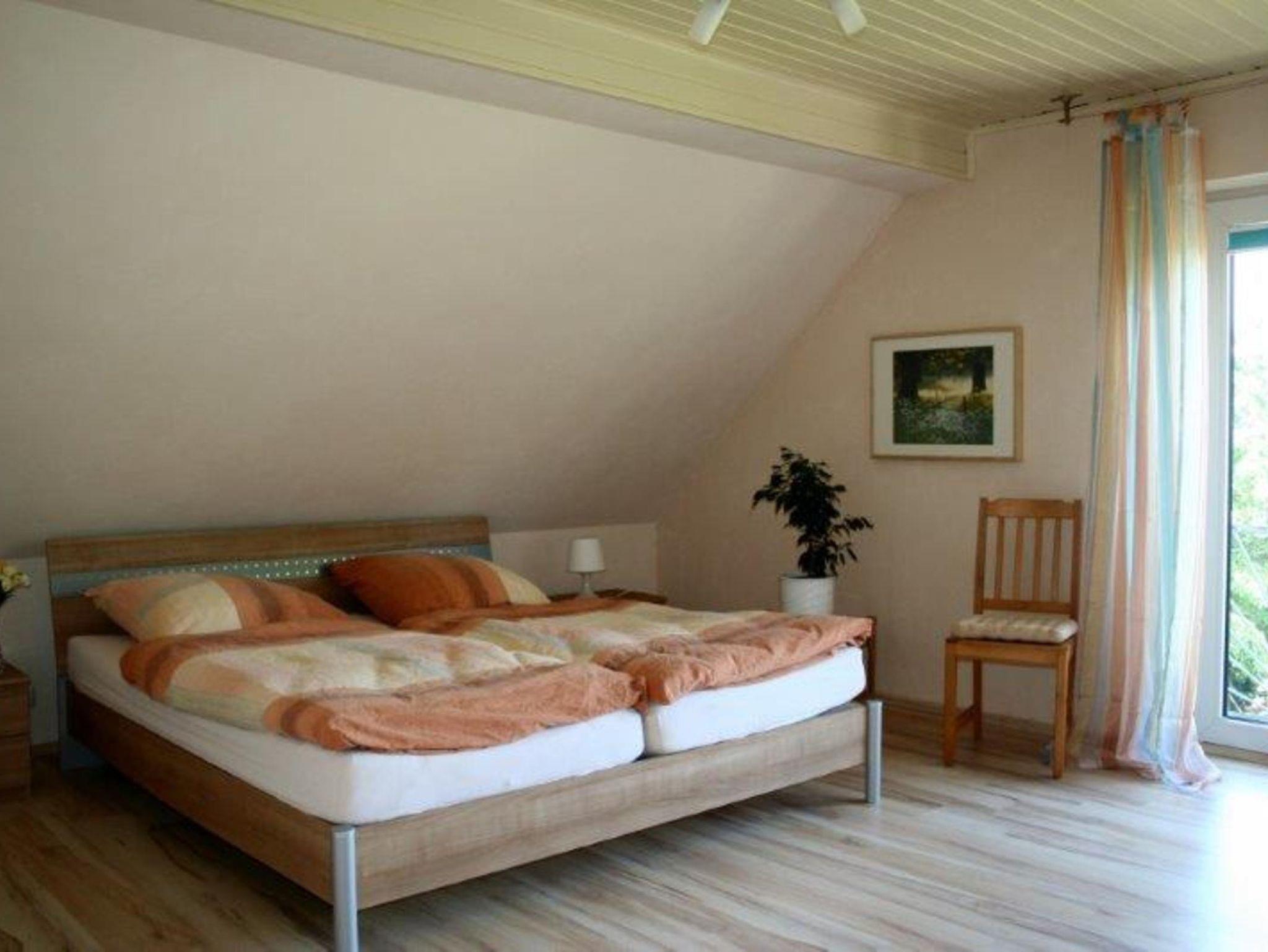 Unsere ganzjährig buchbare 96qm große Ferienwohnung bietet Platz für bis zu 4 Personen. Sie verfügt über ein großes Schlafzimmer mit Doppelbett und Radiowecker, sowie ein Schlafzimmer mit 2 Einzelbetten.