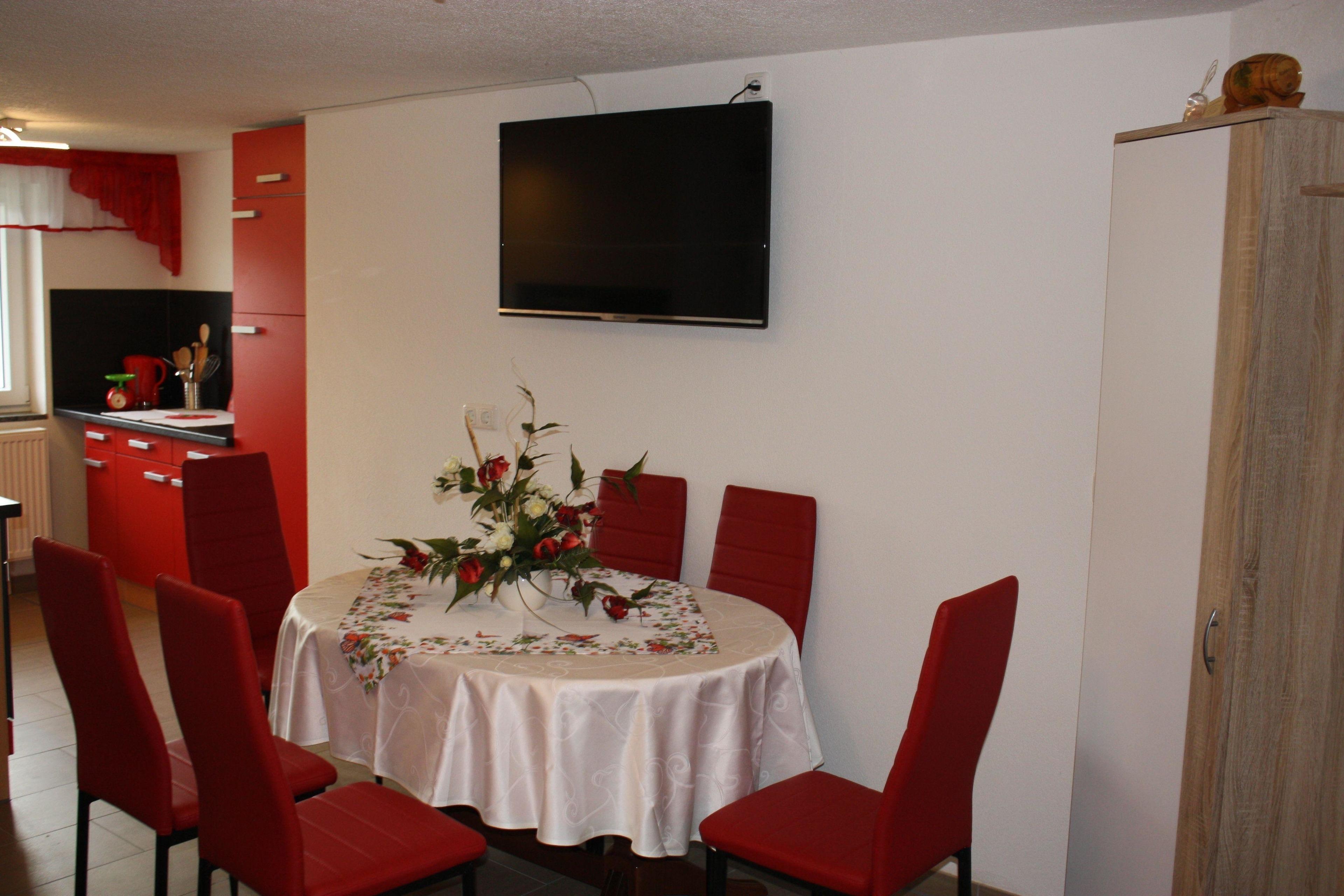 Eine hochwertige voll eingerichtete Wohn - Küche die komplett ausgestattet ist mit (4-Zonen Kochfeld, Backofen, Spülmaschine, Kühl-Gefrierkombination, Kaffeemaschine, Wasserkocher, Toaster, Eierkocher, Handmixer) Das Wohn- und Esszimmer ist mit einer gemütlichen Couch einem Essplatz für 6 Personen, einem Flachbild-Fernseher ausgestattet. Internet ist ebenfalls vorhanden.Das Bad, WC ist mit begehbarer Dusche ausgestattet.