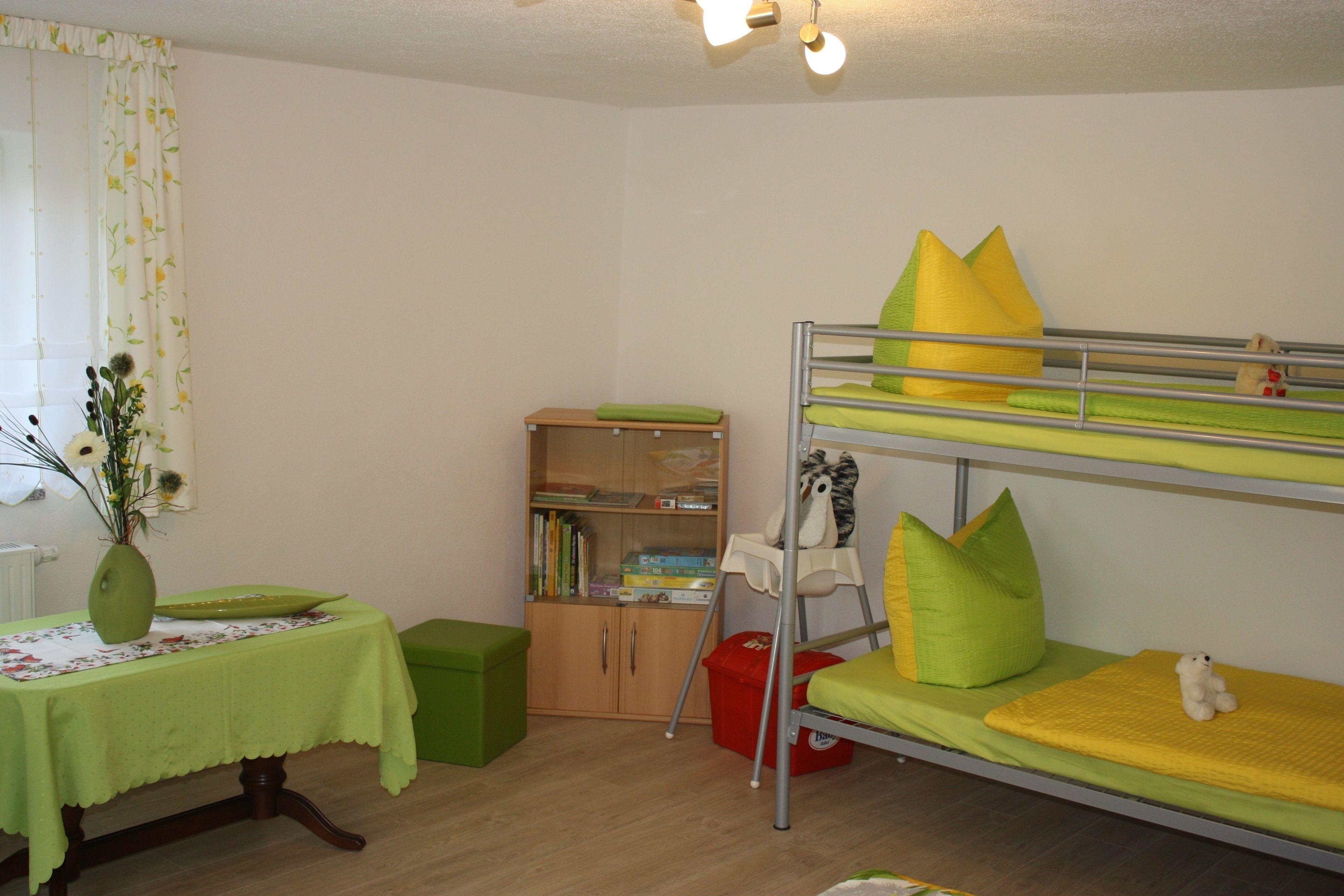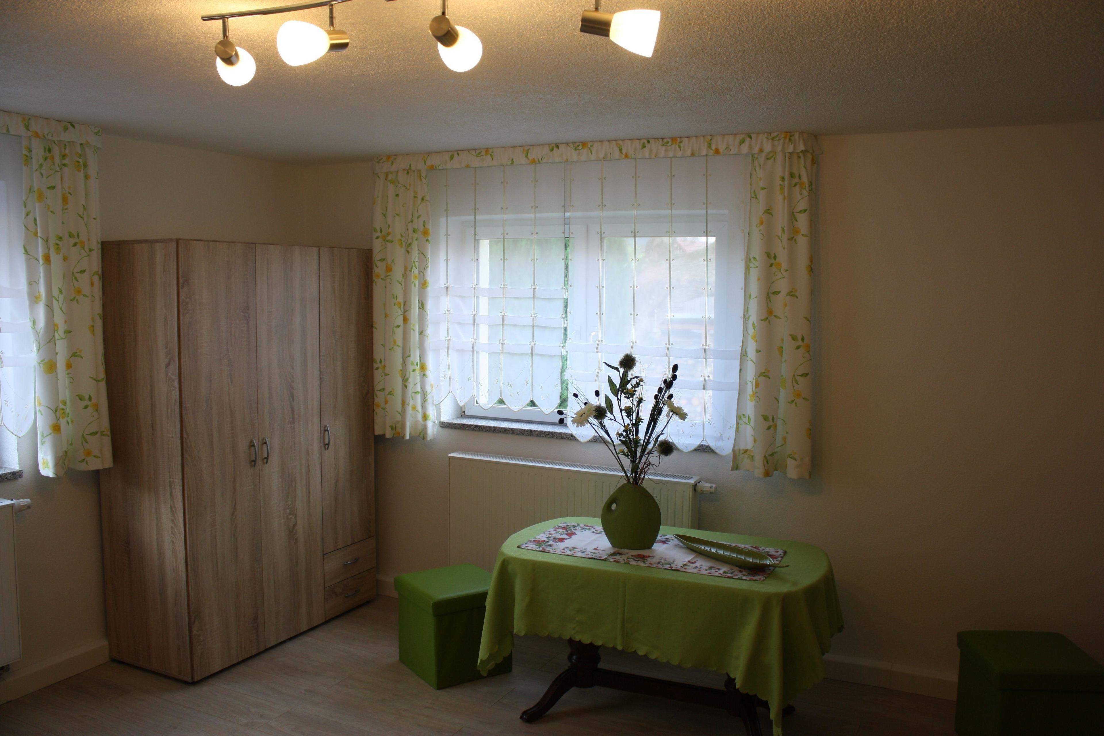 Unsere neue, helle im Erdgeschoss liegende Ferienwohnung in Lichtenhain bestehend aus 2 Schlafzimmern. Ein großes Schlafzimmer mit Doppelbett & Doppelstockbett für 4 Personen sowie einem großen Schrank. Ein weiteres separates Schlafzimmer mit Doppelbett und Schrank steht Ihnen für zwei Personen zur Verfügung.