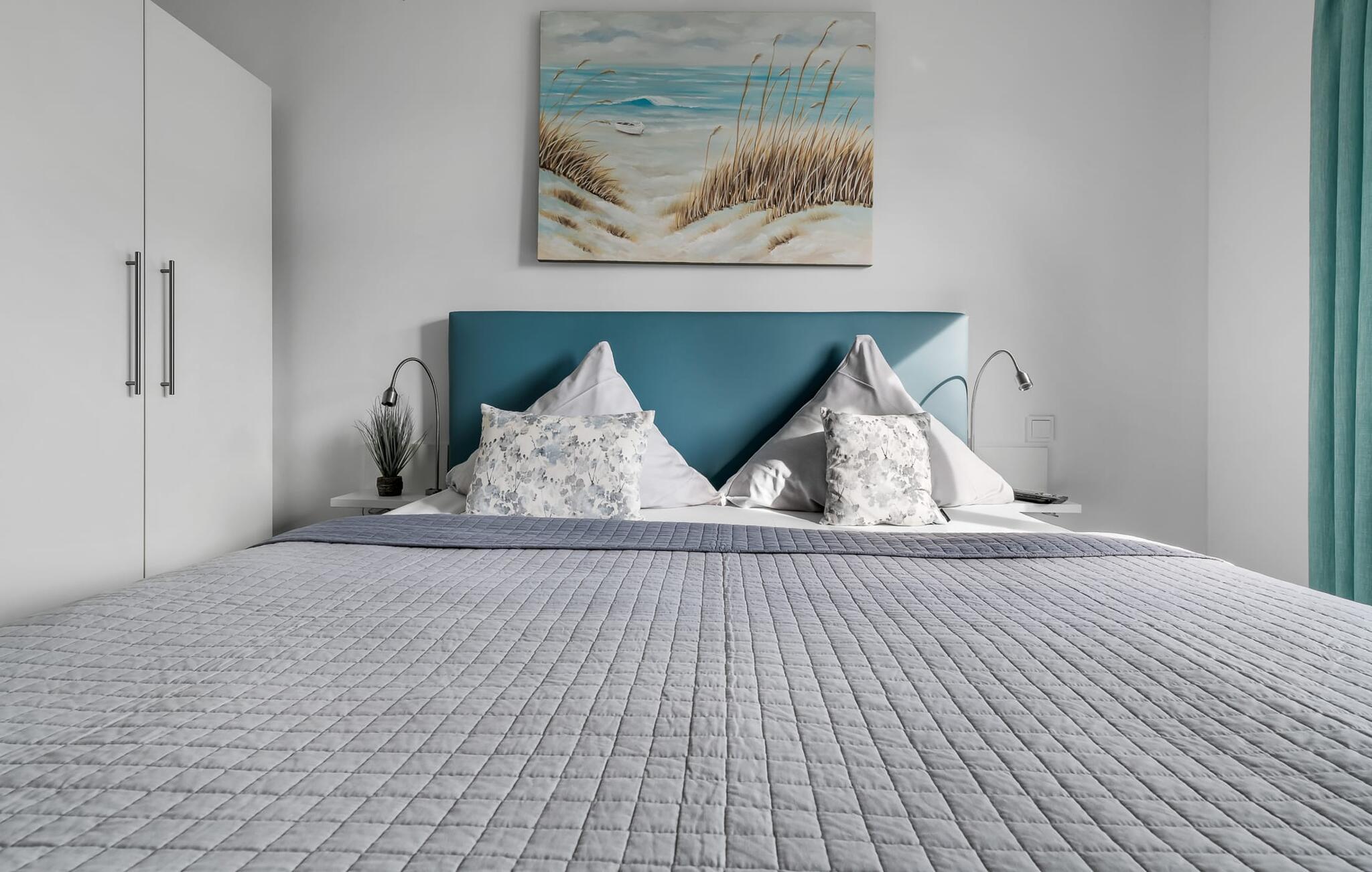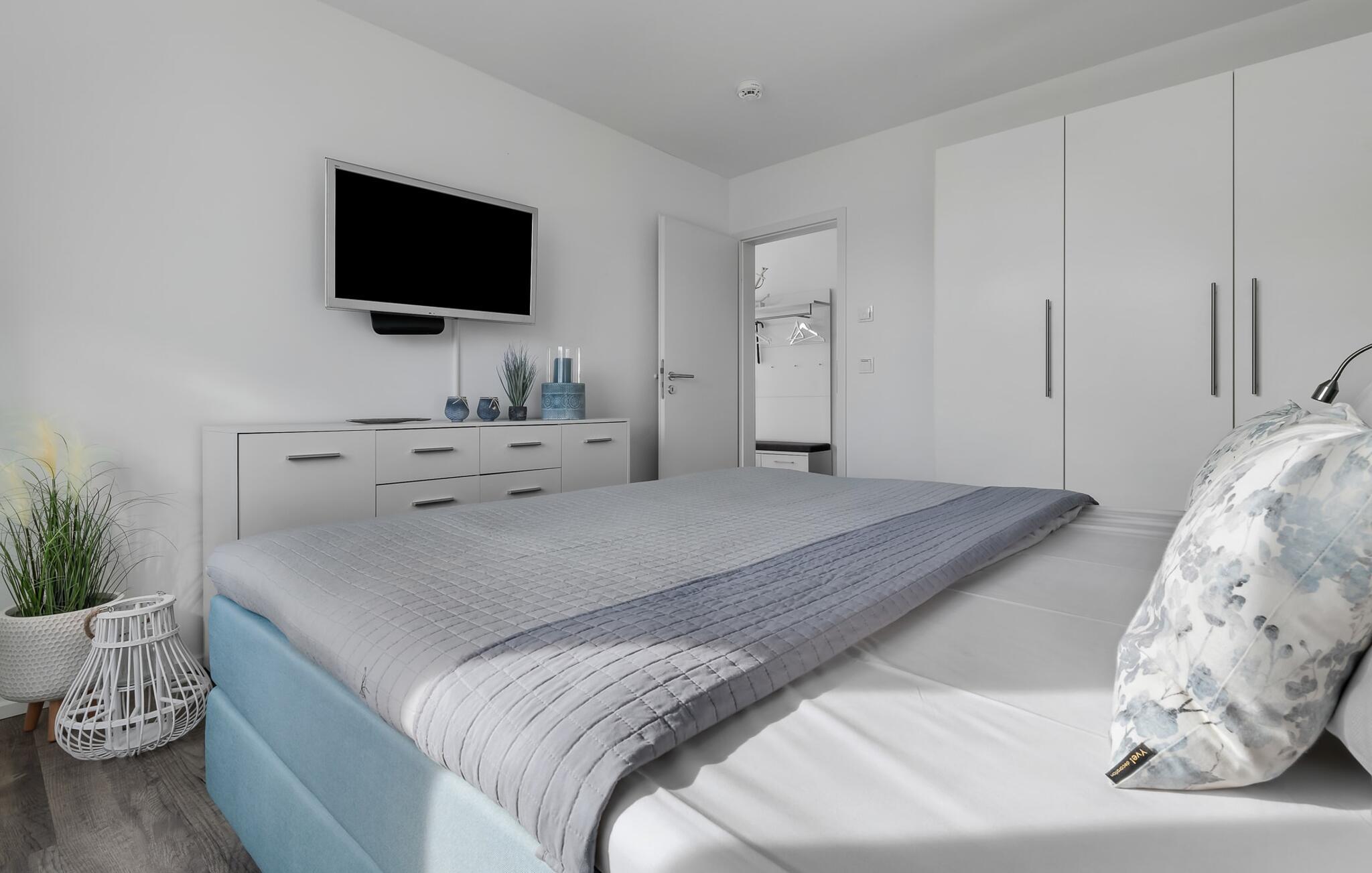 De to soveværelser, begge udstyret med et fjernsyn, kan I også slappe vidunderligt af i den komfortable boksmadrasser i soveværelset. I det andet soveværelse er der to bokse enkeltsenge. Begge værelser byder på masser af skabsplads.