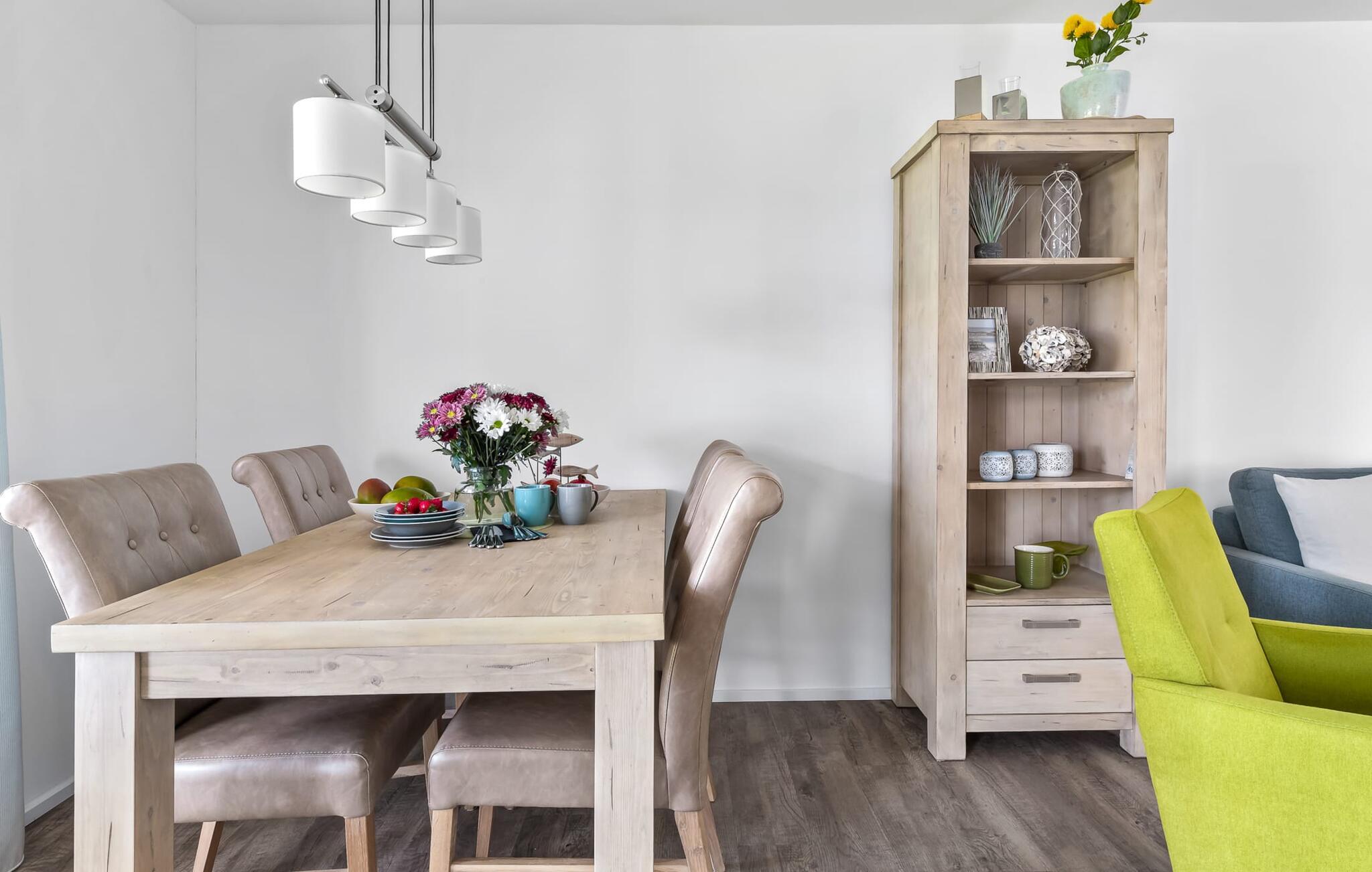 Det meget veludstyrede integrerede køkken med tilstødende terrasse gør madlavningen til en absolut fornøjelse. Alt efter vejret kan I så bestemme, om I vil spise i den moderne spiseplads eller udenfor. Sådan ser afslappende feriedage ud!