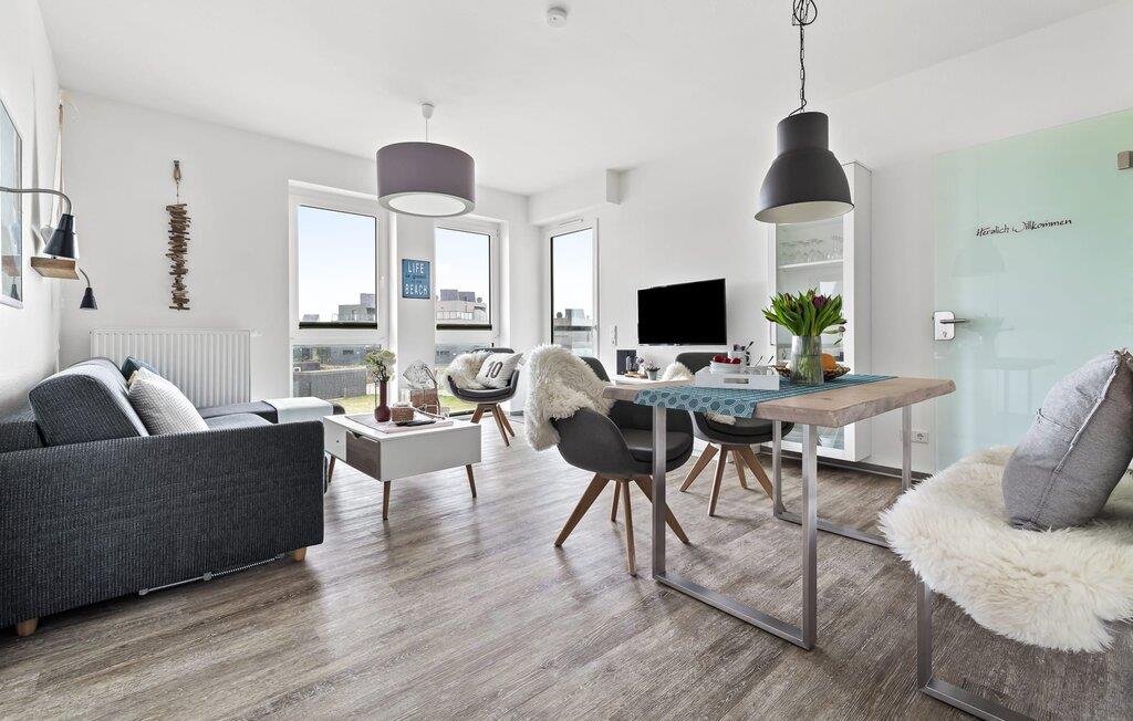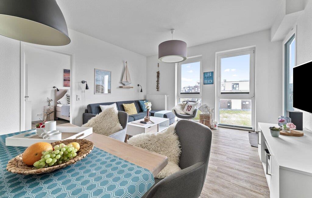 Midt i Østersøen finder I jeres ideelle tilflugtssted på et næs for at flygte fra hverdagen: Yndlingssted nr. 10. Denne eksklusive ferielejlighed ligger ved Østersøen i feriestedet Olpenitz ved Østersøen. Her, omgivet af blide bølger og den friske havbrise, åbner et betagende panorama sig foran jer. Yndlingssted nr. 10 byder på plads til op til seks personer og byder jer velkommen med to hyggelige soveværelser, udstyret med komfortable dobbelte boxmadrasser og smart-tv. Sofaen i stuen med en indbydende lang stol kan omdannes til en ekstra dobbeltseng, perfekt til afslappende nætter. Spisepladsen til seks personer i stuen skaber en harmonisk atmosfære til fælles måltider. Det fuldt udstyrede køkken, som forbinder problemfrit til opholds-/spiseområdet, inviterer jer til at fremtrylle kulinariske delikatesser. Fra hvert vindue kan I nyde den fascinerende udsigt over det omgivende vand. Loggiaen med sin charmerende hjørnebænk bliver et privat tilflugtssted for hyggelige morgener eller romantiske solnedgange for to. Et rigtigt højdepunkt og et naturligt skue. Lejligheden indeholder to badeværelser, begge med walk-in brusere, der tilbyder et ekstra strejf af luksus og komfort. Disse moderne og stilfulde badeværelser er perfekte oaser for afslapning og afrunder booplevelsen på favoritsted nr. 10 rabat. Til lejligheden hører en privat parkeringsplads, som giver jer frihed til at udforske det omkringliggende område fleksibelt. Cykelelskere har deres egen cykelkælder, inklusive gratis stikkontakter til e-cykler. Schlei/Østersøregionen tiltrækker med maleriske cykelstier, der er perfekte til lange ture i naturen. Fordyb jer i Østersøens verden, et sted, hvor hverdagen synker ned i bølgerne, og tiden ser ud til at stå stille. Oplev uforglemmelige øjeblikke og skab minder med hele familien. Vores favoritsted: På hjørnesædet på balkonen lige foran Østersøen, bedst med en kop kaffe i hånden. I kælderen er der vaskemaskine og tørretumbler til fælles brug. Betaling sker via en møntautomat. I sidebygningen af komplekset venter der gæsterne et eksklusivt pool- og wellnessområde, som naturligvis kan benyttes gratis. Dyk ned i det behageligt tempererede vand, og lad blikket glide ud over Østersøens vidder – en oplevelse for alle sanser. Velgørende saunature indbyder til ophold og giver jer dyb afslapning. Giv jer selv disse små pauser og læg hverdagens stress bag jer – til en ferie fuld af ro, nydelse og ny energi. Bemærk venligst: OstseeResort Olpenitz er meget populært, og der bygges fortsat i parken. Ikke desto mindre kan I se frem til en 5-stjernet standard og et førsteklasses ophold. Byggeaktiviteterne kommer ikke til at forstyrre jer på ferien, og derfor gives der ikke yderligere afslag i prisen.