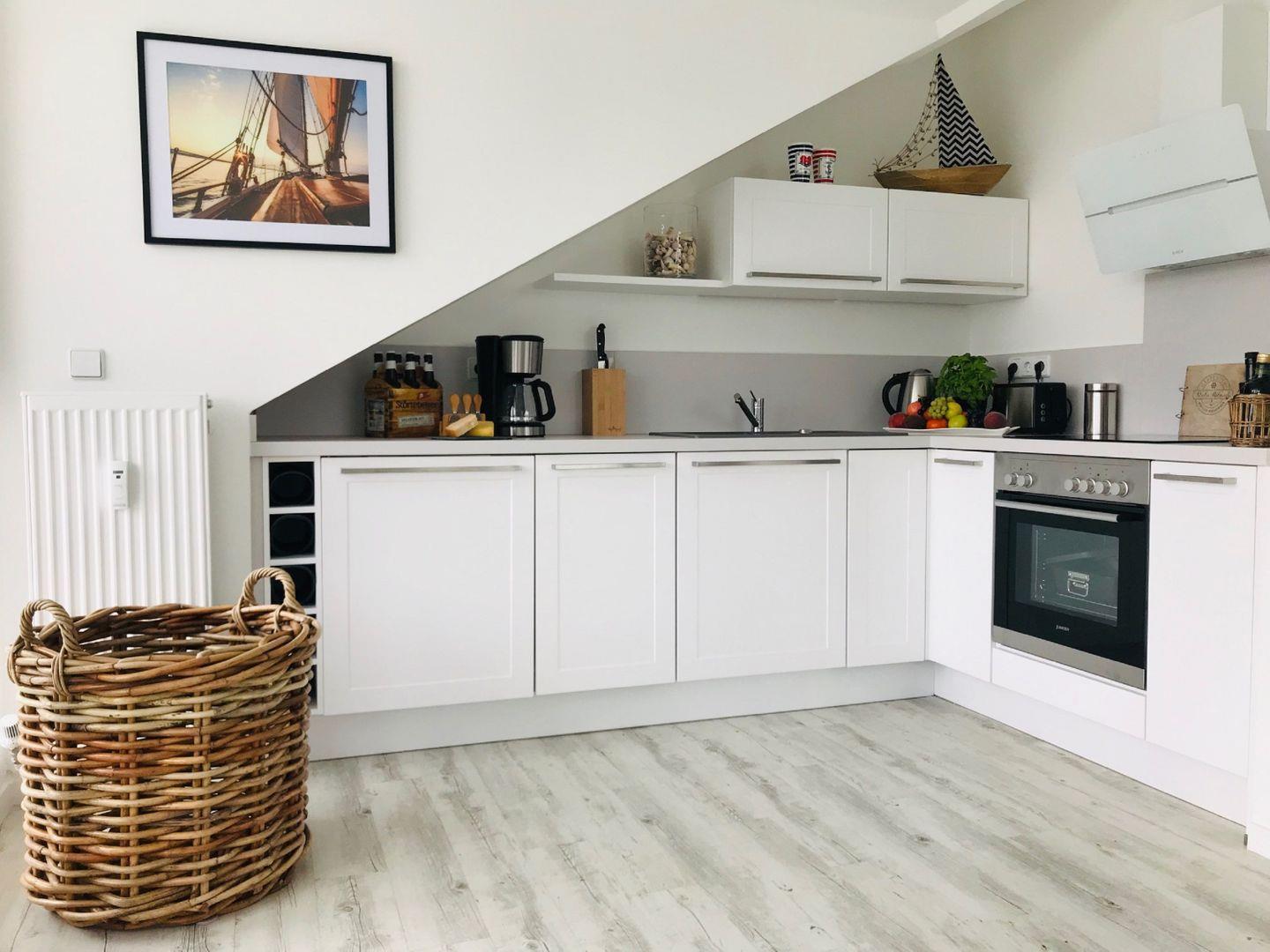 KÜCHE // Küchenzeile, Cerankochfeld (4-Platten), Spülmaschine, Kühlschrank mit Gefrierfach, Backofen, Toaster, Wasserkocher, Nespresso-Kaffeemaschine, Kaffeemaschine, reichlich Besteck, Geschirr und Küchenutensilien ++