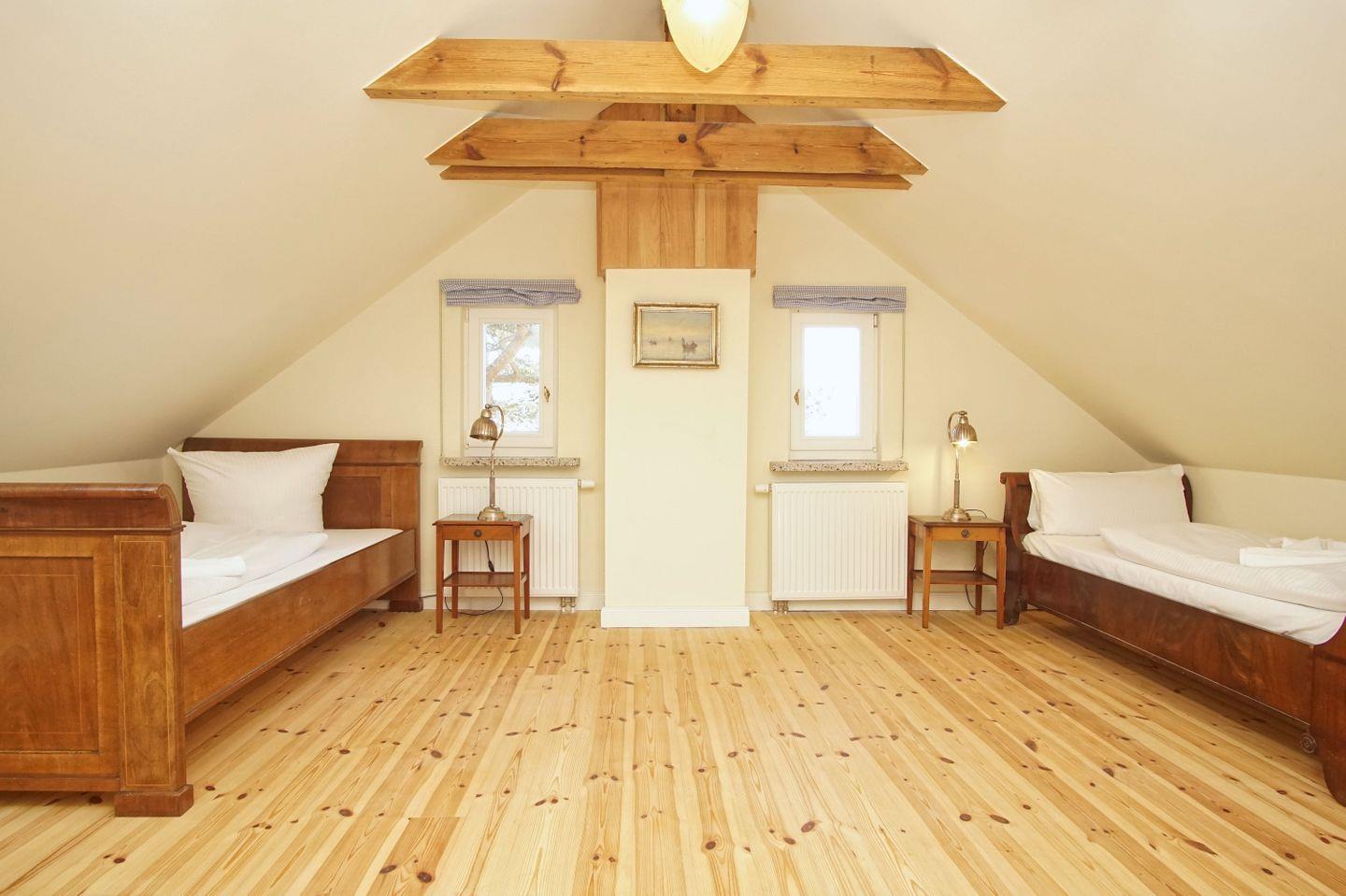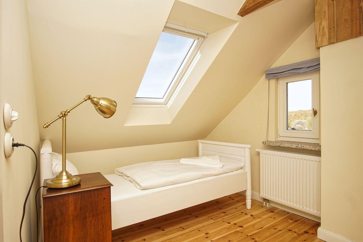 SCHLAFEN // ein Schlafzimmer im OG mit bequemem Doppelbett, Kleiderschrank, Meerblick, zwei Schlafzimmer im DG mit jeweils zwei Einzelbetten, Kleiderschrank und Meerblick ++