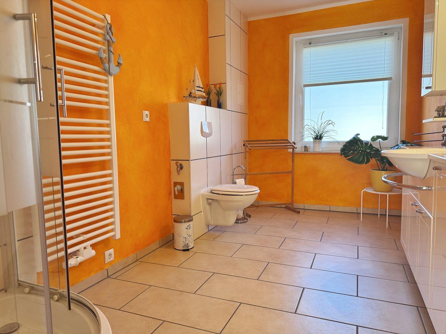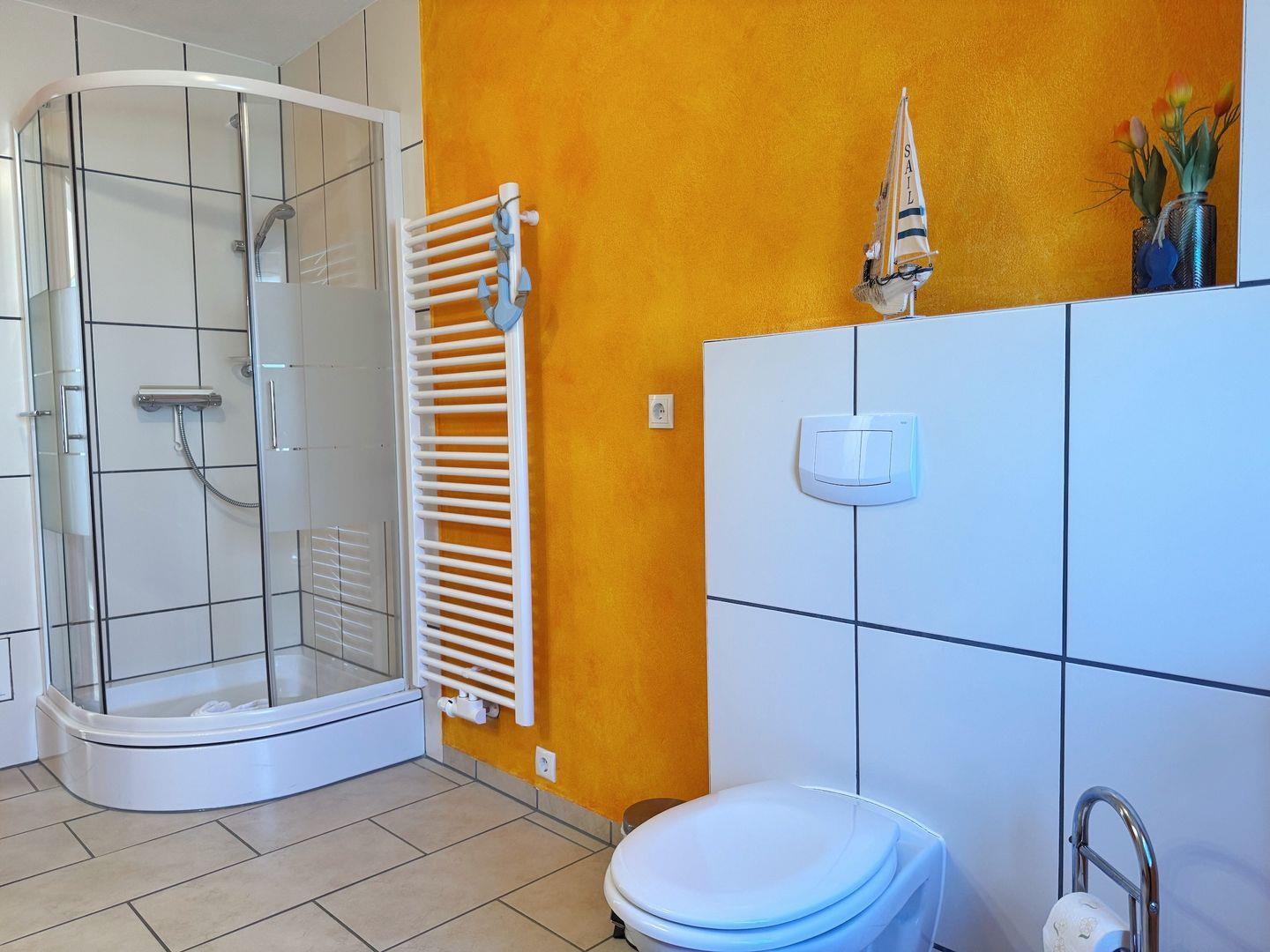 Badezimmer: Dusche, WC, Waschbecken