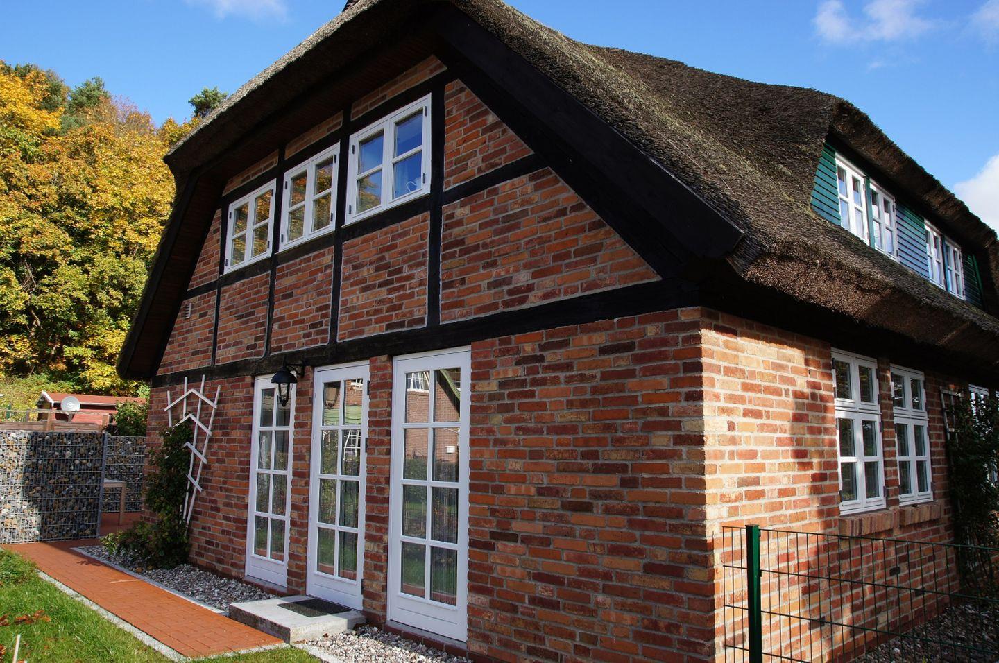 Mit viel Liebe zum Detail entstand das reetgedeckte Haus Ruge in Lietzow auf Rügen. Auf 160 Quadratmetern Wohnfläche verbindet es großzügigen Komfort mit einer einmaligen Lage zwischen dem Kleinen und dem Großen Jasmunder Bodden. Für den Neubau wurden die über 300 Jahre alten Klinker des Vorgängerhauses wiederverwendet – so bleibt ein Stück Geschichte erhalten und verleiht dem Haus seinen unverwechselbaren Charakter. Auch die klassischen Sprossenfenster mit Sturmhaken, die traditionell nach außen öffnen, greifen die historische Bauweise Rügens auf. Das rund 500 Quadratmeter große Grundstück bietet Gästen Ruhe, Rückzug und unmittelbare Nähe zur Natur.