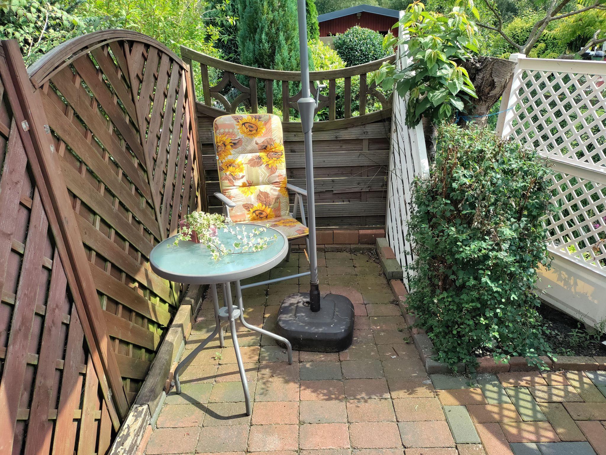 Herzlich willkommen im Apartment Sabine. Das Apartment liegt am Ortsausgang Lilienthal Richtung Worpswede, direkt am Golfplatz. Es hat einen separaten Eingang und verfügt über einen Wohnraum mit Einbauküche, Essplatz und Schlafcouch. Auf dem Flur steht ein weiteres Einzelbett, durch einen Vorhang abgetrennt, zur Verfügung. Ein Highlight ist der Wintergarten, über den man die Terrasse erreicht. Einen Parkplatz gibt es direkt vor dem Haus.