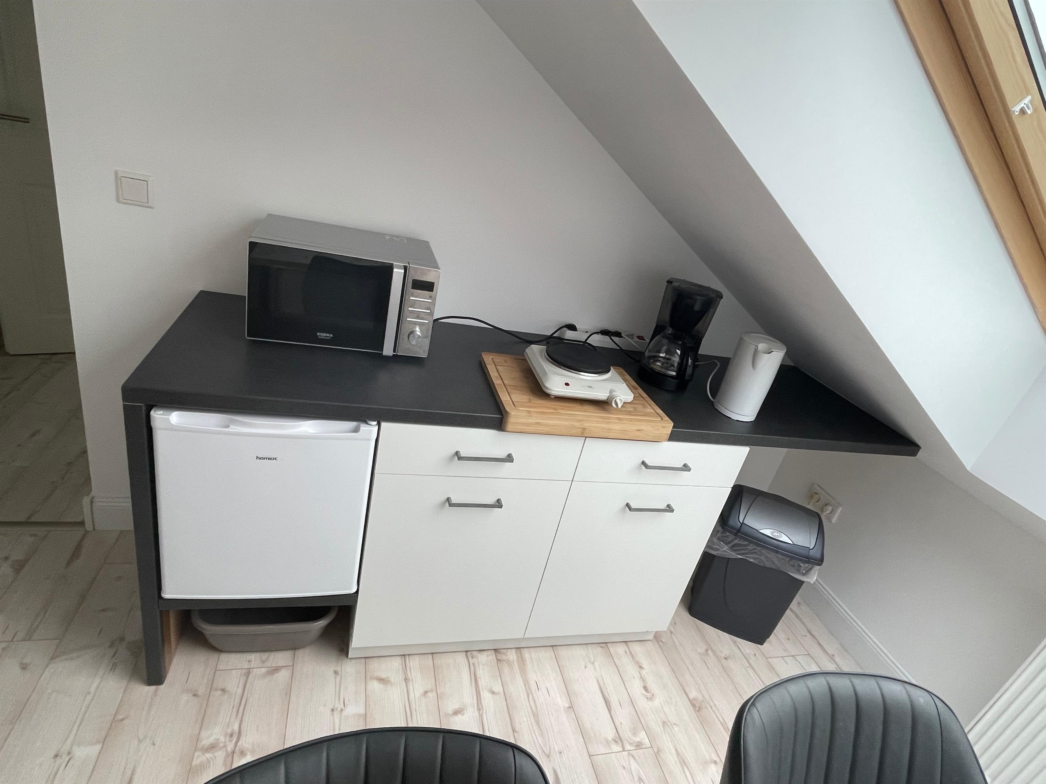 eine Küche ist leider nicht vorhanden, Smart TV, W-Lan, Kaffeemaschine, Wasserkocher, Kühlschrank, Wein und Sektgläser,