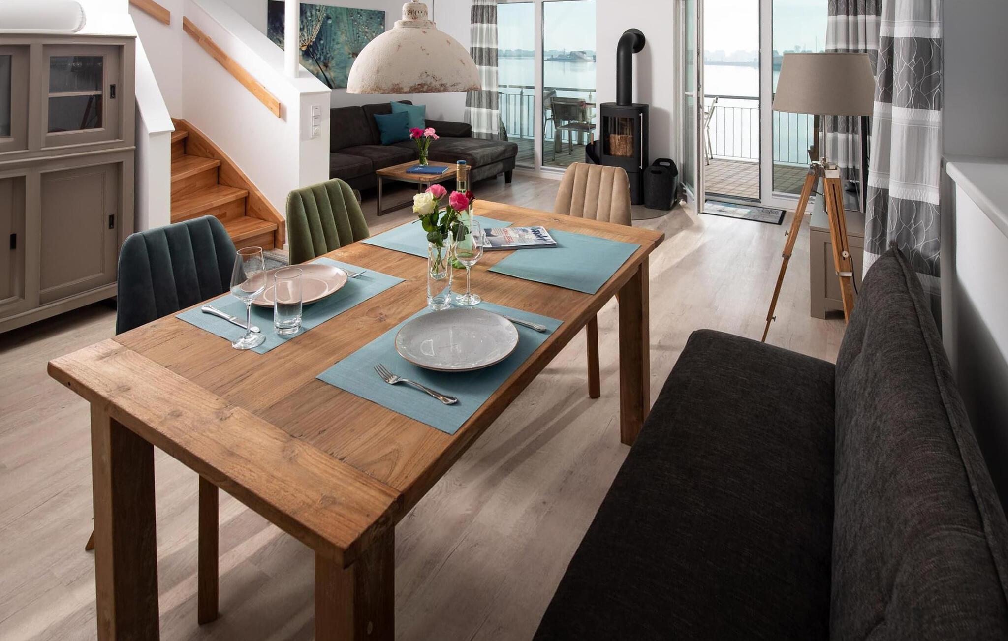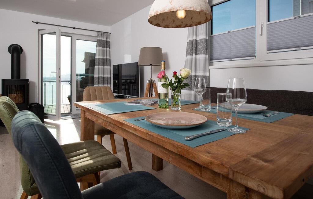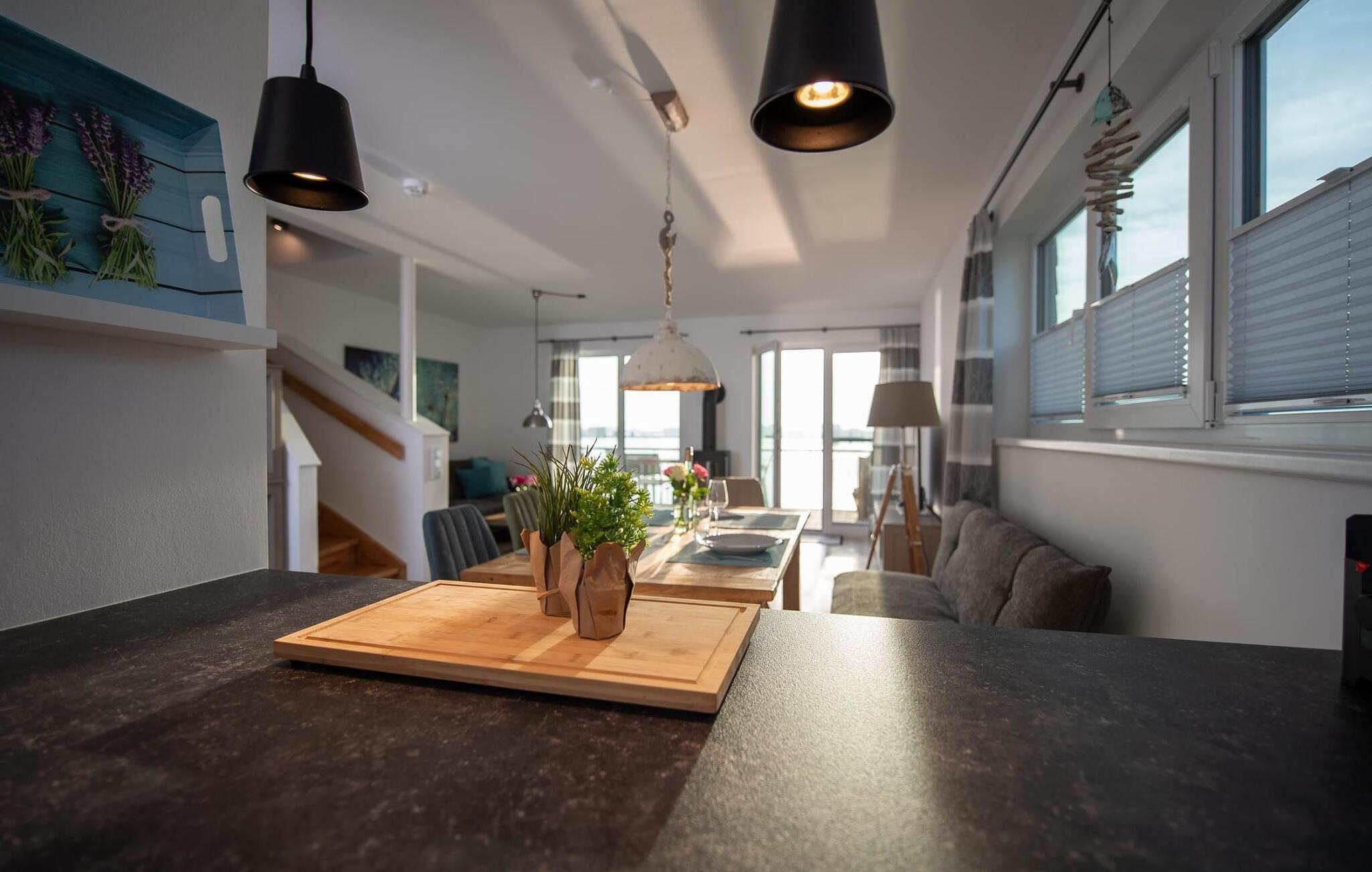 Lillehuus imponerer med sin all-round vandbeliggenhed, for med østersøfjorden Slien på den ene side og sejl- og sportsbådshavnen i Baltic Sea Resort Olpenitz på den anden, ligger feriehuset på et smalt næs omgivet af vand . Havnepromenaden med supermarked og bistro samt restaurant kan også nås til fods på få minutter. Indrettet i moderne landstedsstil med vintage-accenter, er det garanteret at ankomme og føle sig godt til det veludstyrede Lillehuus. Udsigten falder gennem gulv-til-loft panoramavinduesfronter på den smukke vandkulisse. På hvert niveau har Lillehuus en terrasse med udsigt over havnen, udstyret med terrassemøbler af høj kvalitet, en strandstol, et loungesæt og to hvilestole. Højdepunktet: den store 360° tagterrasse med sol hele dagen lang. Og hvis I leder efter en wellness-ferie, finder I den her. En lille finsk sauna og et afslappende spabad sikrer afslapning efter en lang gåtur på stranden. Den lyse stue og spisestue i åbent plan ligger i stueetagen af ferieejendommen. Herfra er der direkte adgang til den tilstødende terrasse. Om det er en fælles grillaften med Weber elgrill eller en hyggelig havnebiograf foran pejsen, så er det med garanti her. Køkkenet lader intet tilbage at ønske og er fuldt udstyret til at give fuld feriekomfort. Morgenmad på terrassen lige ved vandet med fantastiske solopgange - det er ferie! Hele huset er udstyret med gulvvarme. Finsk sauna, spabad og pejs lover komfort i hver sæson og gør Lillehuus rigtig hyggeligt, selv på dårlige nordiske vejrdage. Smart TV med Telekom Home Entertainment-programmet giver ekstra underholdning. I kan også nemt streame jeres yndlingsmusik via den. En højkvalitets DAB+ / internetradio sikrer ren lytteglæde. Feriehusets afslapningsområde er på første sal. Gæsterne kan falde i søvn i to soveværelser og vågne op til udsigten over vandet. Det store soveværelse vender ud mod havnen og er indrettet med dobbeltseng. Mens I nyder jeres morgenkaffe, kan I se sejlskibe sejle på den tilstødende terrasse. Det andet soveværelse har udsigt over østersøfjorden Slien og har to enkeltsenge, der kan skubbes sammen og et ekstra tv med hjemmeunderholdningsprogram. En komfortabel sovesofa tilbyder endnu en soveplads til én person. Også på dette niveau er det fuldt udstyret badeværelse med udsigt over vandet. Et brusebad i stueetagen giver ekstra komfort. Der er parkeringsplads og cykelskur lige foran huset. Vores favoritsted: Tilbered lækre feriesnacks i det veludstyrede køkken og nyd havnebiografen, som naturligvis serveres på terrassen lige ud til vandet. Bemærk venligst: OstseeResort Olpenitz er meget populært, og der bygges fortsat i parken. Ikke desto mindre kan I se frem til en 5-stjernet standard og et førsteklasses ophold. Byggeaktiviteterne kommer ikke til at forstyrre jer på ferien, og derfor gives der ikke yderligere afslag i prisen.