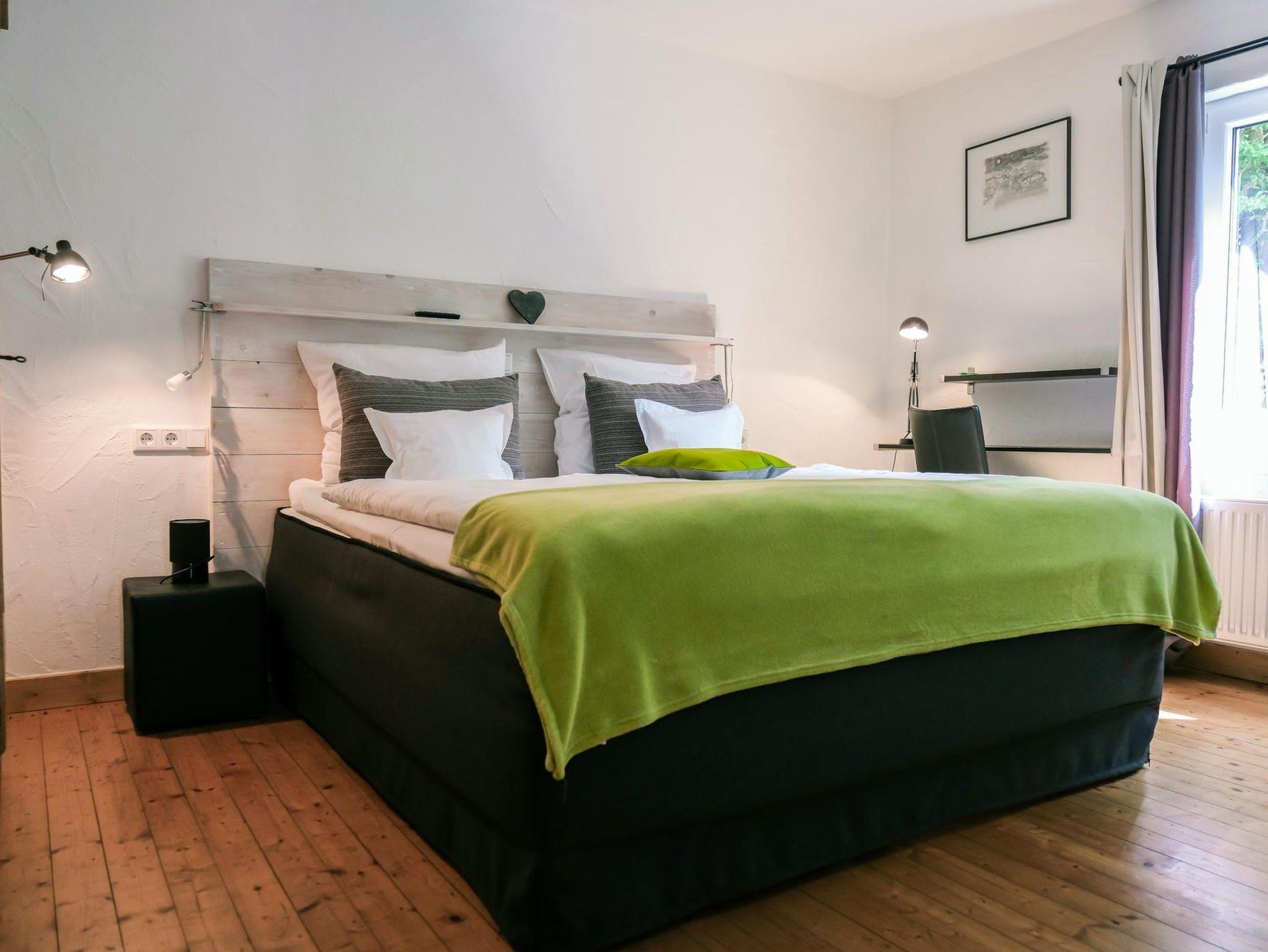4 Doppelzimmer mit Boxspringbetten 180x200cm und eigenem Badezimmer mit Dusche und WC, Flatscreen-TV und Radio.