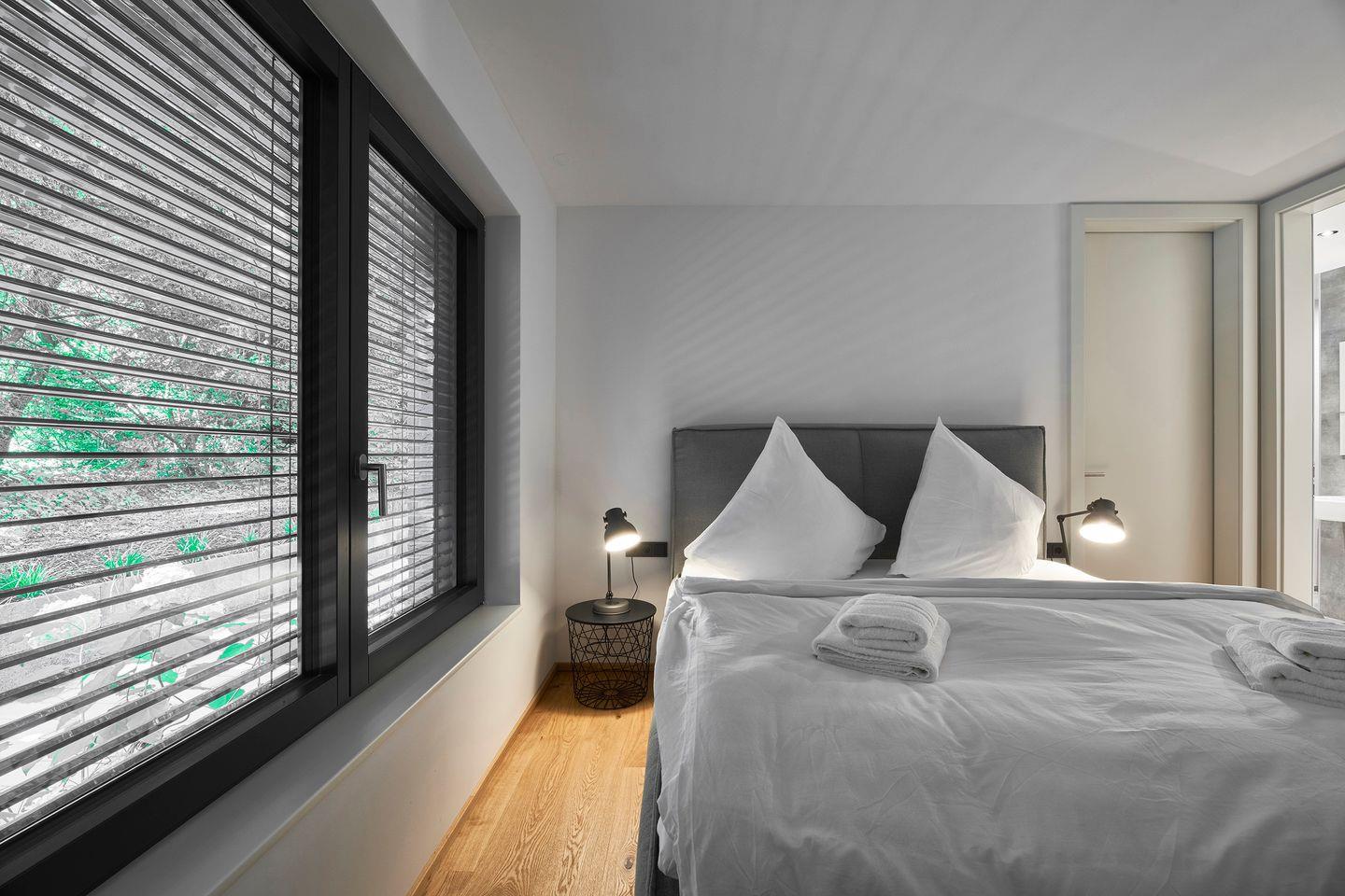 Die Inneneinrichtung präsentiert sich mit sorgfältig ausgewählten Möbeln und Dekorationselementen. Die Kombination aus hochwertiger Design-Ausstattung und exklusiver Einrichtung macht die Ferienwohnung zu einem Rückzugsort, der den Bedürfnissen von Paaren und Familien gerecht wird, ohne dabei auf Stil und Luxus zu verzichten. Annehmlichkeiten wie WLAN, Smart-TV, ein Safe und hochwertiger Eichenparkett mit Fußbodenheizung in den klimatisierten Räumen sorgen für Luxus und Komfort. Im separaten Hauswirtschaftsraum haben Sie Zugang zu einer Waschmaschine.