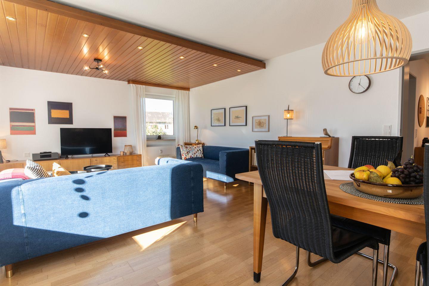 Zudem ist die Wohnung kinderfreundlich gestaltet, um den Kleinen einen angenehmen Aufenthalt zu ermöglichen. Die Verbindung von moderner Ausstattung, maritimen Akzenten und der Verwendung von Holz in der Ferienwohnung Seenah schafft eine einladende und behagliche Atmosphäre. Hier können Sie sich nach einem ereignisreichen Tag am Bodensee zurücklehnen, entspannen und den besondere Charme dieser liebevoll gestalteten Unterkunft genießen.