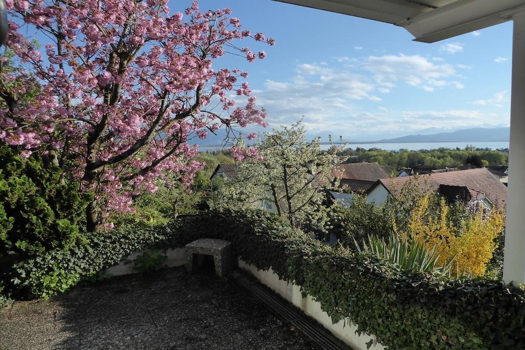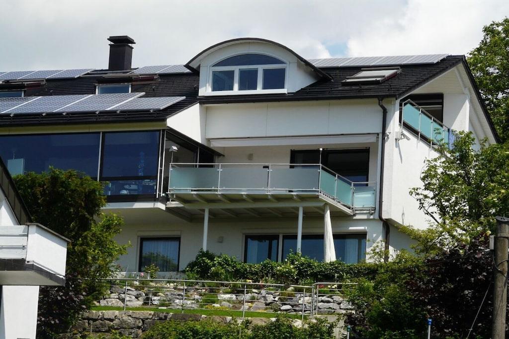 Quiet and luxurious vacation apartment, beautiful panoramic situation, lake and mountain view, 85m², big living room (35m²), roofed terrace.