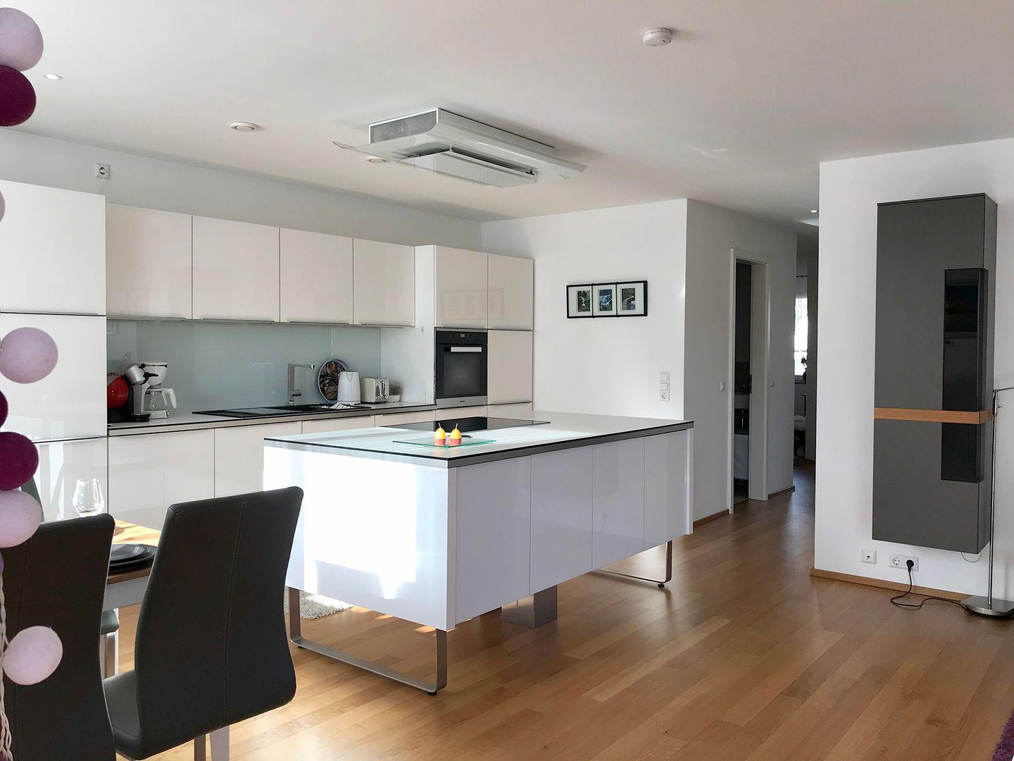 Die Ferienwohnung Central1st floor bietet auf 93 m² zwei Schlafzimmer, ein modernes Badezimmer mit bodengleicher Dusche und Badewanne sowie eine offene Küche mit Espressomaschine. Ausgestattet mit WLAN, Balkon, Fußbodenheizung und einem privaten Parkplatz in zentrumsnaher Lage am See in Lindau. Kinderfreundlich und allergikergeeignet.