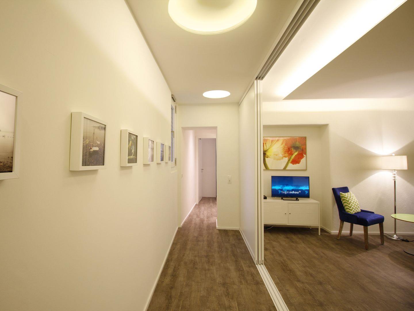 Dank Aufzug und barrierefreier Gestaltung eignet sich die Wohnung auch für Gäste mit eingeschränkter Mobilität (Hinweis: Durchgang zum Bad und hinteren Schlafzimmer 70 cm).