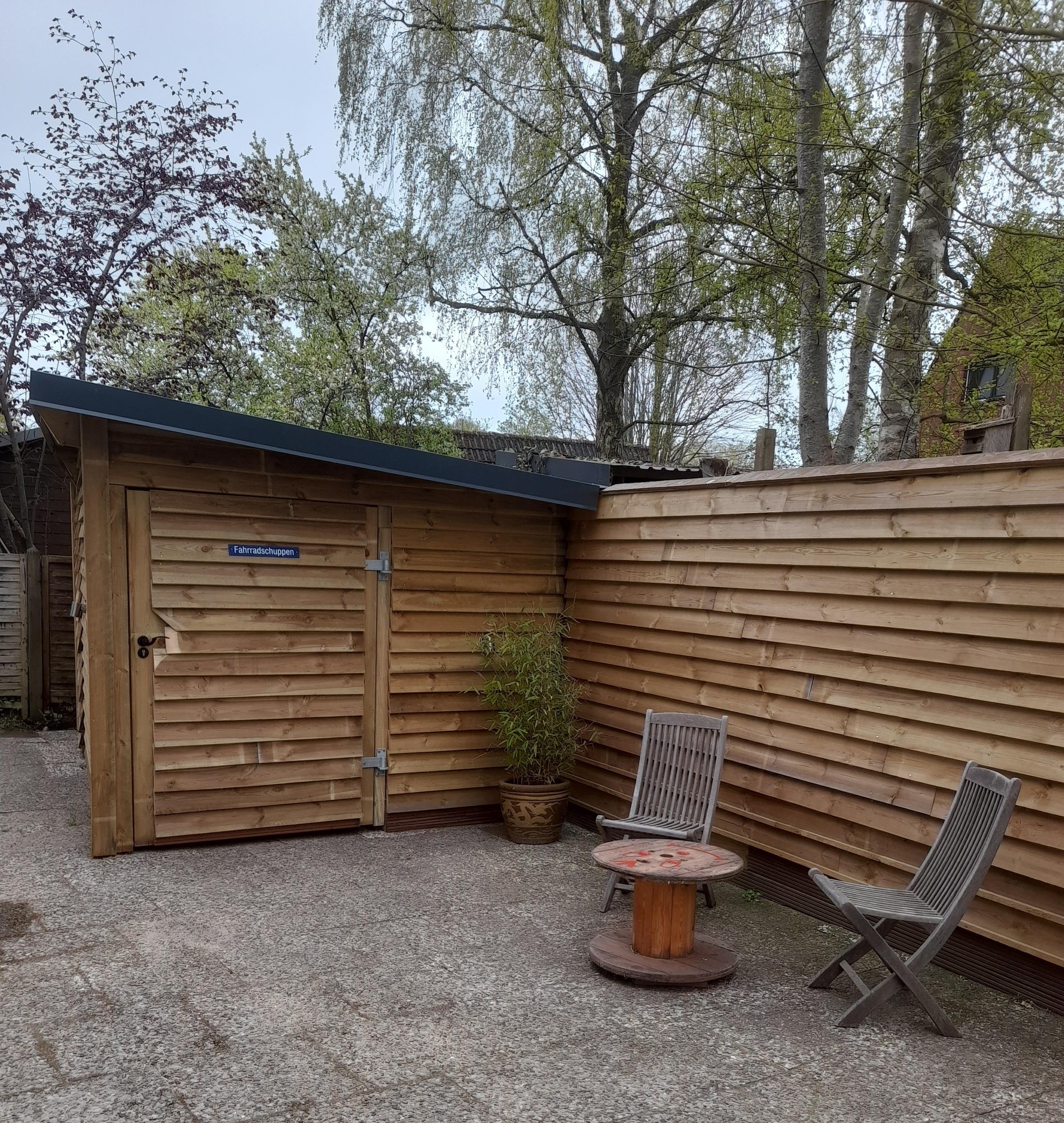 Unsere beiden Ferienwohnungen sind modern und gemütlich eingerichtet und beide Wohnungen verfügen über eine schöne große überdachte Terrasse mit einem Strandkorb und Sitzmöbeln sowie einem Gasgrill. Die Wohnungen befinden sich im Erdgeschoss /Hochparterre (5 Stufen). Pro Wohnung steht ein PKW-Stellplatz vor dem Haus zur Verfügung. Hinten im Garten befindet sich ein Fahrradhaus, in dem man bequem die Räder unterstellen und E-Bikes aufladen kann. Im Keller des Hauses befinden sich eine Waschmaschine und ein Trockner (Nutzung gegen Entgeld).