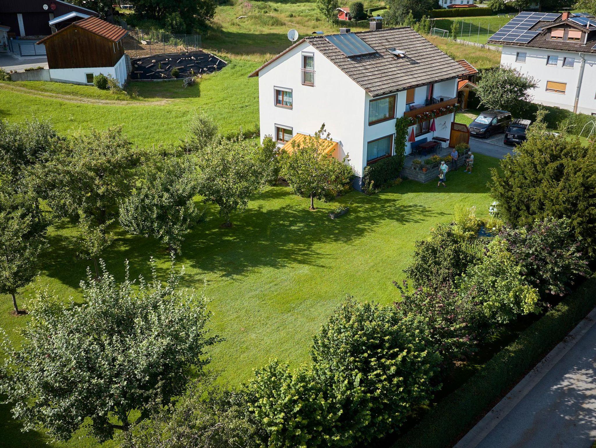 Unser Haus steht abseits der Hauptstraße in ruhiger Lage. Ein großer Garten mit Teich, Parkplatz, Liegewiese, Spielplatz und Grillmöglichkeit steht zu Ihrer Verfügung. Wanderwege und Wintersportmöglichkeiten sind in nächster Nähe. Das Nationalparkzentrum Falkenstein mit Haus zur Wildnis liegt in unmittelbarer Nähe. Eine Bäckerei und ein Metzger befinden sich direkt im Ort. Die nächste Einkaufsmöglichkeit ist ca. 3 km entfernt in Zwiesel.