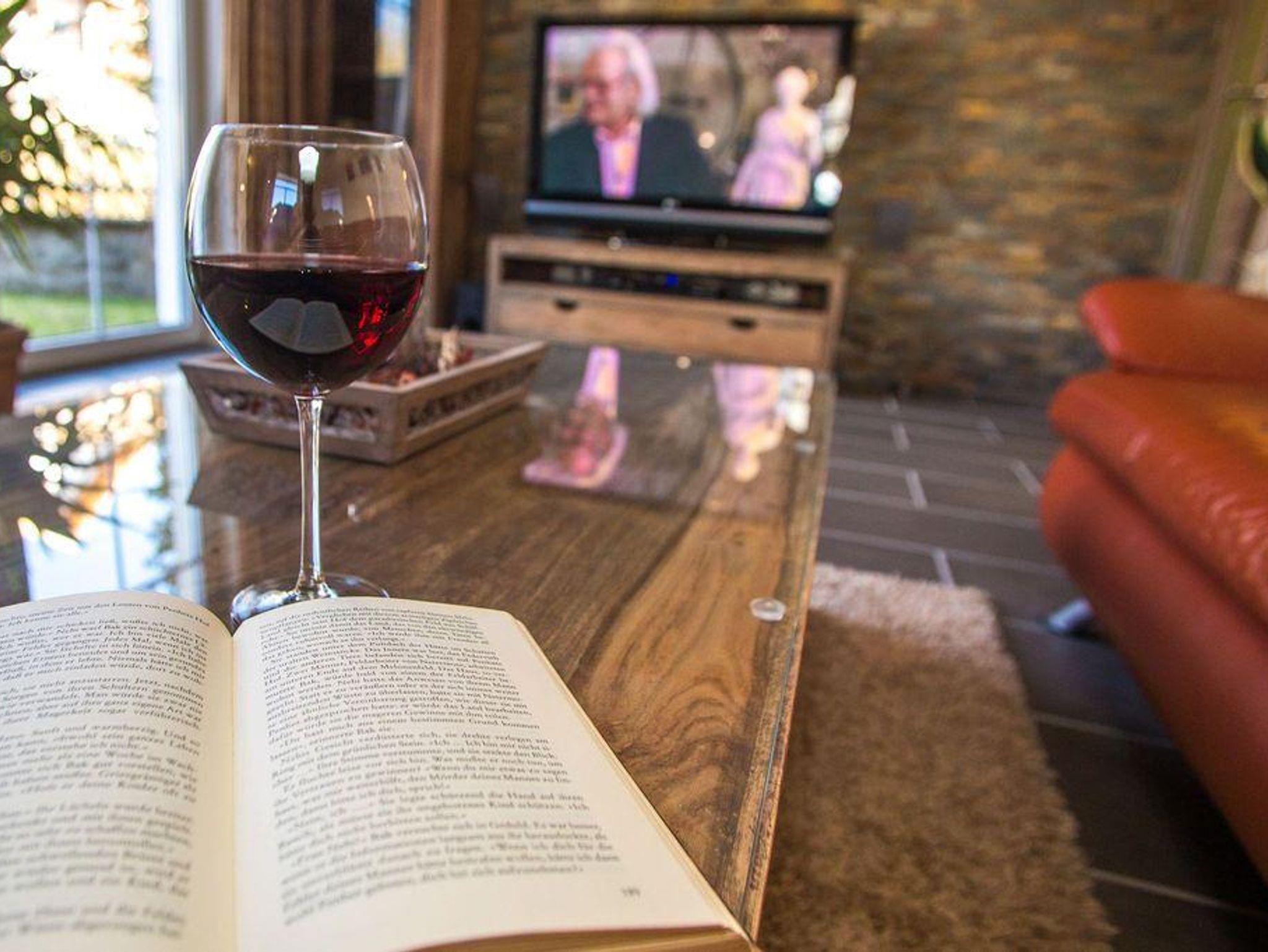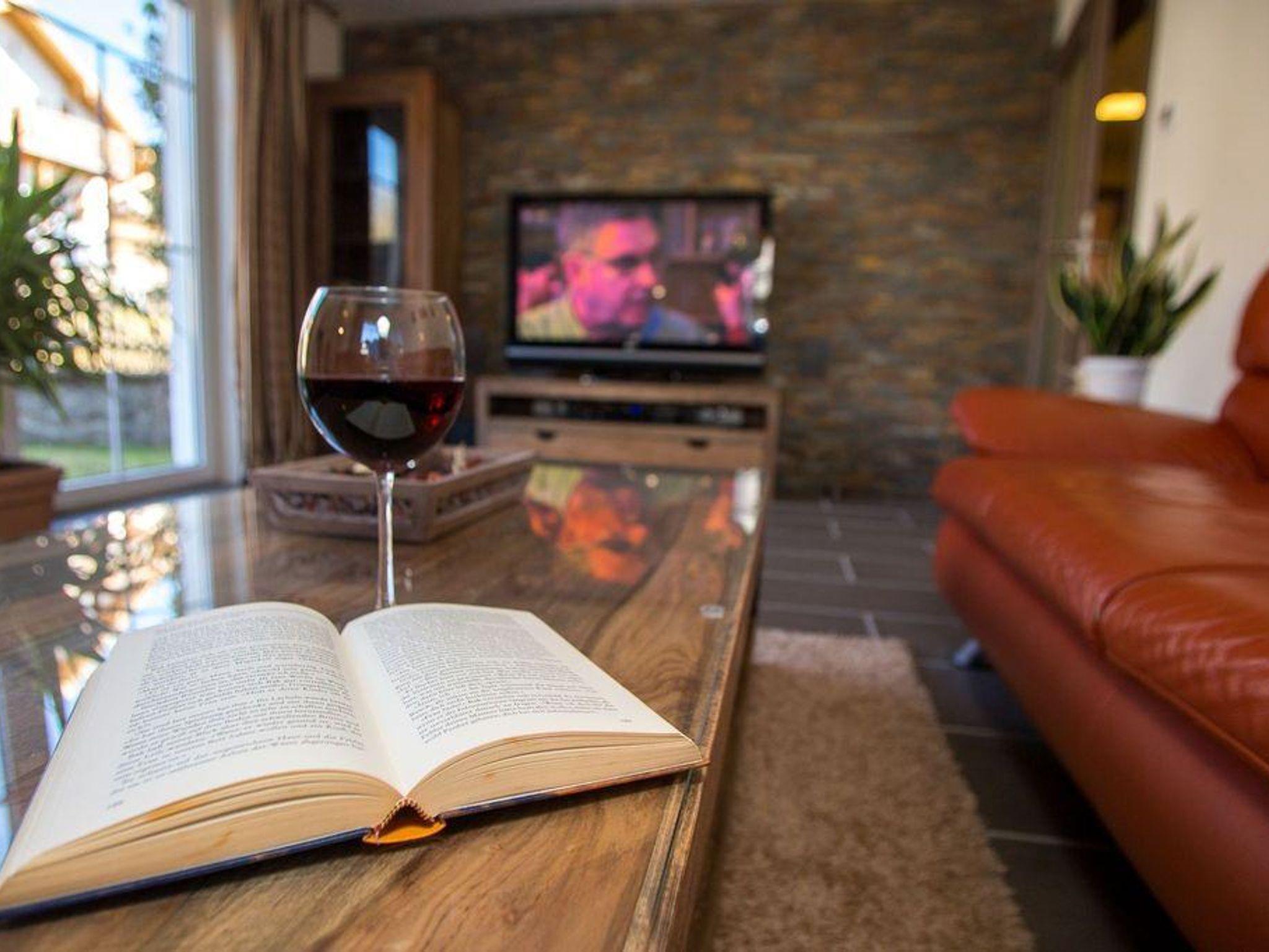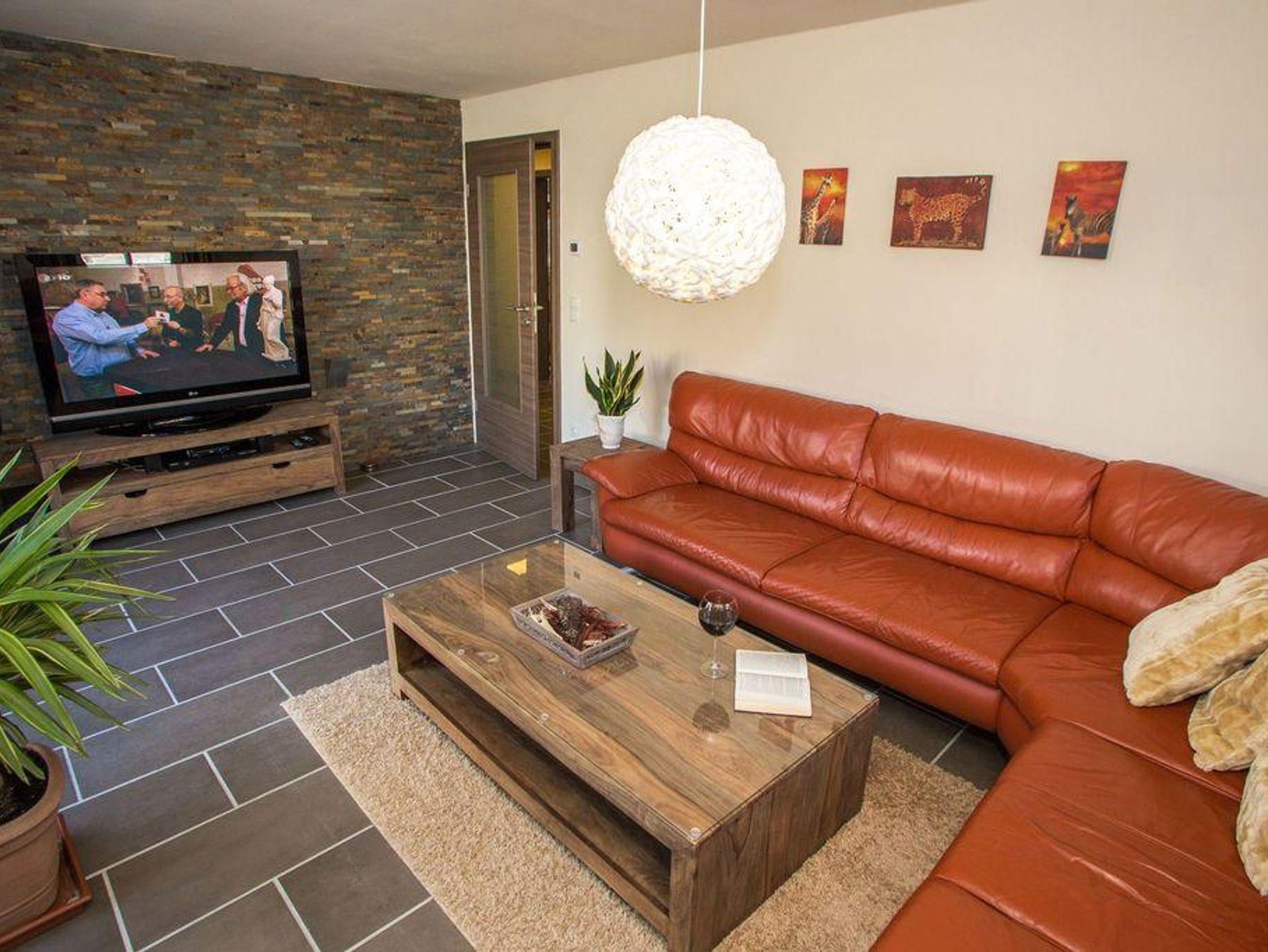 1 Wohnzimmer mit Echt-Ledercouch, 50-Zoll-LED, Hintergrundbeleuchtungen,