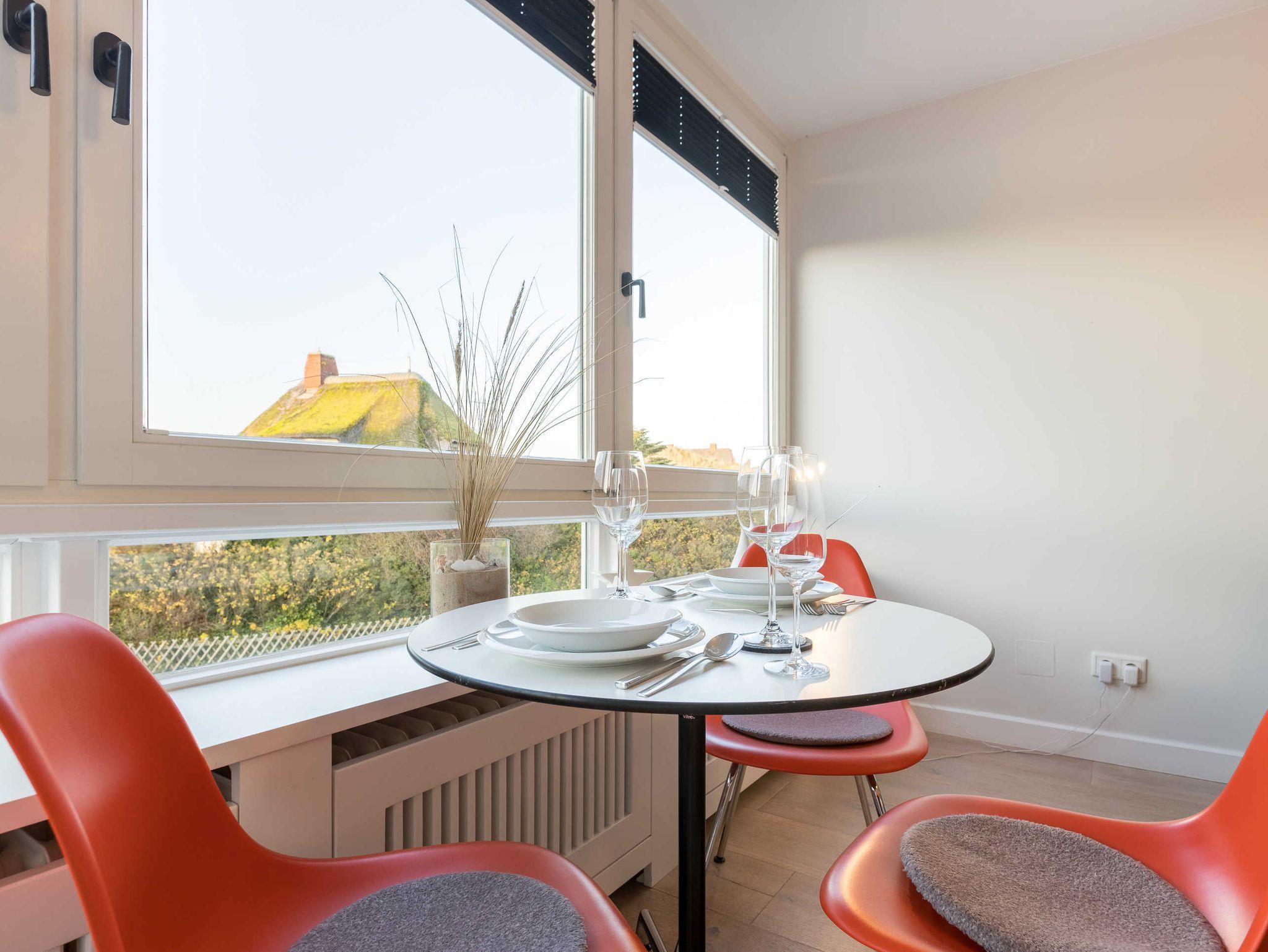 Geniessen Sie den herrlichen Panoramablick in die Lister Dünen mit den für Sylt typischen Reetdachhäusern oder entspannen Sie am Strand oder auf Ihrem Balkon.