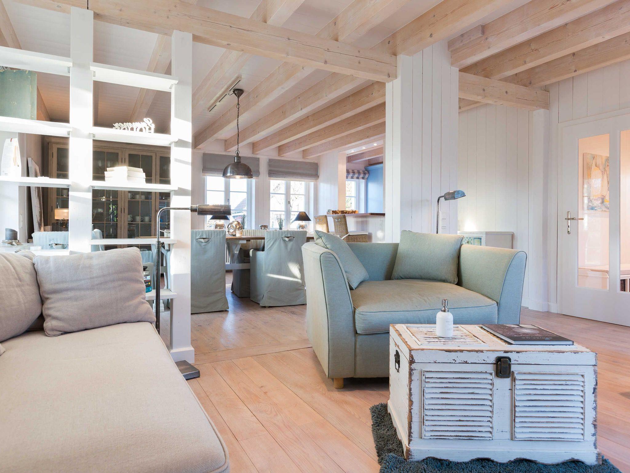 Das Haus „Lister Leuchtfeuer“ beherbergt in einem gepflegten, weißen Klinkerbau mit Hartbedachung ein geräumiges, 190 Quadratmeter großes Apartment im Beachhouse-Stil für Ihren Sylt-Urlaub mit bis zu sechs Personen. Die gesamte Einrichtung ist hell und freundlich mit viel Holz, weißen Einbauschränken und hellen Echtholzdielen.