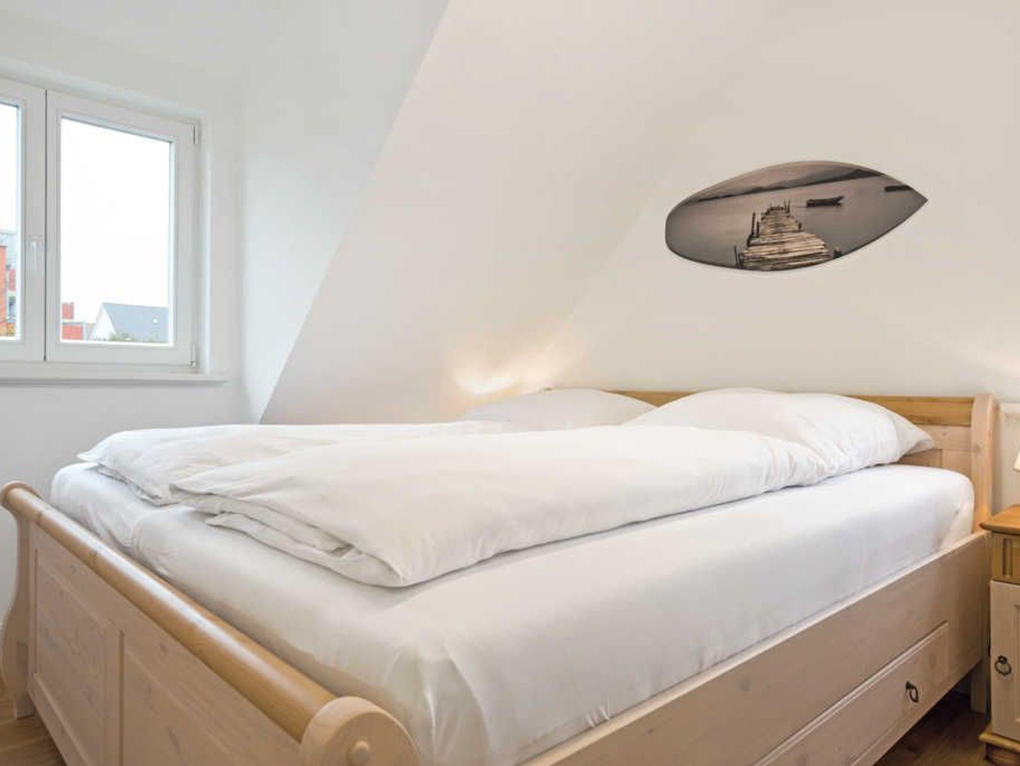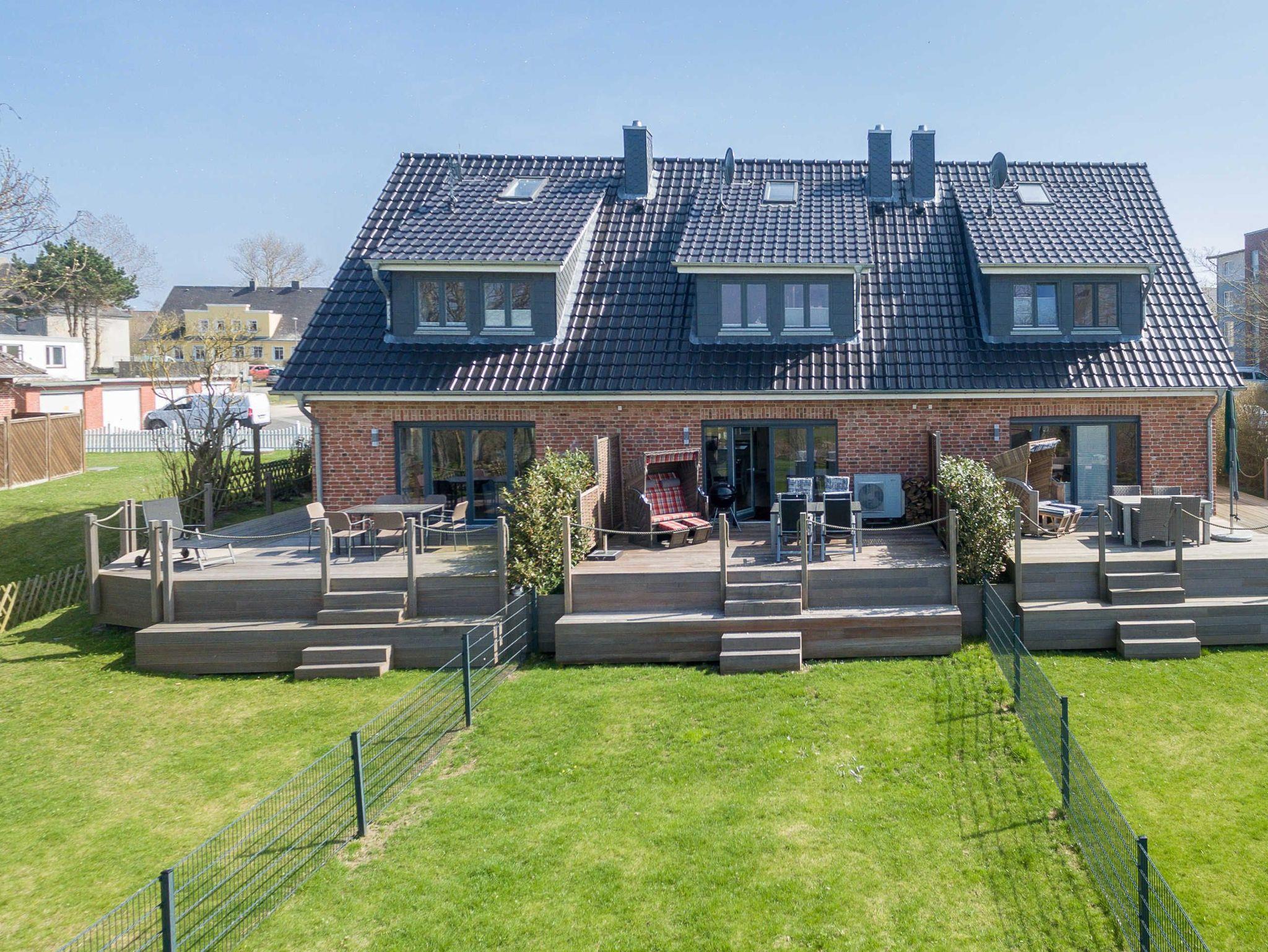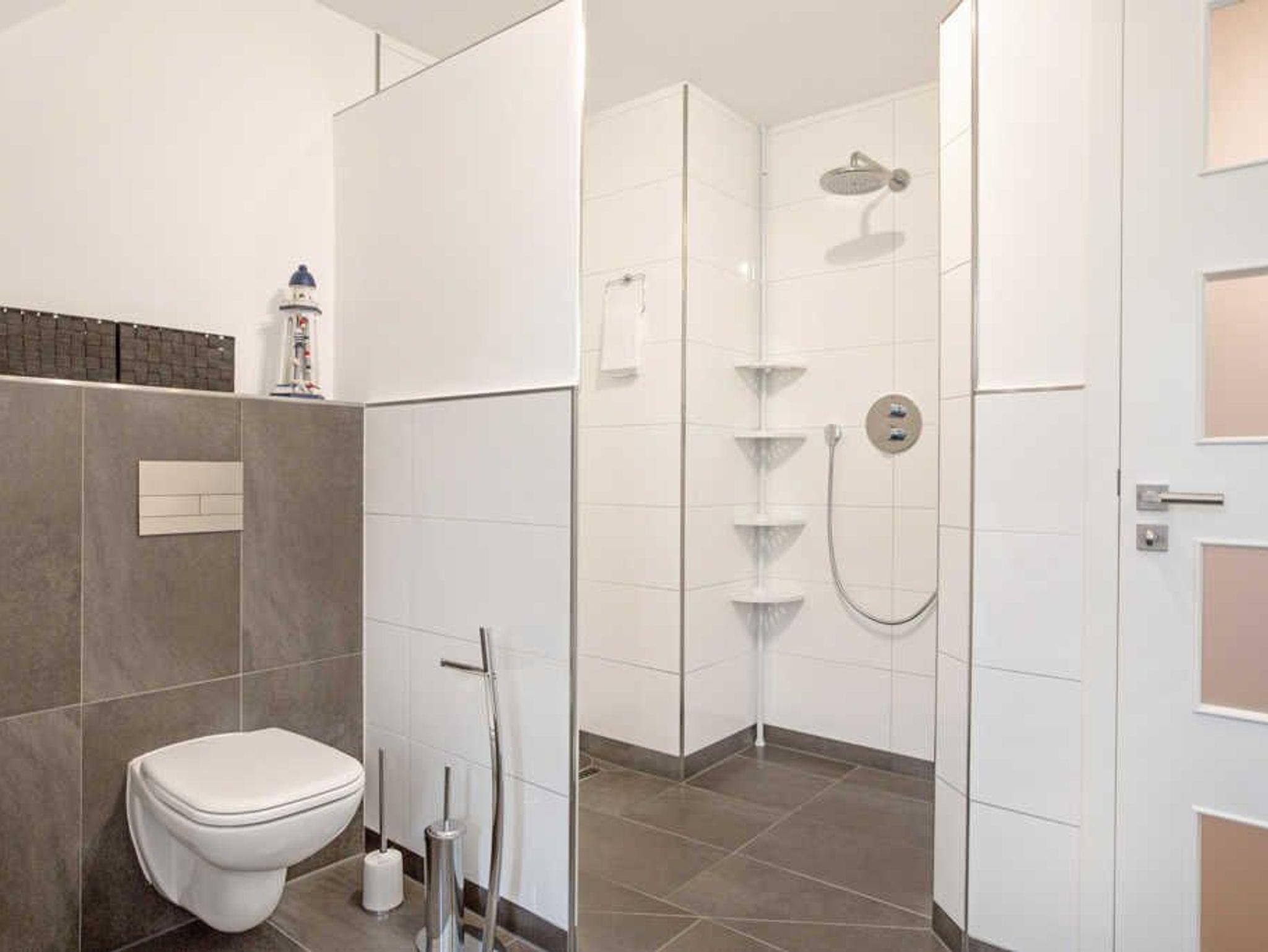 Treten Sie ein in das geräumige Hausteil, in dem sich rund 120 Quadratmeter über drei Ebenen verteilen. Bis zu sieben Personen können sich hier wohlfühlen. Im Erdgeschoss erstreckt sich ein großes Wohnzimmer mit einem behaglichen Sitzbereich und Kamin, SAT-TV und W-LAN. Neben dem Esstisch finden Sie eine Komplettküche, die unter anderem Kühlschrank und Geschirrspüler beinhaltet. Außer einer klassischen Kaffeemaschine steht Ihnen hier auch eine Senseo-Kaffeemaschine zur Verfügung. Ein aparter Holzfußboden sorgt nicht nur für ansprechendes Ambiente, sondern dank einer Fußbodenheizung ? wie auch in den übrigen Räumen ? für warme Füße. Und dank der automatischen Rolläden können Sie den Einfall des Tageslichts ganz individuell begrenzen.